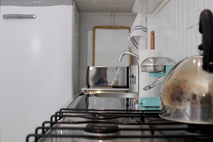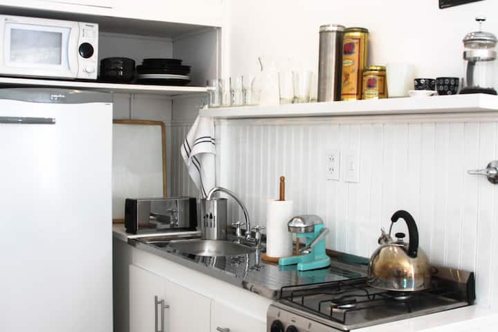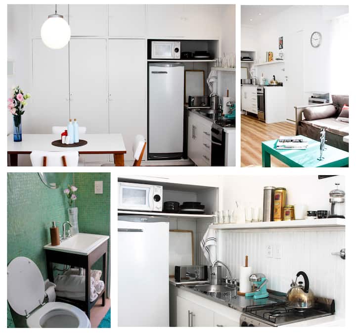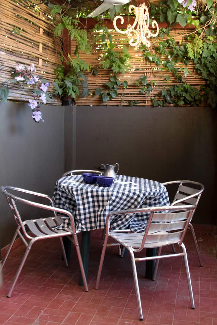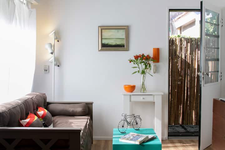 Apartamento mobiliado e equipado em La Lucila. Possui ar-condicionado e aquecimento, cozinha completa com micro-ondas e utensílios (panelas, pratos e copos). Inclui Wi-Fi e DirecTV, além de roupa de cama, toalhas e área externa com ventilador, mesa e cadeiras. Fica a 300 metros do rio, da estação La Lucila e da estação Libertador do Tren de la Costa, com comércio, academia, cinemas e supermercado.
