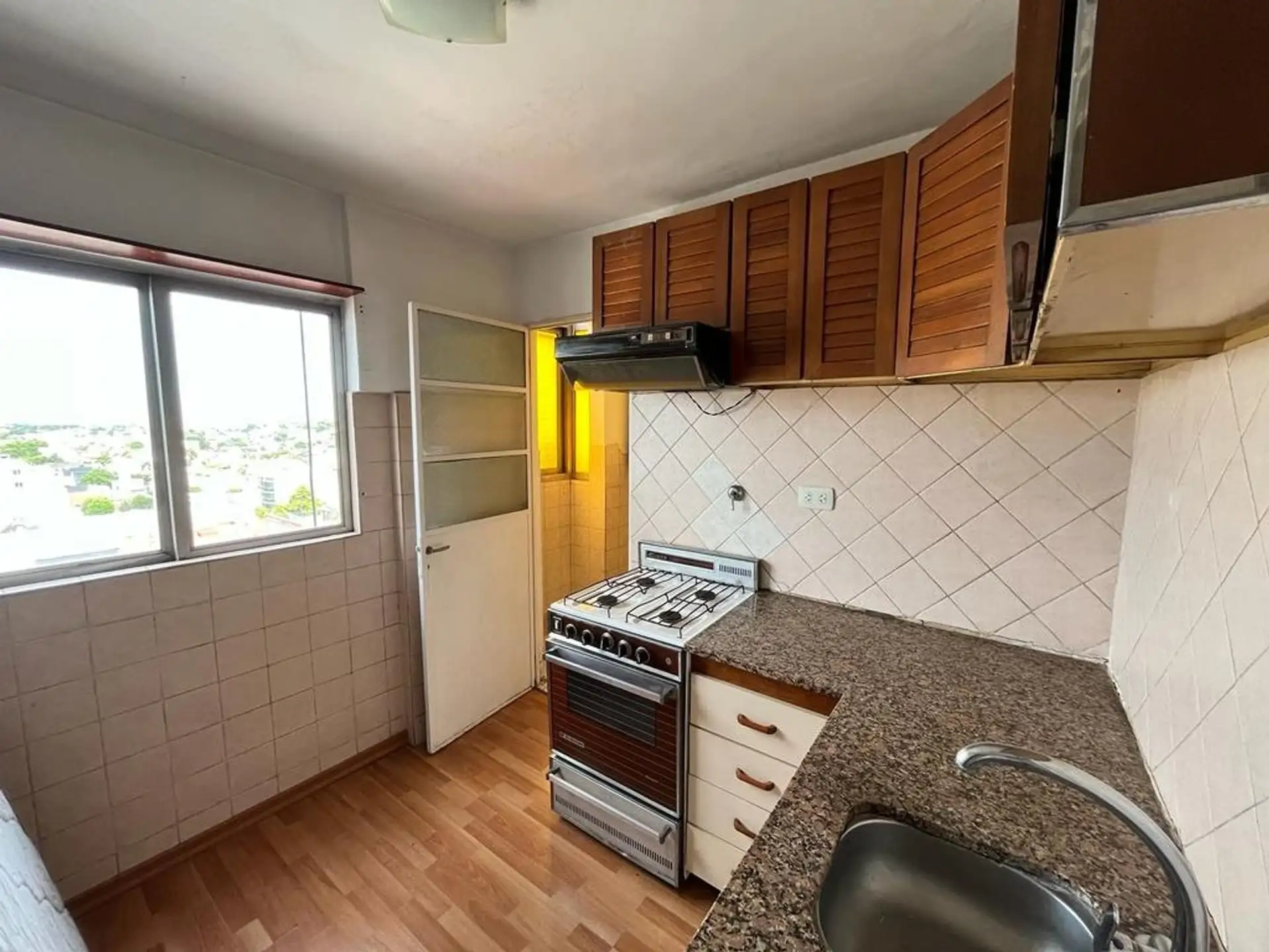 Apartamento de dois ambientes com 42 m² cobertos e 43 m² totais, no centro de Ramos Mejía. Inclui varanda francesa corrida, living-comedor com ventilador e persiana, cozinha separada com forno, fogão a gás, exaustor e área de lavanderia separada com varal em altura. Tem 1 quarto com armário embutido, ar-condicionado e persiana, além de 1 banheiro completo com banheira. Fica a 2 quadras da Av. de Mayo e a 5 quadras da estação Ramos Mejía do trem Sarmiento.