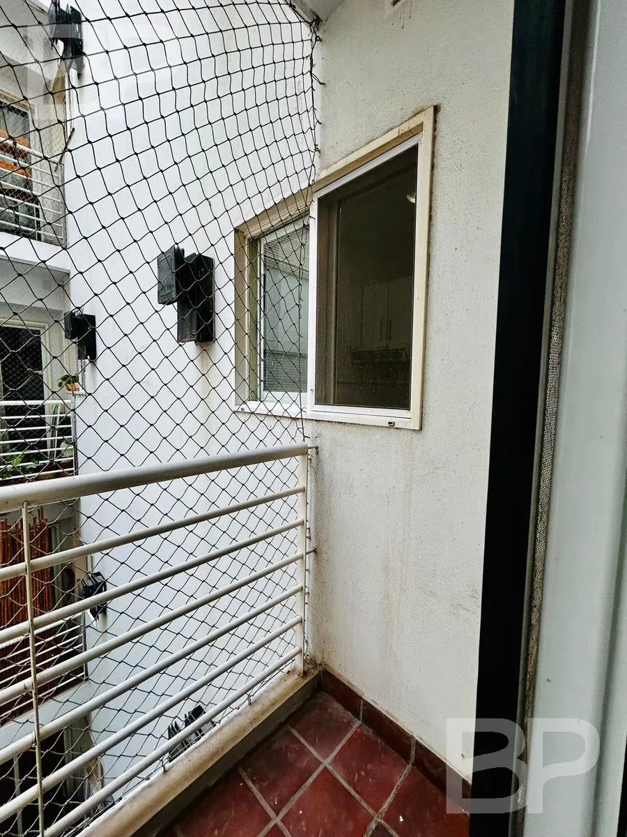 Apartamento de 2 ambientes em La Paternal. Tem cozinha separada, água quente individual, espaço e conexão para máquina de lavar ou lava-louças. O dormitório tem ar-condicionado e o living tem estufa tipo tiro balanceado. Há varanda com rede e dois armários planejados, incluindo um suplementar no corredor. O prédio tem elevador e pátio térreo de uso comum. O condomínio inclui AYSA; referência de condomínio de março de 2026.