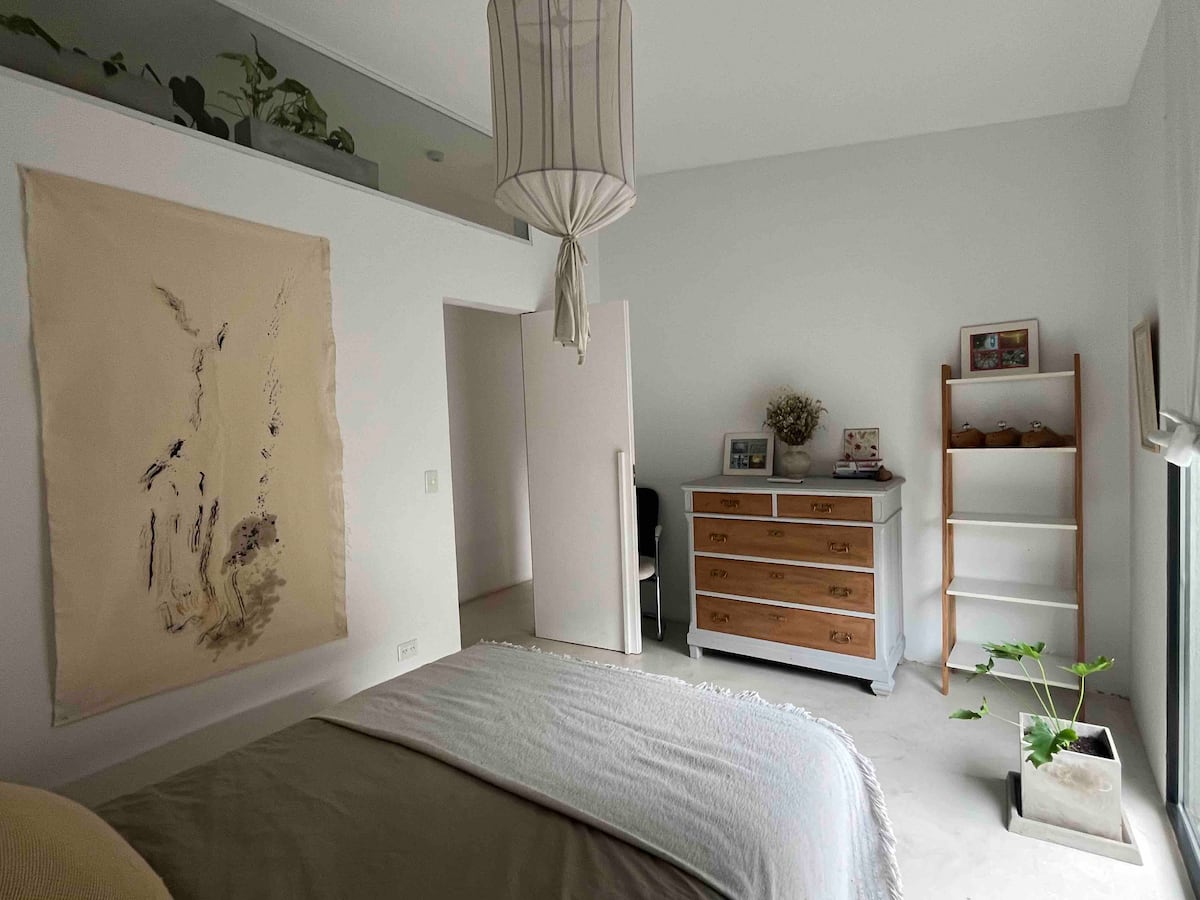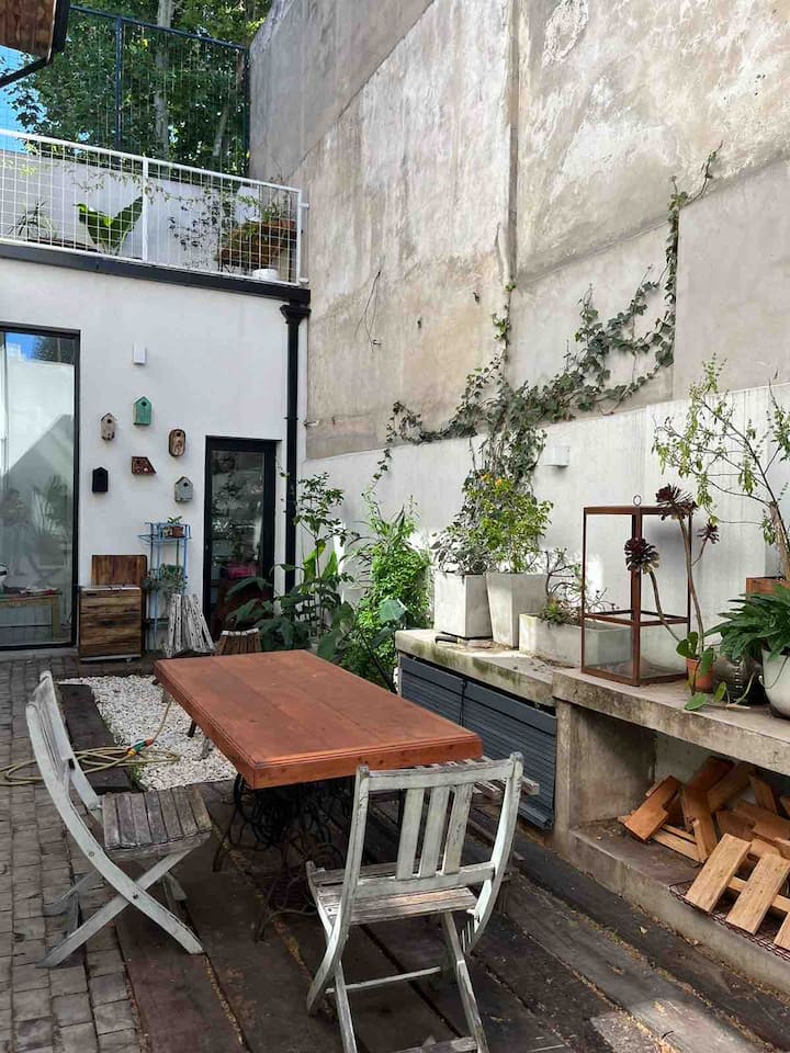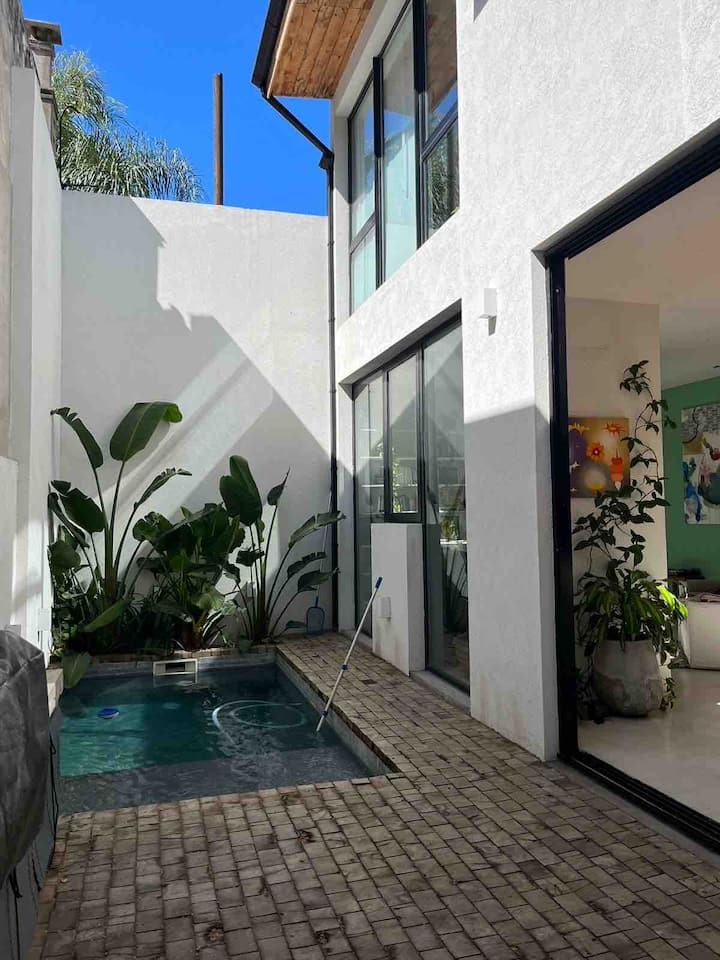 Quarto privativo com cama de casal e banheiro privativo em casa de dois andares com piscina e área de churrasco, em La Paternal. A acomodação fica a 2 quadras do Metrobus na Av. San Martin, a 7 do Metrobus Juan B. Justo e a 25 minutos a pé ou 5 minutos de ônibus da estação Federico Lacroze, da linha B do metrô. O valor inclui produtos de café da manhã (sem o serviço), como café, chá, chimarrão, frutas e pão.