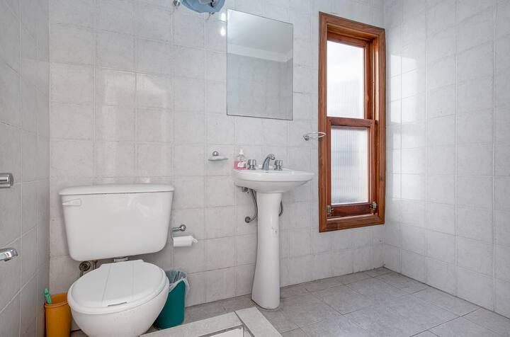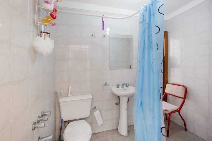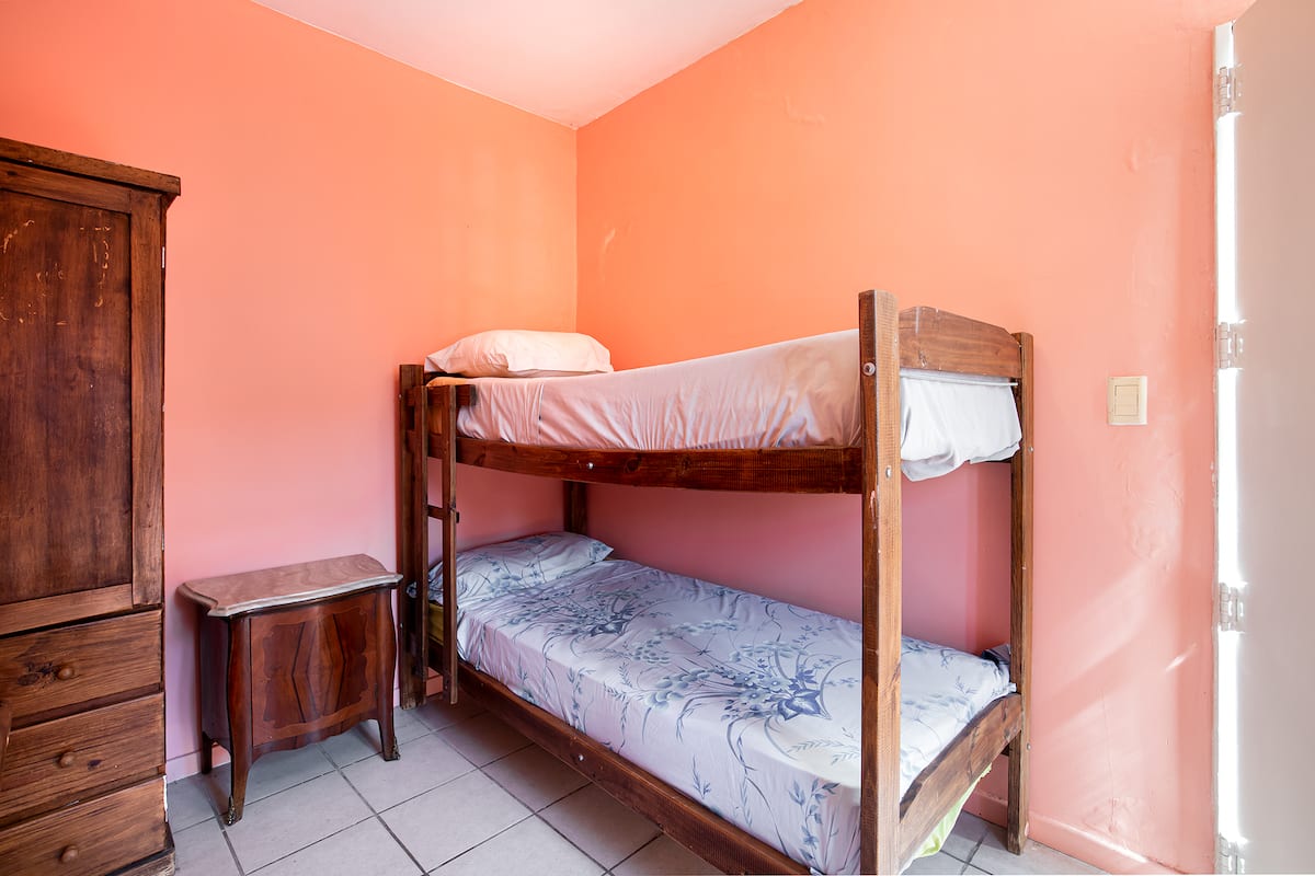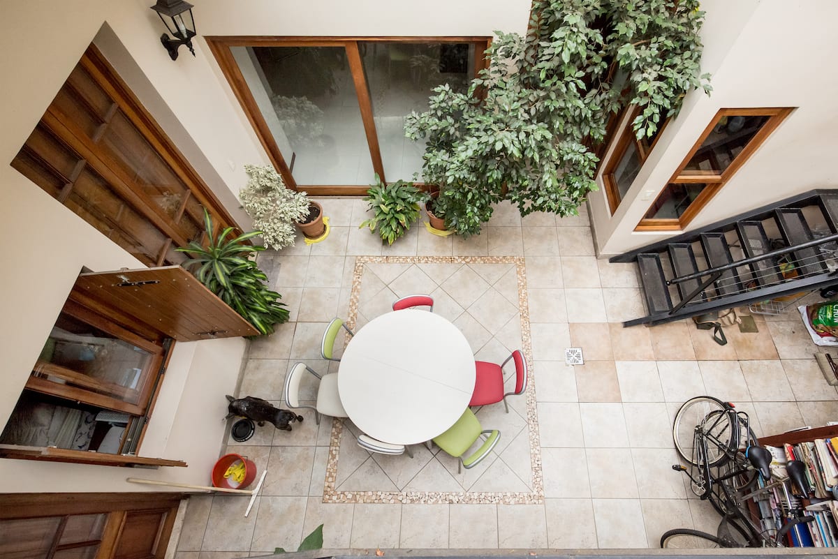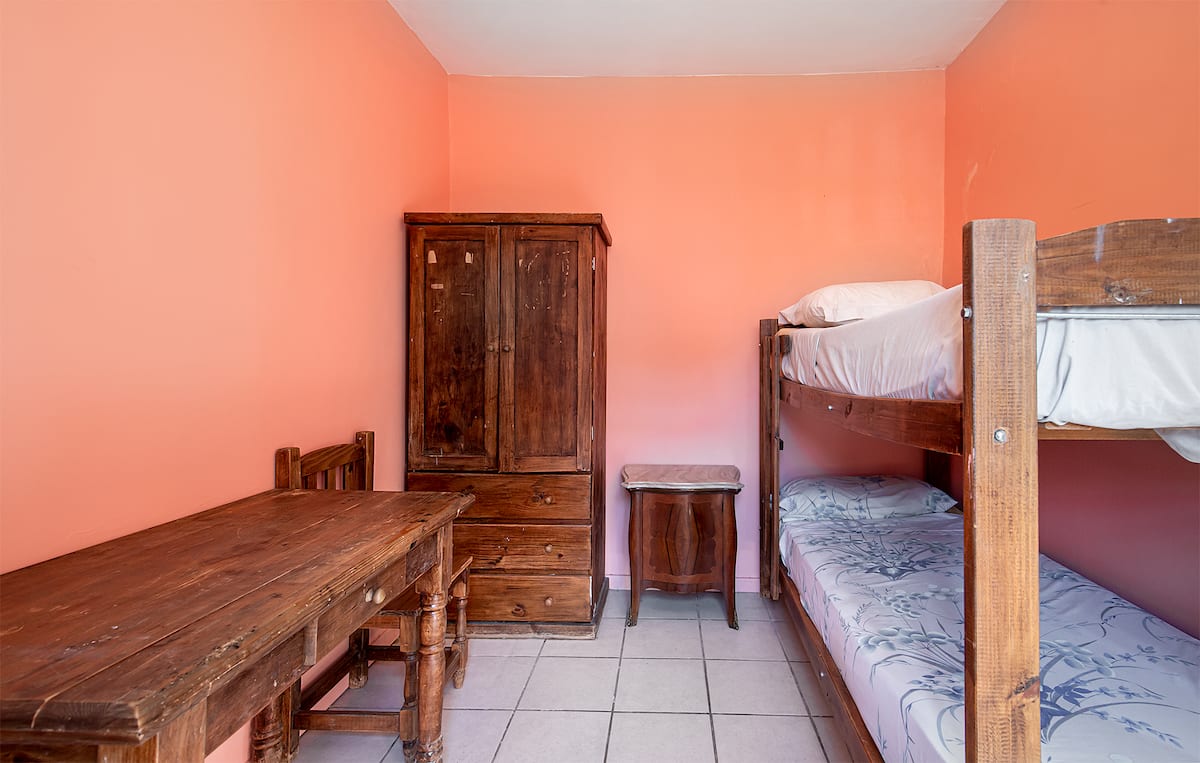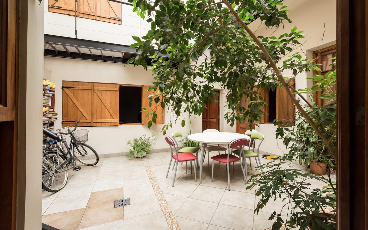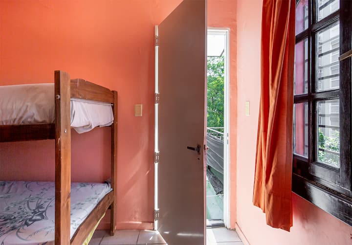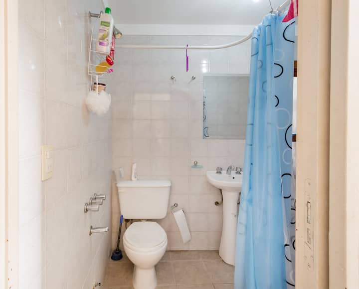 Apartamento em La Paternal. Há 3 quartos disponíveis, cada um com 2 camas. Cozinha equipada e área externa com terraço coberto (pátio).