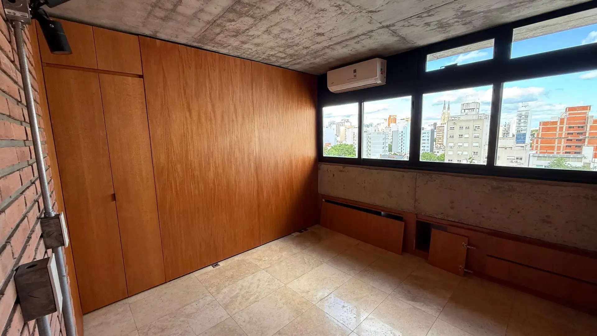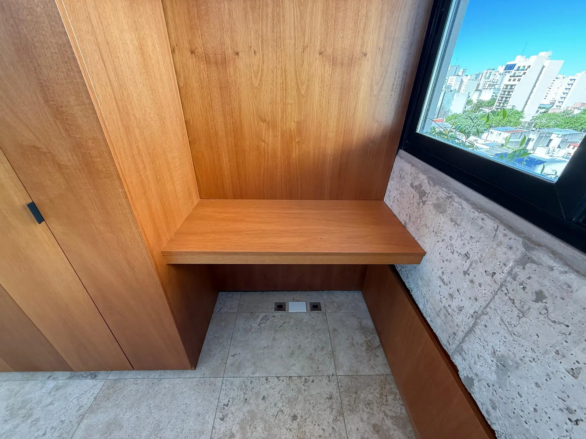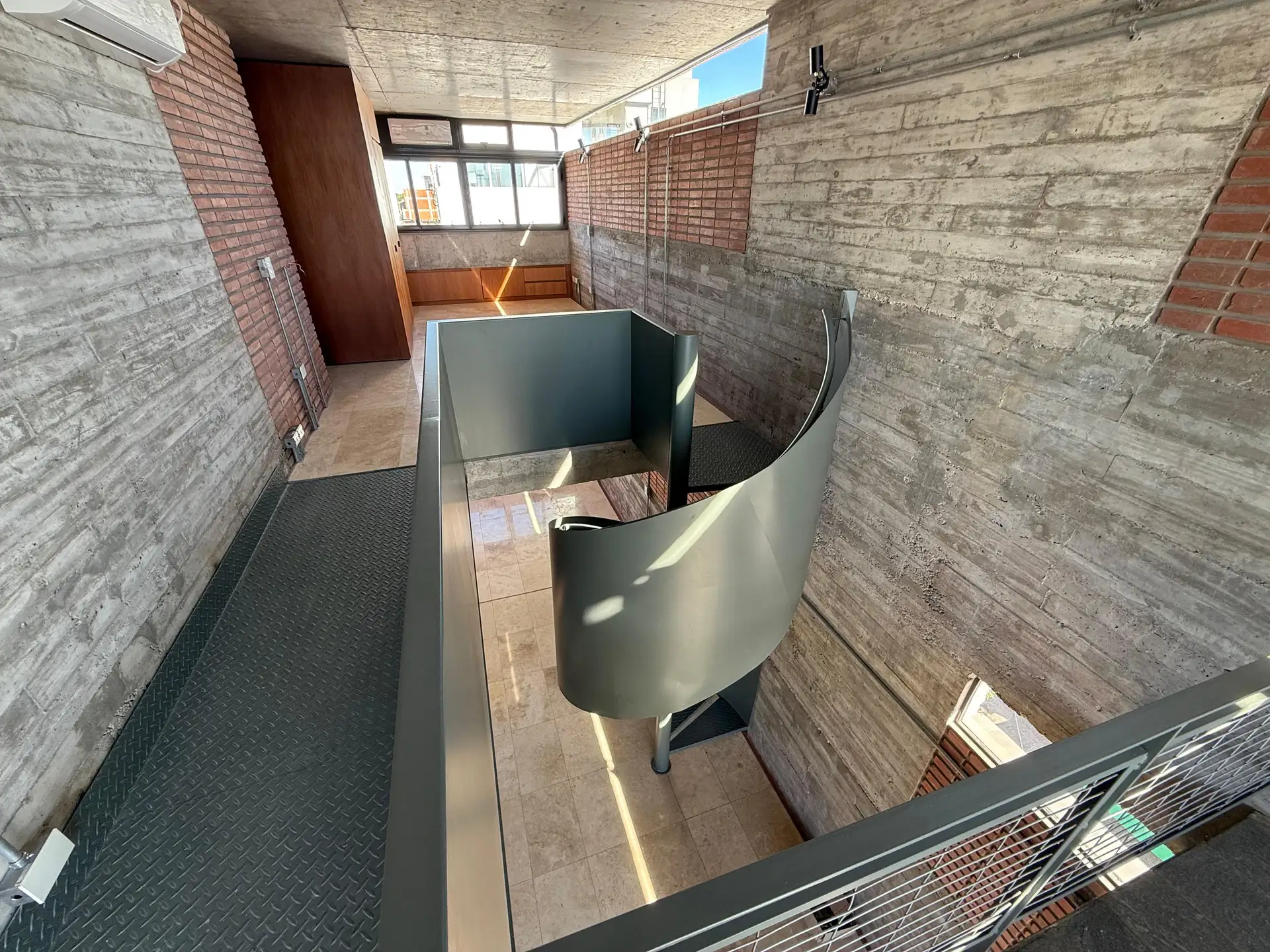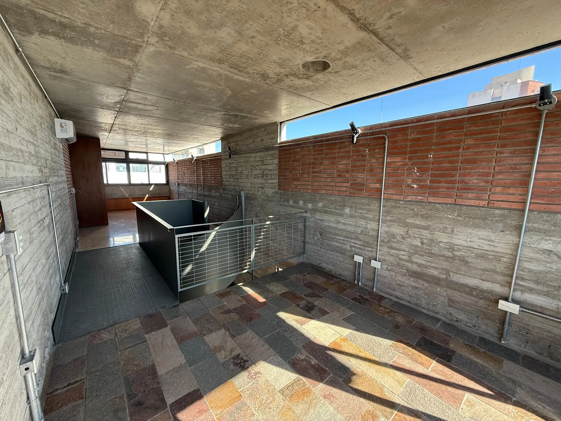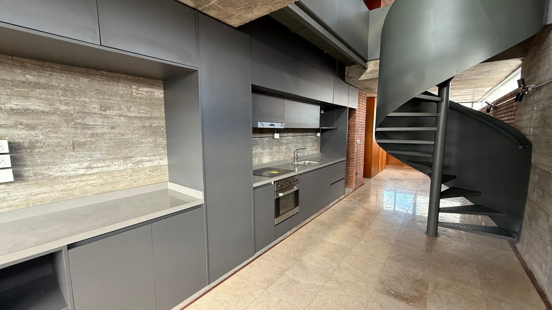 Apartamento tipo dúplex semipiso com 97 m² cobertos e 18 m² descobertos, com frente para a rua e de fundos, nos pisos 8 e 9. No piso 8 há cozinha com forno elétrico embutido, cooktop vitrocerâmico e coifa em aço inox, além de áreas de armazenamento, banheiro com box e bidê com funções eletrônicas e instalação para lavadora. O piso 9 tem acesso por escada caracol, com espaço para escritório/quarto e segundo living, banheiro e saída para varanda; há 4 ar-condicionados na unidade. O prédio tem esté