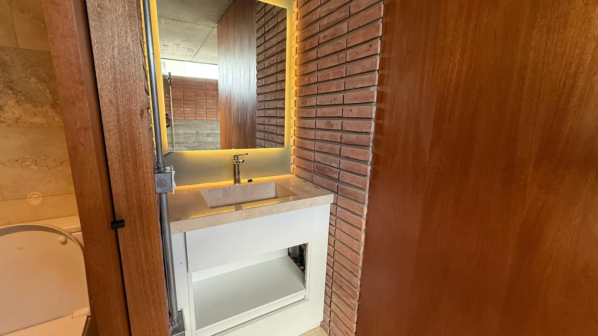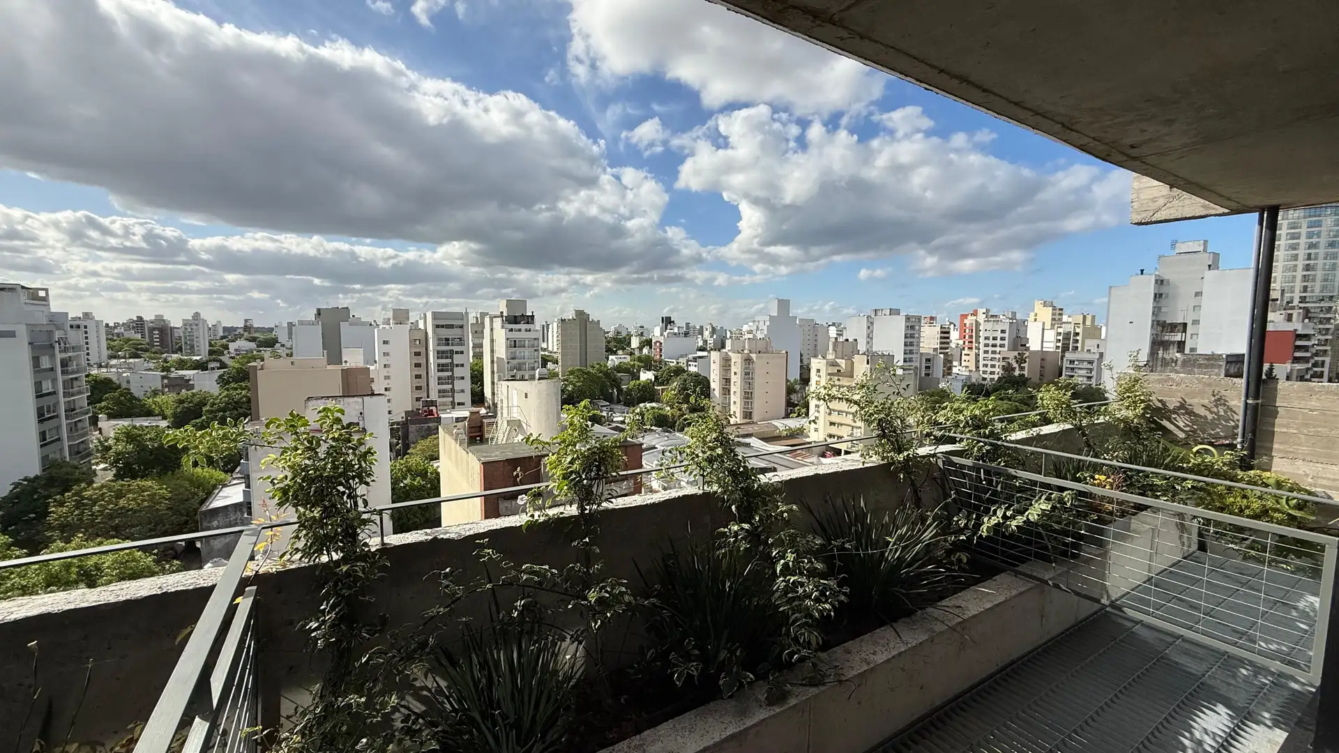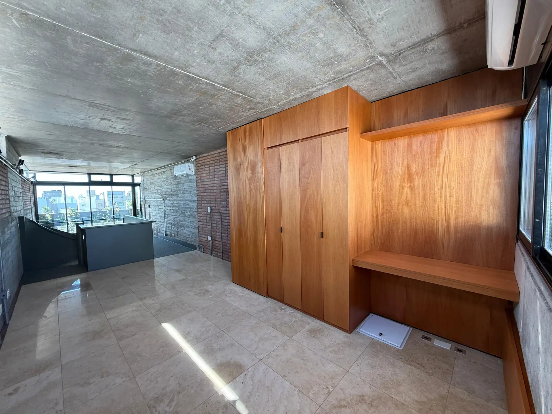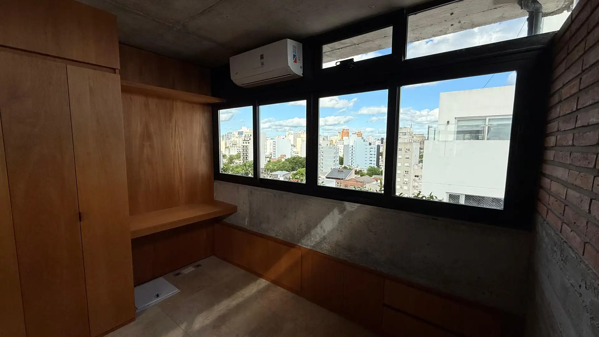 Apartamento tipo dúplex semipiso com 97 m² cobertos e 18 m² descobertos, com frente para a rua e de fundos, nos pisos 8 e 9. No piso 8 há cozinha com forno elétrico embutido, cooktop vitrocerâmico e coifa em aço inox, além de áreas de armazenamento, banheiro com box e bidê com funções eletrônicas e instalação para lavadora. O piso 9 tem acesso por escada caracol, com espaço para escritório/quarto e segundo living, banheiro e saída para varanda; há 4 ar-condicionados na unidade. O prédio tem esté