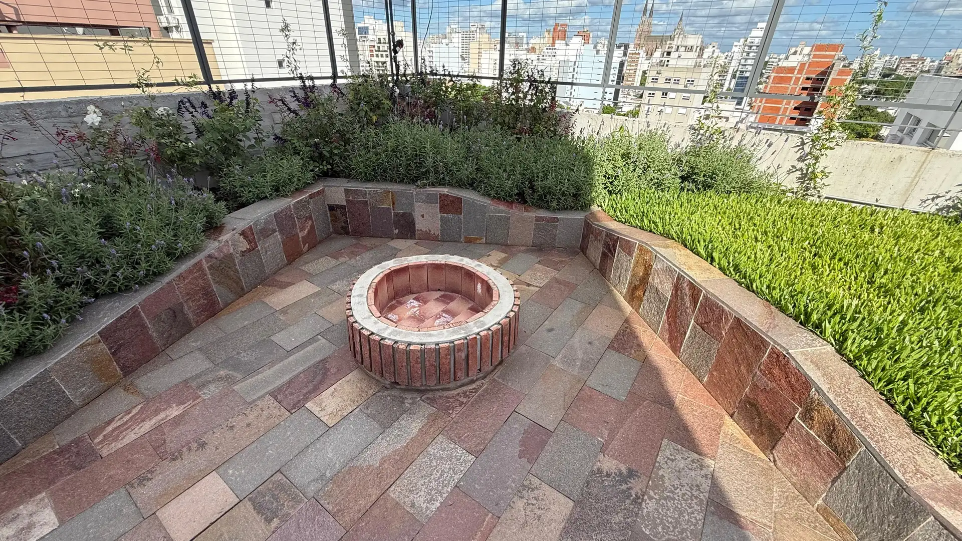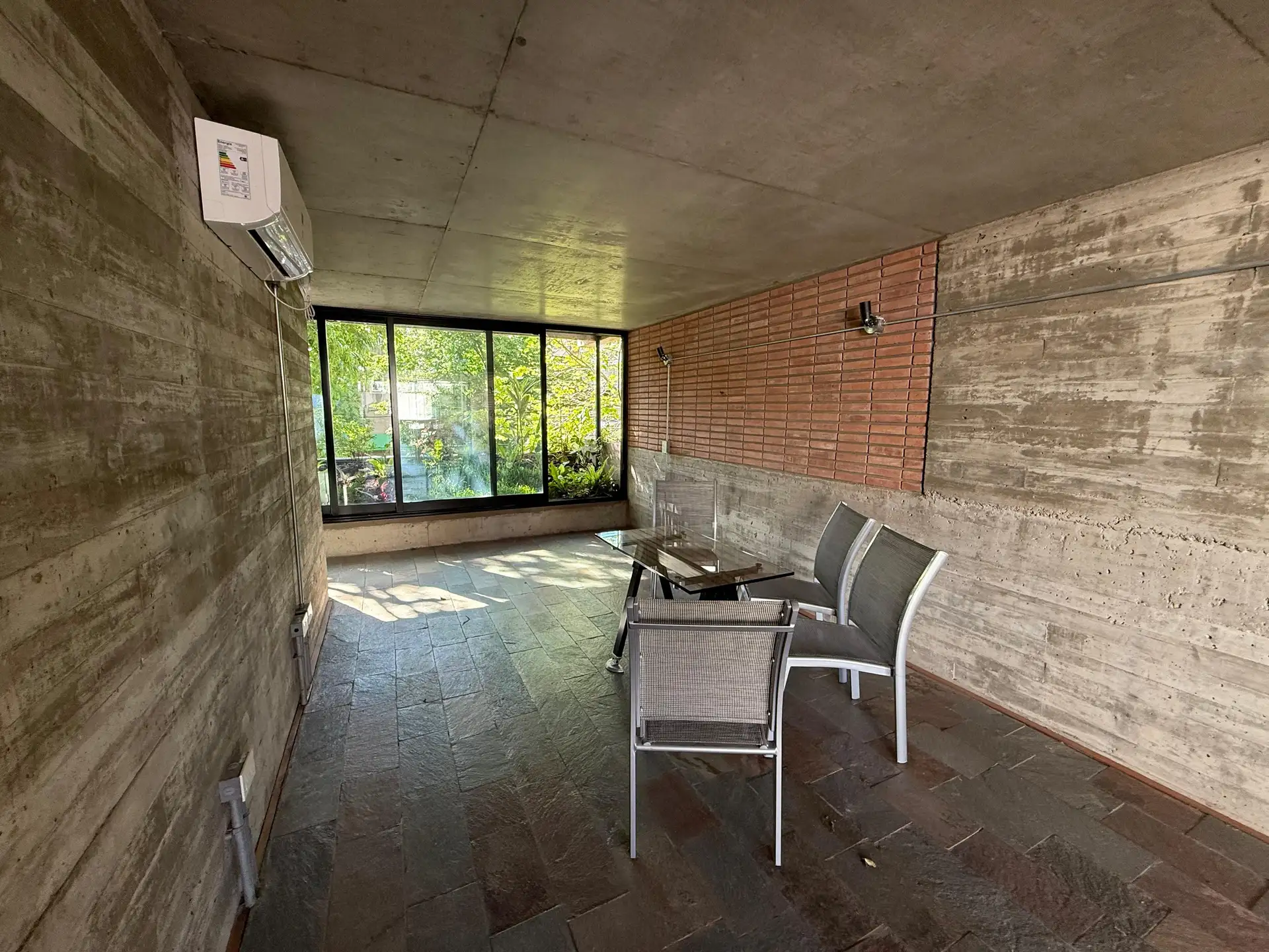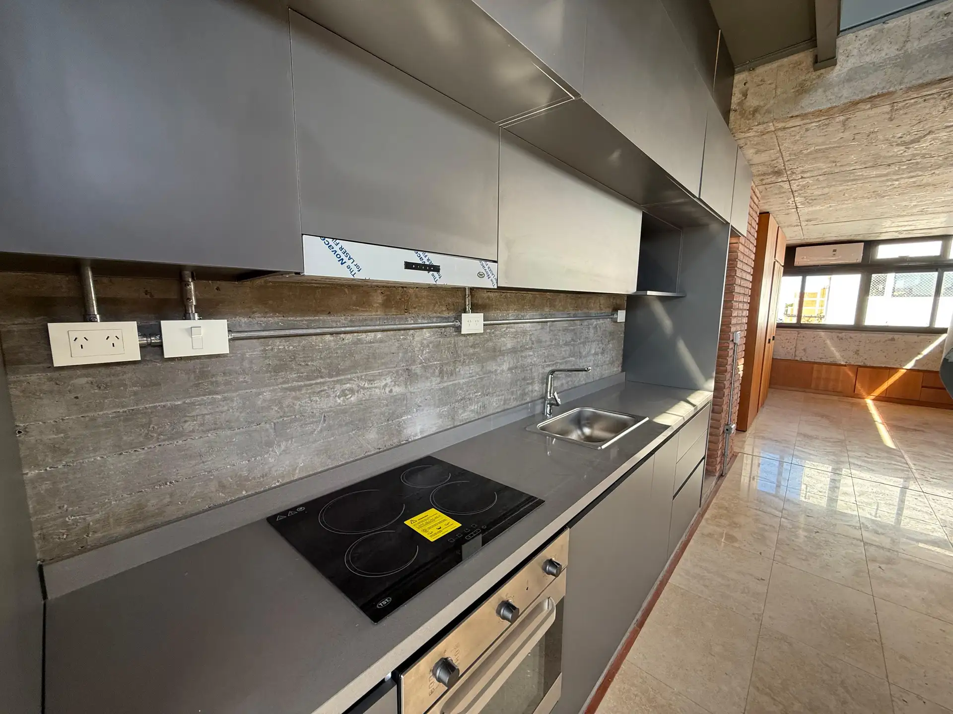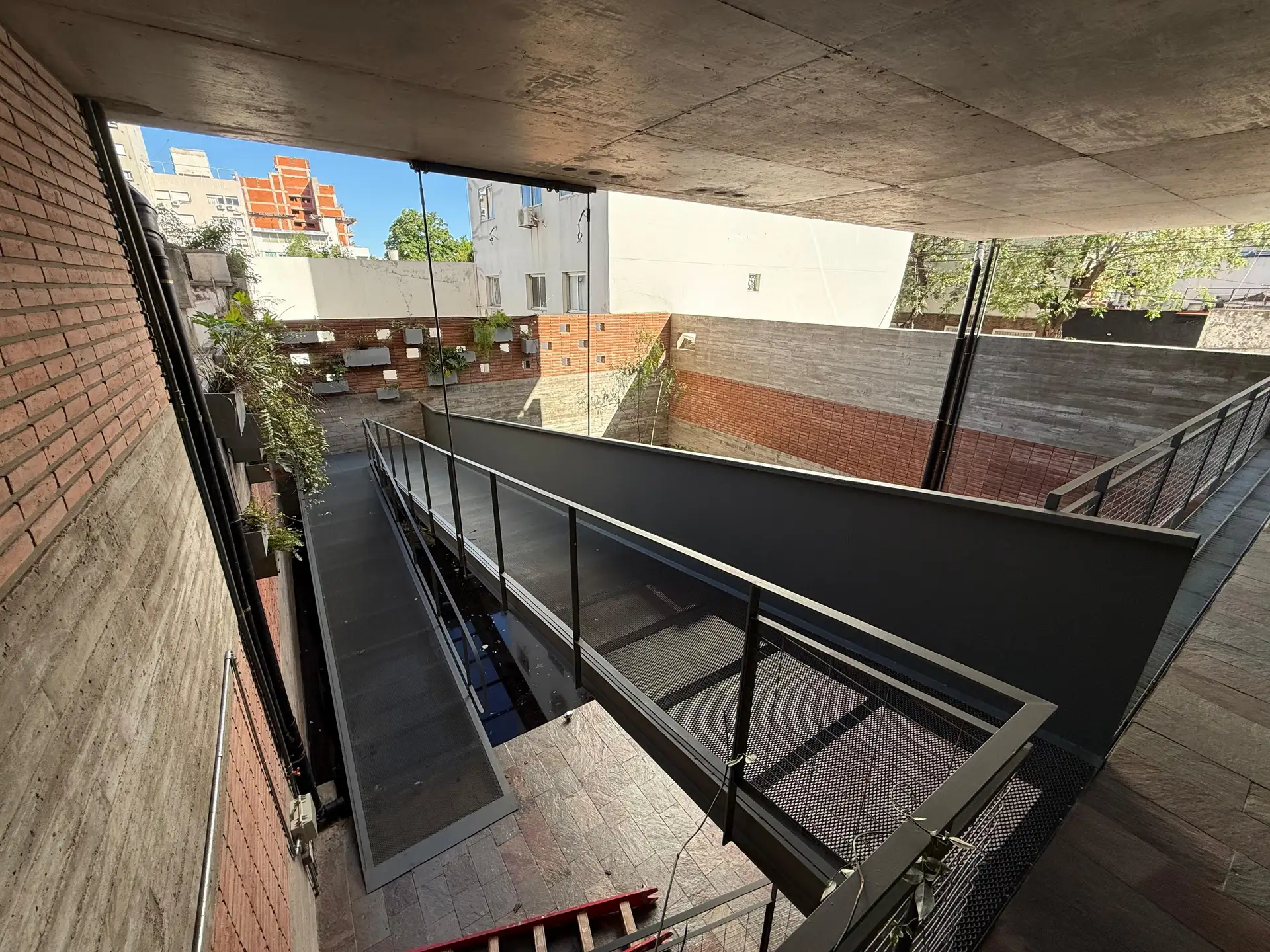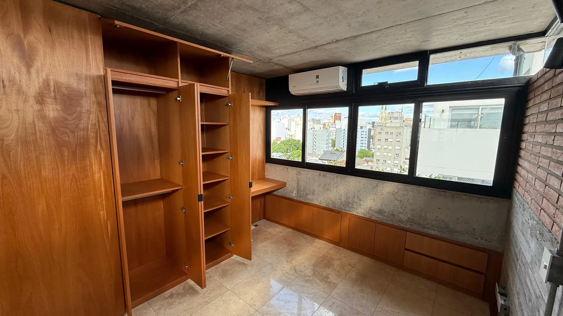 Apartamento tipo dúplex semipiso com 97 m² cobertos e 18 m² descobertos, com frente para a rua e de fundos, nos pisos 8 e 9. No piso 8 há cozinha com forno elétrico embutido, cooktop vitrocerâmico e coifa em aço inox, além de áreas de armazenamento, banheiro com box e bidê com funções eletrônicas e instalação para lavadora. O piso 9 tem acesso por escada caracol, com espaço para escritório/quarto e segundo living, banheiro e saída para varanda; há 4 ar-condicionados na unidade. O prédio tem esté