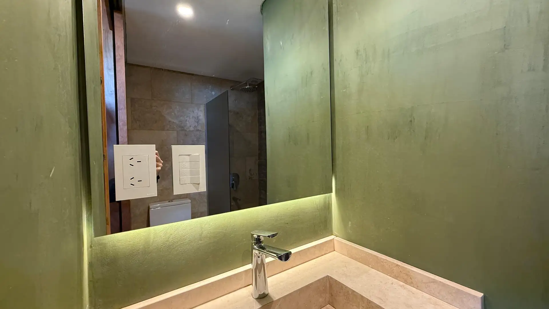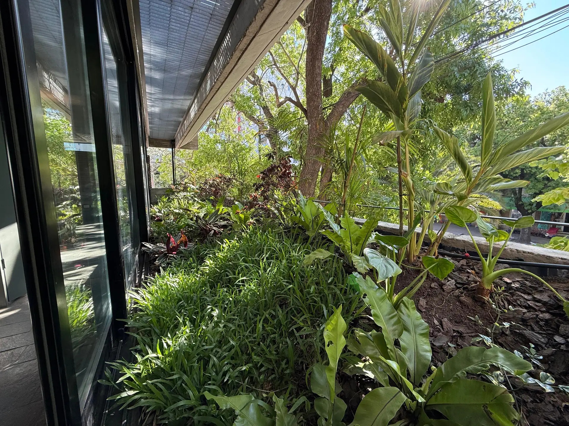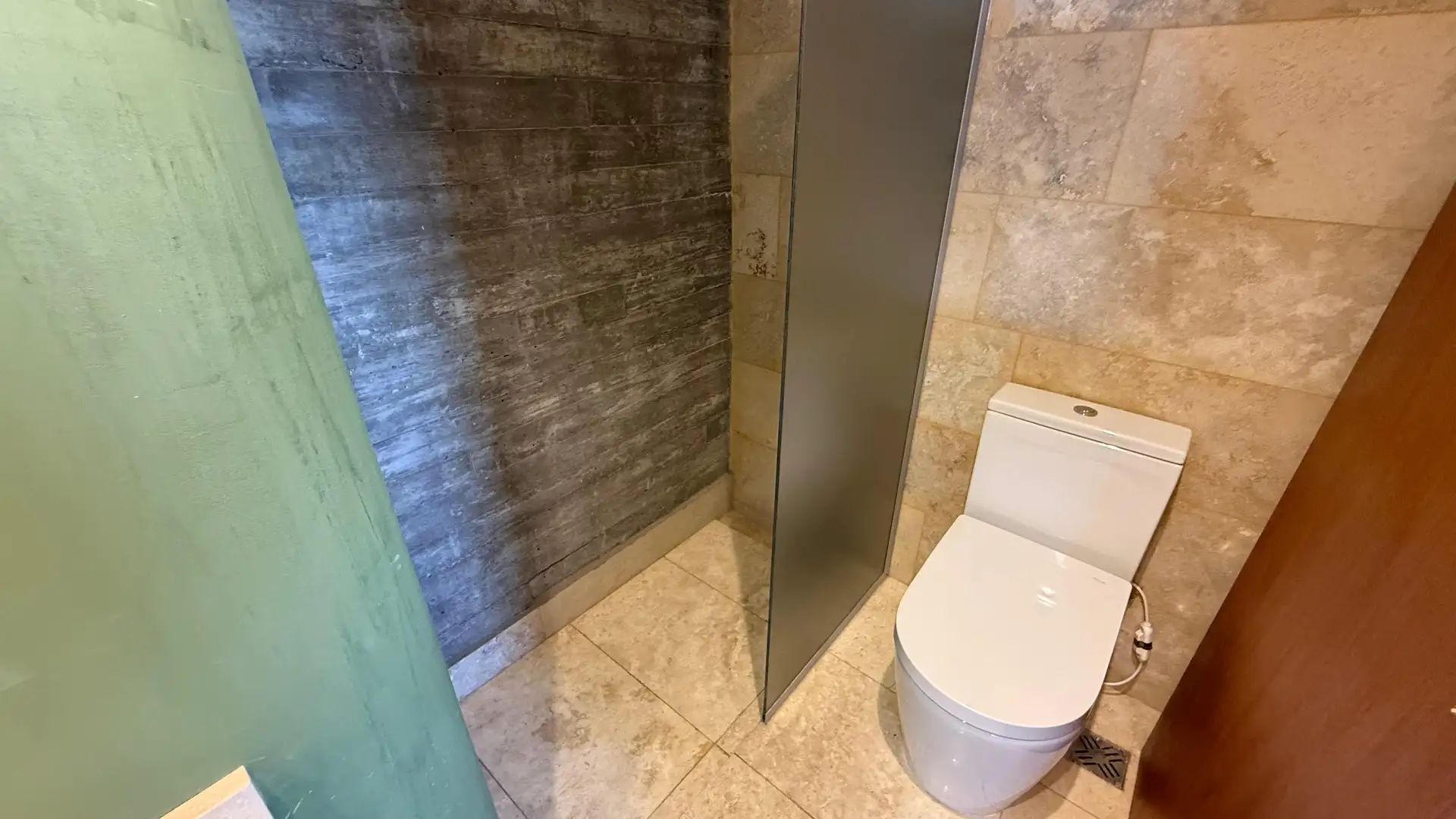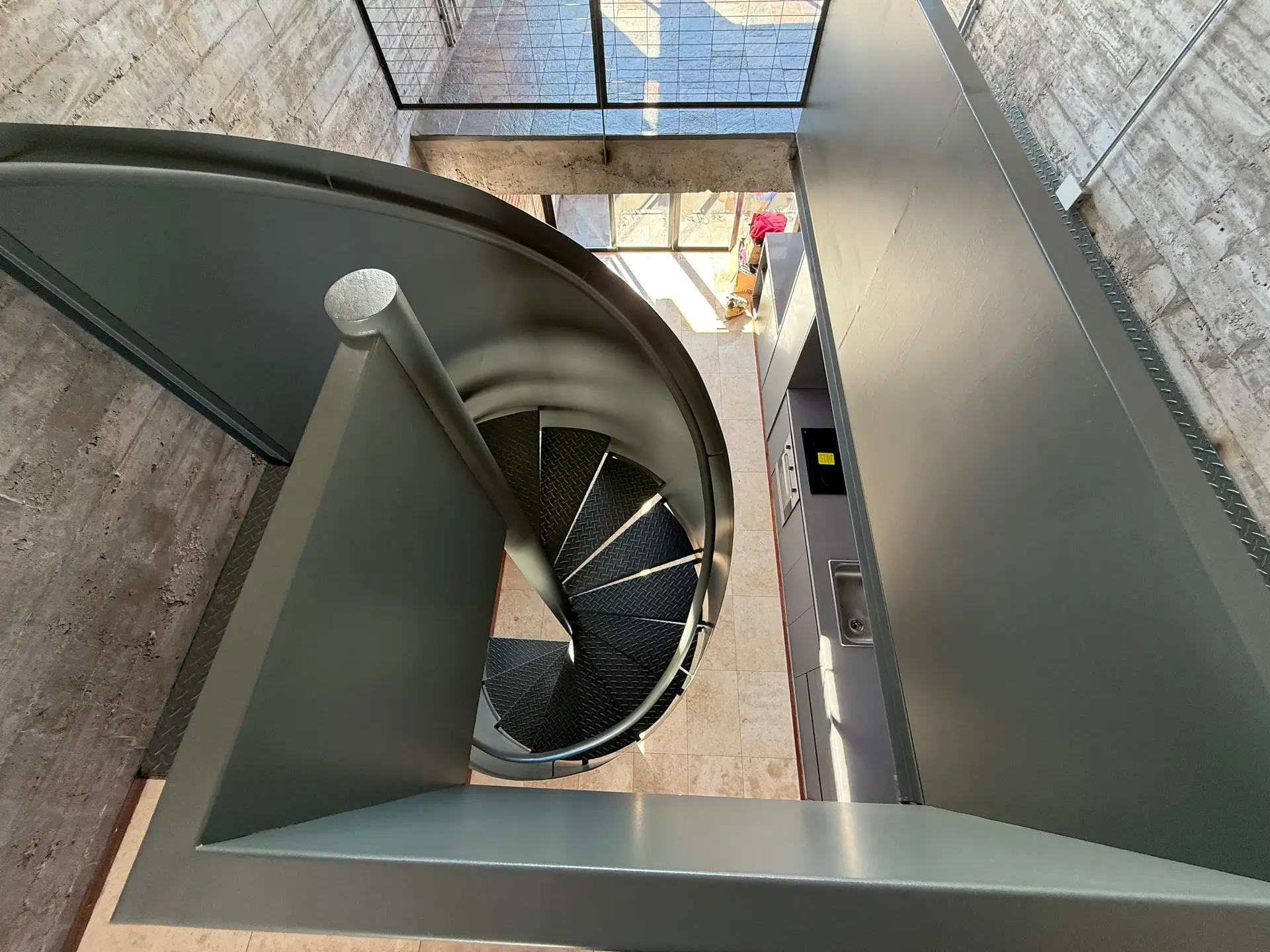 Apartamento tipo dúplex semipiso com 97 m² cobertos e 18 m² descobertos, com frente para a rua e de fundos, nos pisos 8 e 9. No piso 8 há cozinha com forno elétrico embutido, cooktop vitrocerâmico e coifa em aço inox, além de áreas de armazenamento, banheiro com box e bidê com funções eletrônicas e instalação para lavadora. O piso 9 tem acesso por escada caracol, com espaço para escritório/quarto e segundo living, banheiro e saída para varanda; há 4 ar-condicionados na unidade. O prédio tem esté