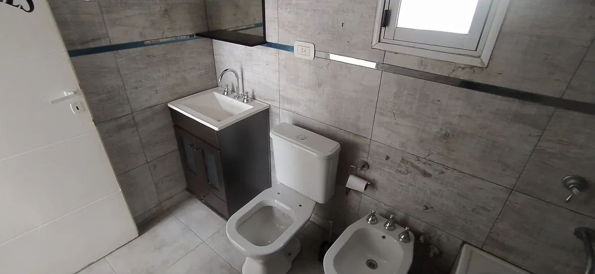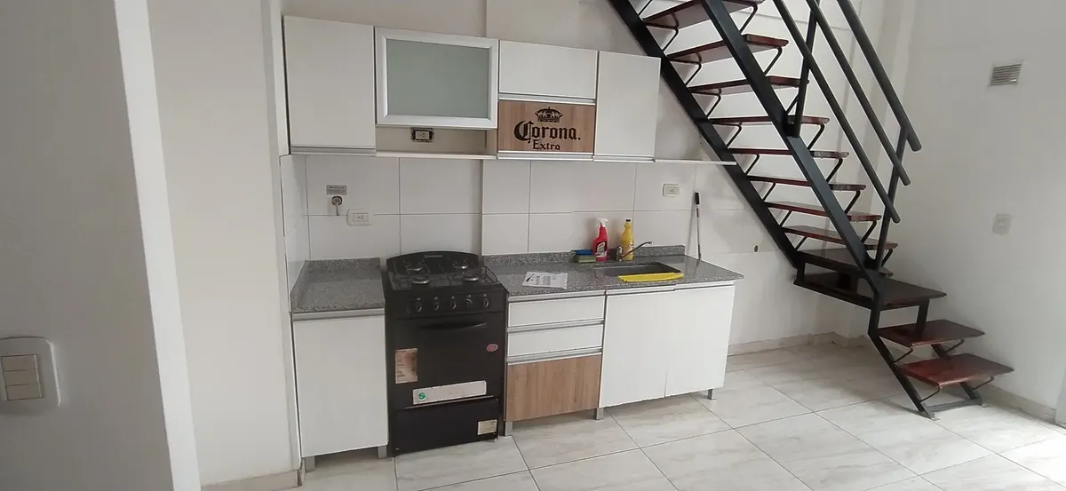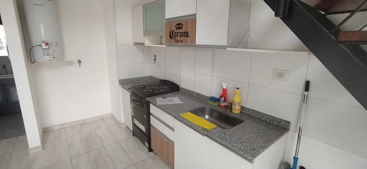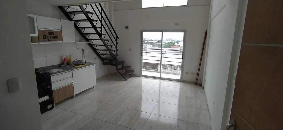 Apartamento em dúplex de 2 ambientes em Lanús Oeste, com 1 dormitório e varanda. No piso térreo, área de estar com mesa para cozinha, banheiro com banheira e acesso ao terraço; há aquecedor a gás, pisos de porcelanato e conexão para lavadora. No piso superior, dormitório com piso flutuante, armário e varanda fechada que pode ser usada como escritório, closet ou área de pátio fechada. O condomínio inclui luz, água e TSG; o gás é pago à parte. Contrato de 2 anos com ajuste trimestral pelo ICL. Exi