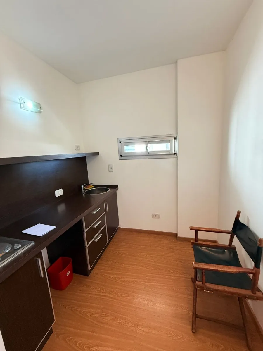 Kitnet em Lanús, de frente para a rua, com varanda. Possui ar-condicionado, cozinha separada e banheiro instalado. O condomínio é pago em dia e o imóvel pode ser usado para moradia ou para uso profissional, para 1 pessoa.