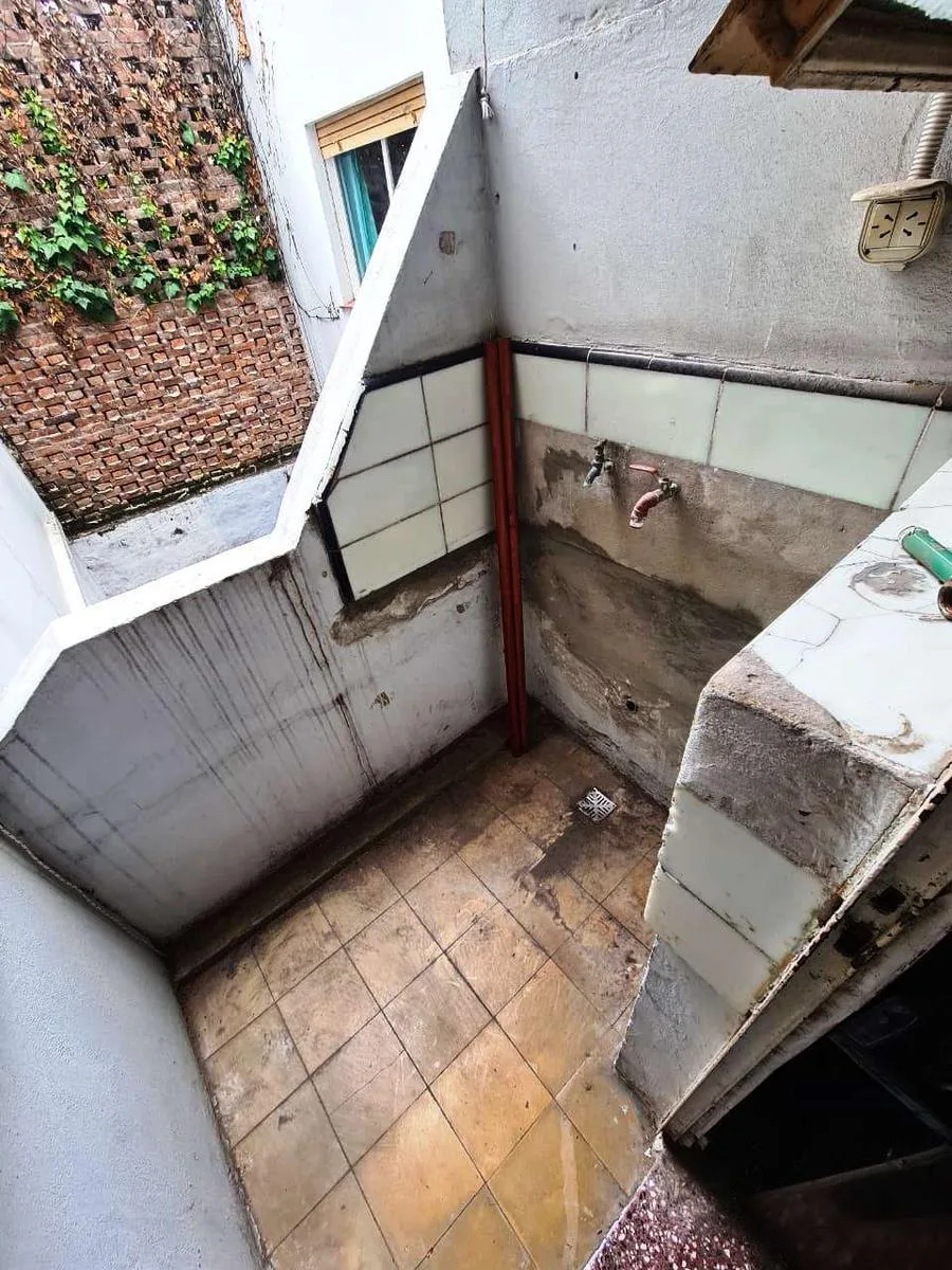 Apartamento de dois ambientes para aluguel em Lanús Centro, em Lanús Oeste, no primeiro andar sem elevador (por escada). Conta com living com piso de parquet e acesso a cozinha instalada com bancada e pia de aço inox, armário sob a bancada, fogão e aquecedor a gás. O banheiro é completo com banheira e ducha, bidê, vaso sanitário, cuba para lavar e espelho, com pisos e paredes cerâmicos; o quarto tem piso de parquet. Há área semi-coberta para ventilação interna com conexões para máquina de lavar.