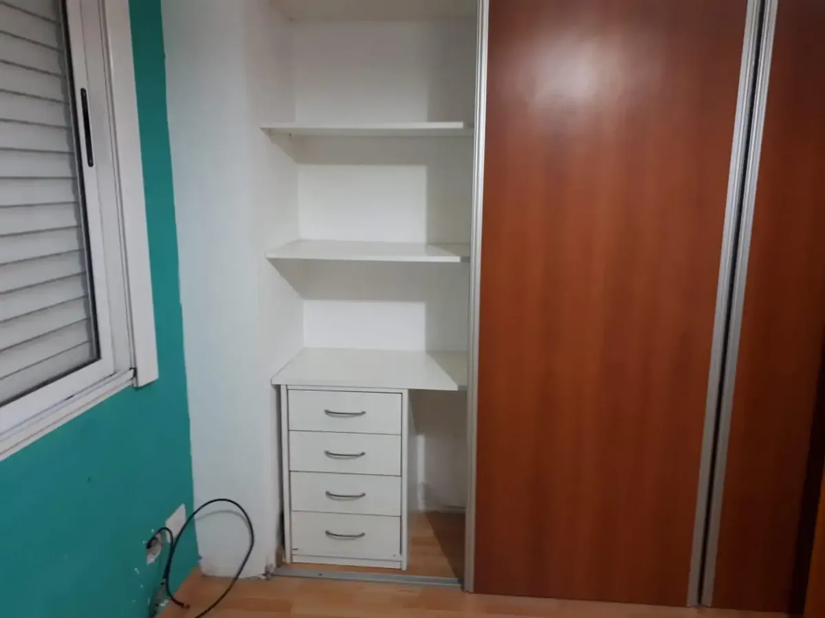 Apartamento de 2 ambientes com 1 quarto, no 1º andar, de fundos. Dispõe de dormitório com armário, sala de jantar com varanda, cozinha completa com móveis sob a bancada e armário aéreo, fogão e aquecedor de água, além de banheiro completo. Condomínio (expensas) é pago pelo inquilino. Requer 3 fiadores com comprovante de renda ou garantia patrimonial.