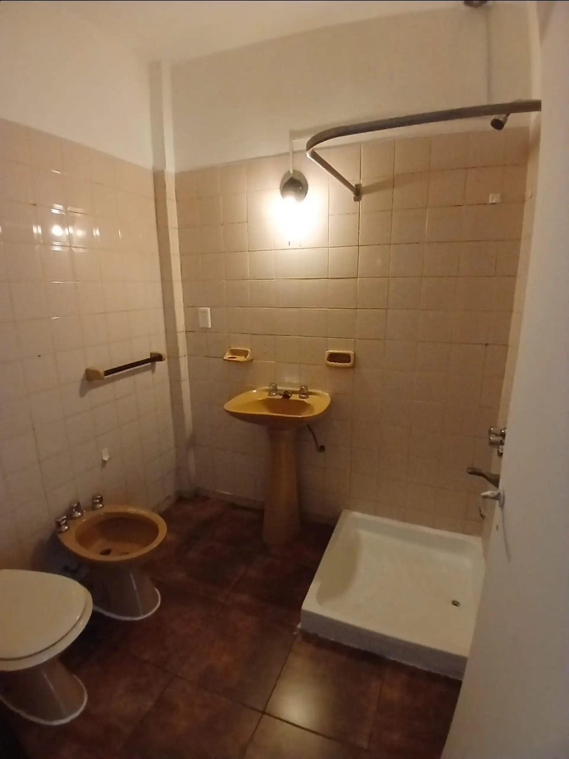 Apartamento de 2 ambientes com 45 m² no 1º andar, de frente para a rua, em bom estado geral. Tem sala de estar e jantar com vista para a frente, cozinha independente, banheiro completo e quarto com vista para o miolo de quadra. Não há condomínio; são pagos valores proporcionais de AySA e TSG. A unidade não aceita animais. Não inclui vaga de garagem.