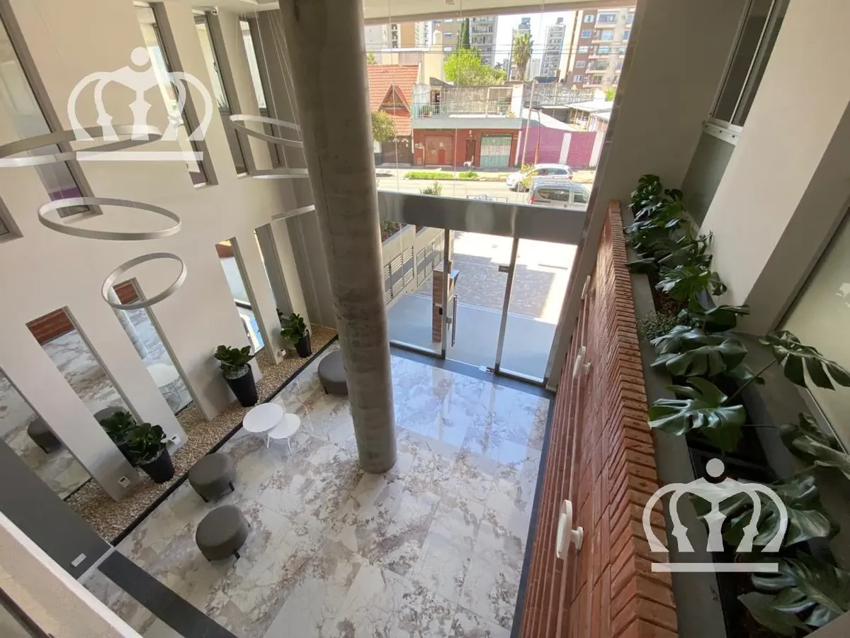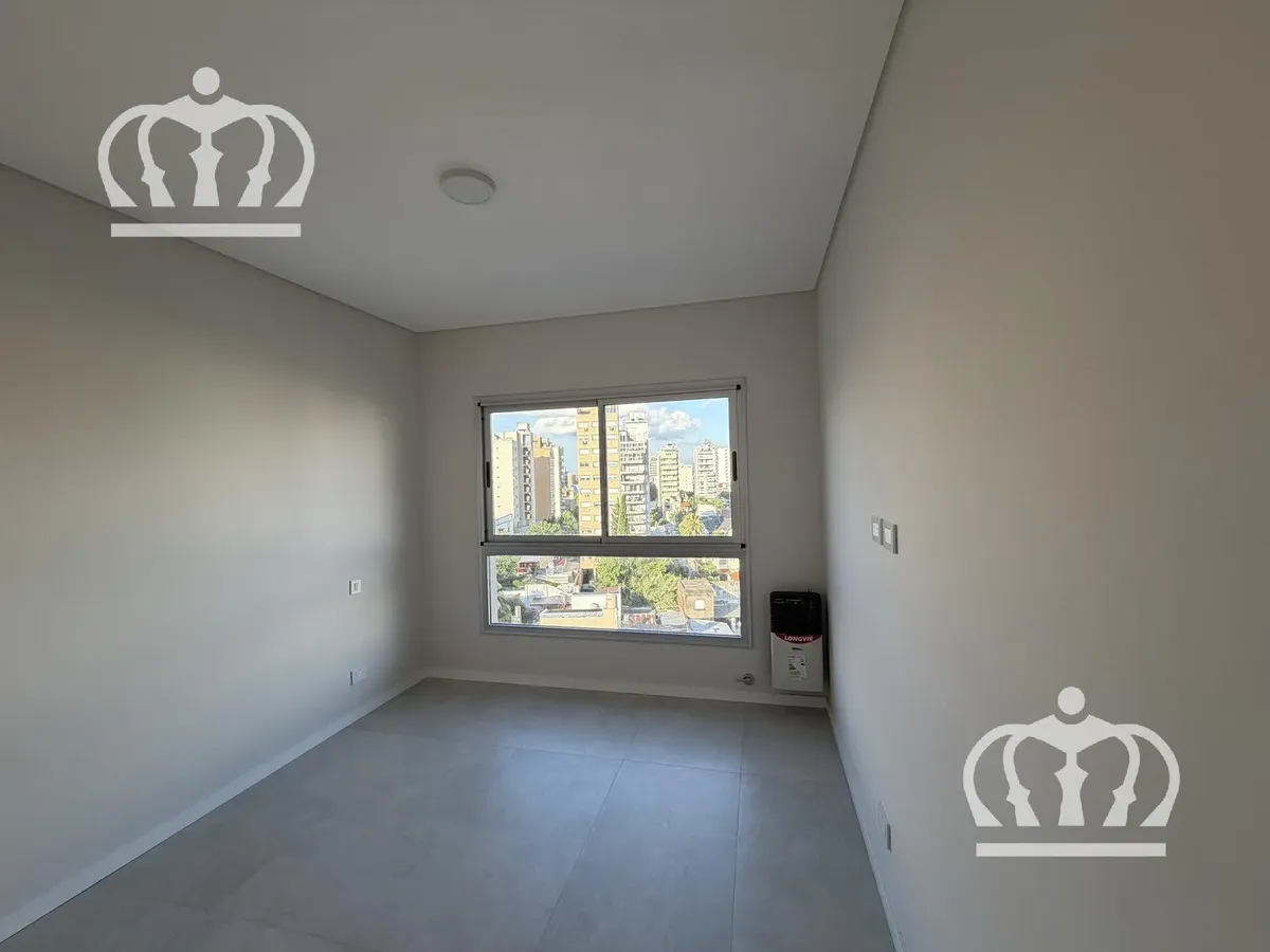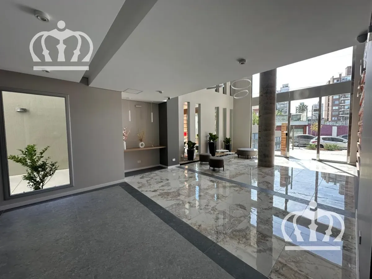 Apartamento de 2 ambientes em Lanús, de frente para a rua, novo (nunca habitado), com varanda e 1 dormitório com armário embutido. Possui estufa de tiro balanceado, piso de porcelanato e banheiro completo. Cozinha completa com conexão para máquina de lavar e área de estar/jantar com saída para a varanda. O aluguel é “mais condomínio”, e no valor do condomínio constam luz, Aysa e TSG; inclui, por ora, condomínio, seguro contra incêndio e gás. O edifício tem S.U.M., academia equipada, sala de jogo