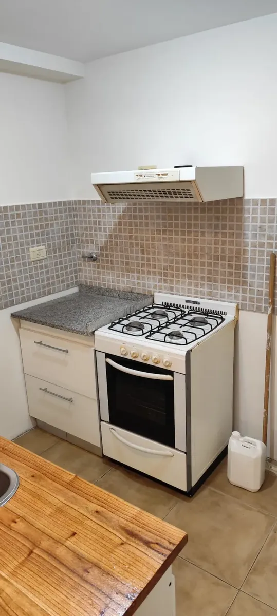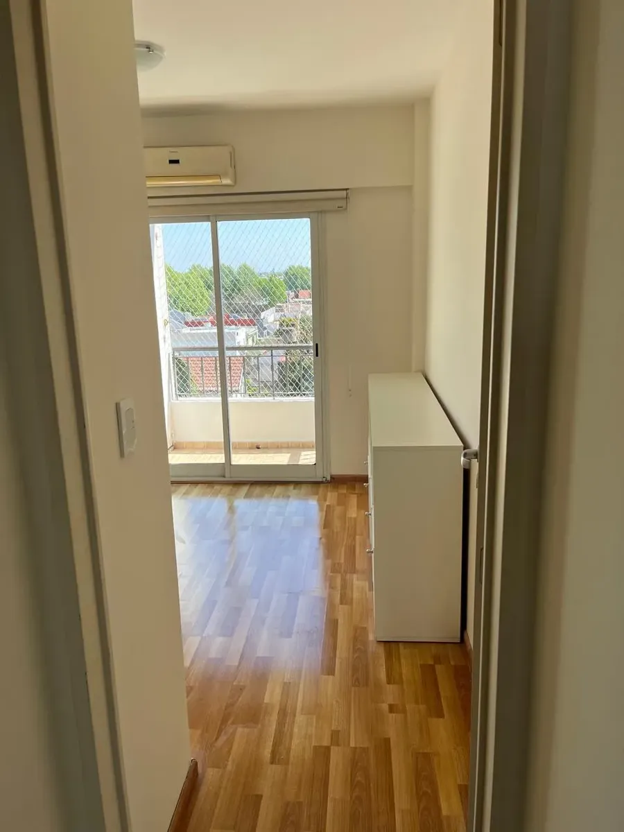 Apartamento de 2 ambientes com 1 quarto, cozinha independente, banheiro completo e varanda, no 4º andar. Tem área de serviço/lavadero e vaga de garagem incluída. O aluguel é de $650.000; condomínio, luz, gás e 50% de ABL ficam a cargo do inquilino. Requerem-se mês adiantado, mês de depósito, seguro de fiança e honorários equivalentes a 1 mês de aluguel.