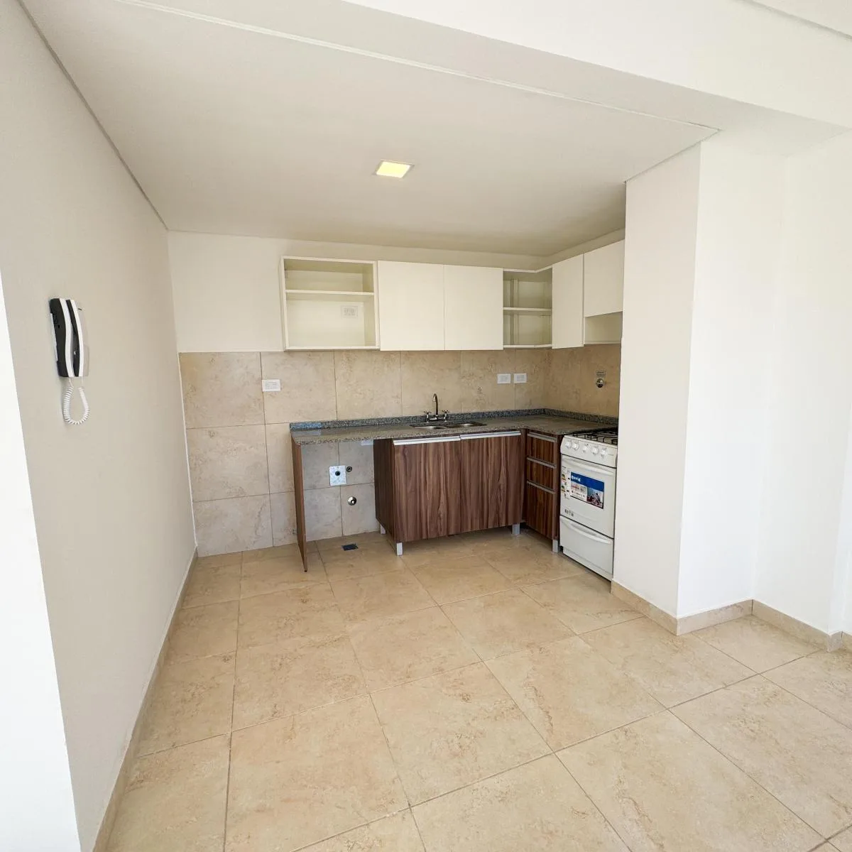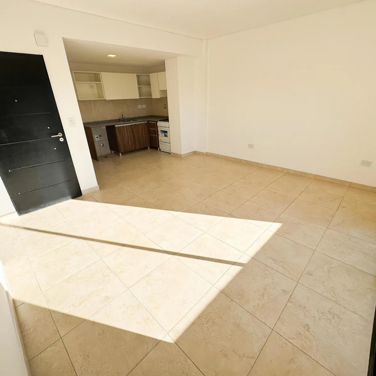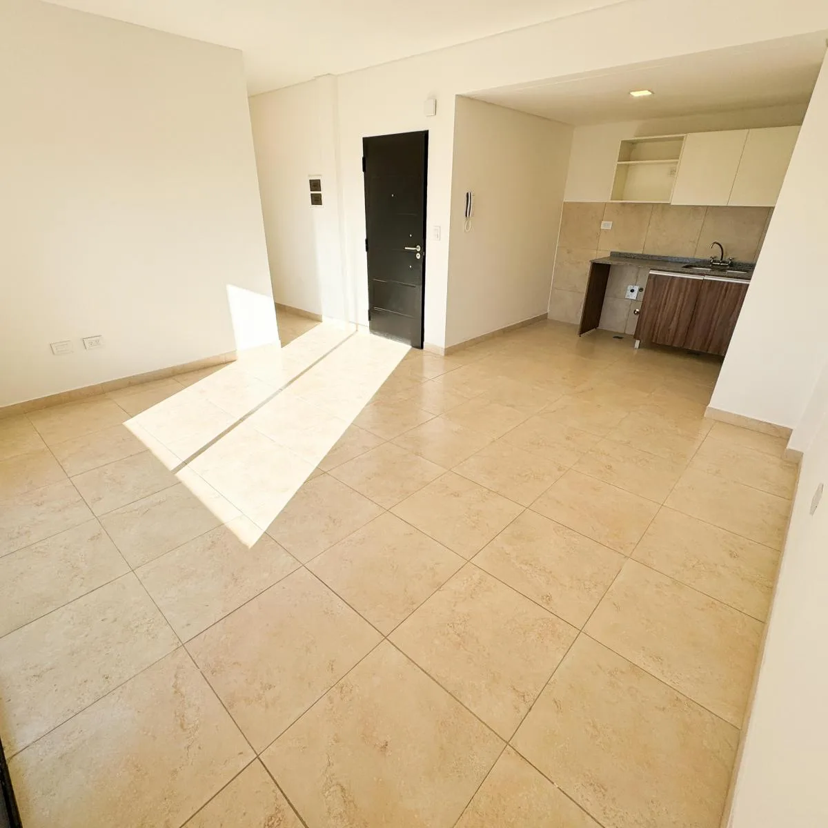 Apartamento de 2 ambientes novo (nunca habitado) em Lanús Centro, com 1 quarto, varanda de frente e vaga opcional. O living-comedor tem ponto para ar-condicionado, estufa a tiro balanceado e portaria elétrica; a cozinha é a gás, mobiliada com pia com armário inferior e armário superior, com conexão para lavadora. Inclui hall de entrada com toalete/banheiro de serviço, distribuidor, quarto com guarda-roupa de correr e ponto para ar-condicionado, banheiro completo com banheira e box com espelho, a