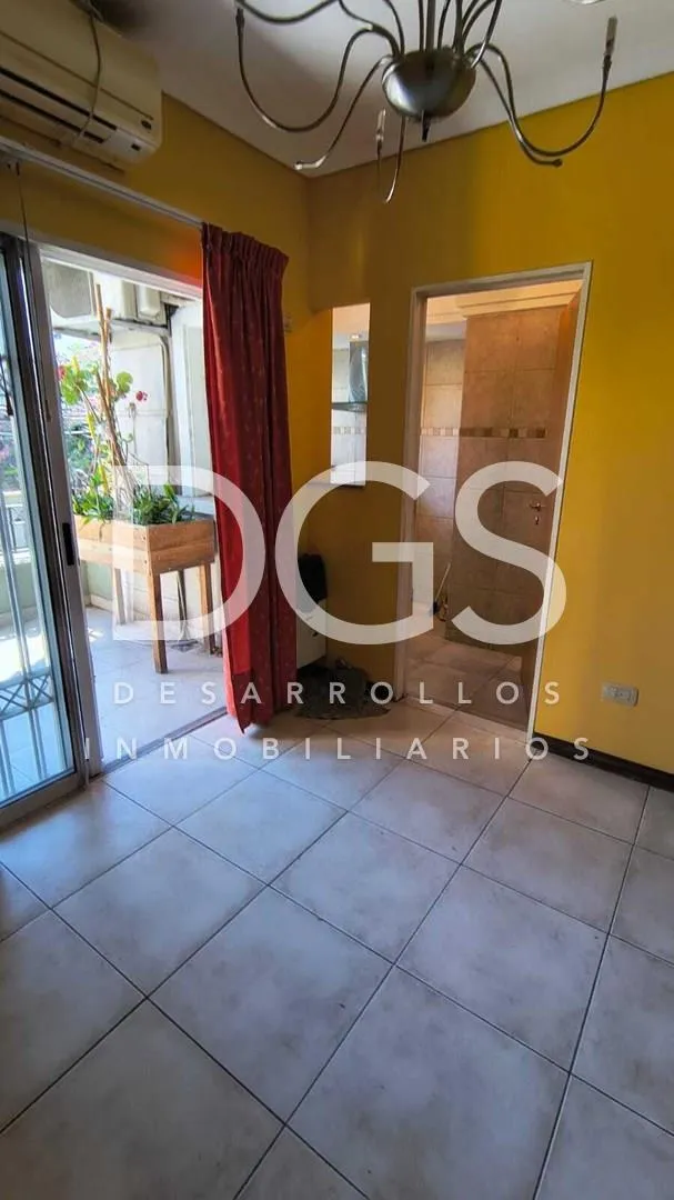 Apartamento de dois ambientes em Lanús Oeste, com 1 quarto e ampla área de estar e jantar. O imóvel tem ar-condicionado e aquecimento por estufa de tiro balanceado no living; cozinha a gás conectada ao living, com coifa, lavadora (lavarropas) e aquecedor de água a gás (calefón). Há varanda de frente e piso em parquet no quarto; o quarto inclui estufa de tiro balanceado e closet, além de um mini-balcão estilo francês, com vista para os fundos. O banheiro é completo, com banheira; inclui vaga de g