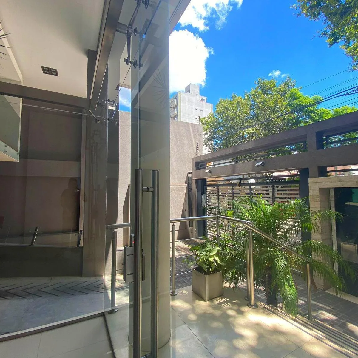 Apartamento de 2 ambientes no contrafrente, com 1 quarto e varanda. Cozinha integrada com área de jantar, balcão de granito, cuba dupla de aço inox, torneira mono comando, fogão e exaustor, além de ar-condicionado frio. A sala e o quarto têm portas-balcão; o quarto conta com piso de madeira flutuante e ar-condicionado frio e quente. O banheiro tem box de vidro temperado, banheira com ducha, bidê e chuveiro, além de aquecimento por radiadores em todos os ambientes. A varanda tem área em estilo te