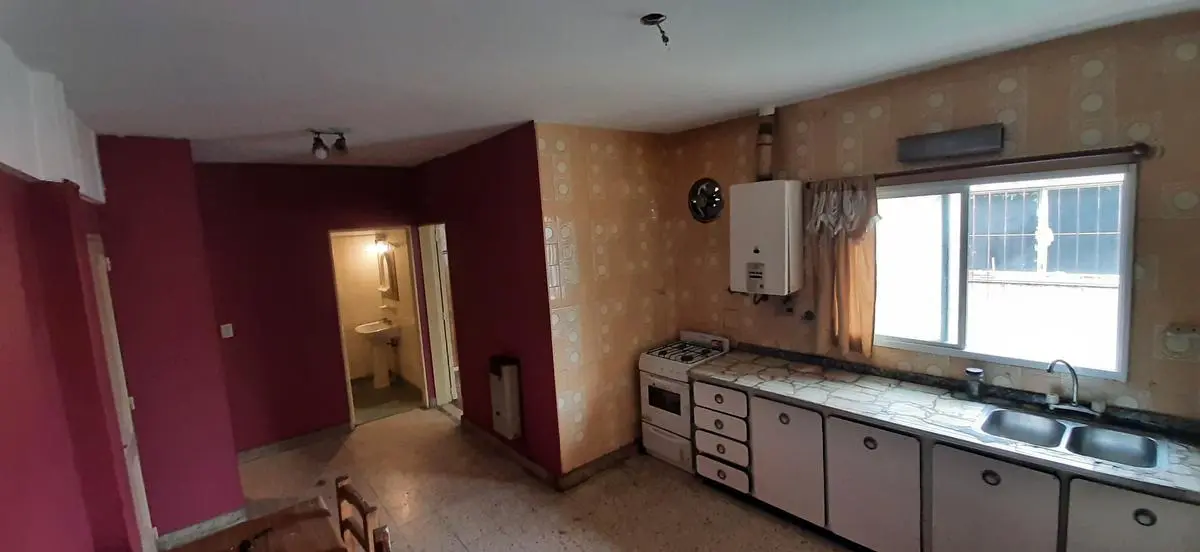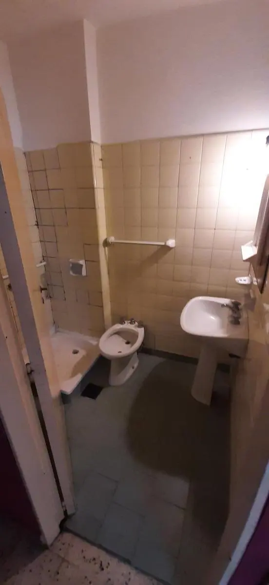 Apartamento tipo PH no primeiro andar, sem elevador, por escada, em Lanús Oeste. Com 1 dormitório com armário, piso de parquet, ar-condicionado e janela para o miolo de quadra. A cozinha-sala mede 6 m x 3 m, com bancada e armários embutidos, cozinha e calefón para água quente, além de janela para o miolo de quadra. Há 1 banheiro completo e um pátio com cobertura em chapa, que pode funcionar como 3º ambiente. Imóvel a 7 quadras da Av. Hipólito Yrigoyen, com acesso direto a CABA e a um ponto de co