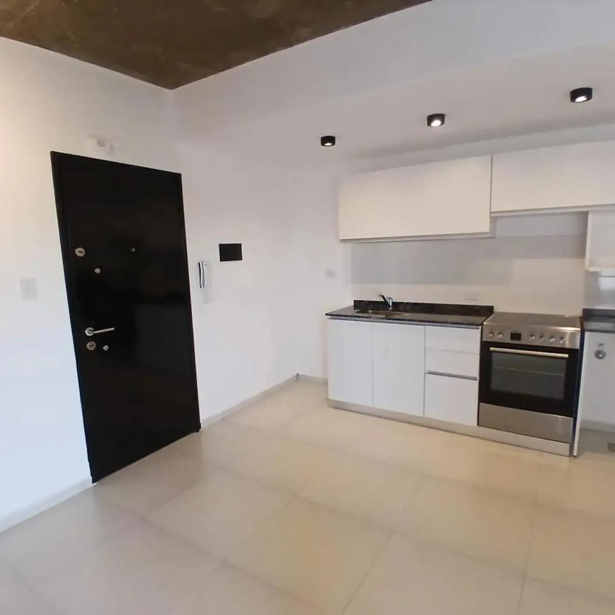 Kitnet novo (nunca habitado) em zona central de Lanús Este. Inclui living com cozinha integrada e acesso a varanda ampla, além de ar-condicionado tipo split frio/calor. A unidade tem área para lavar roupa de carga frontal, quarto com grande ventilação para a varanda, placard duplo no hall, banheiro completo com ventiluz e espelho com iluminação. O edifício tem câmeras de segurança, salão de festas (SUM), academia em montagem, terraço com ducha e área de churrasco; não há gás. O locatário paga co