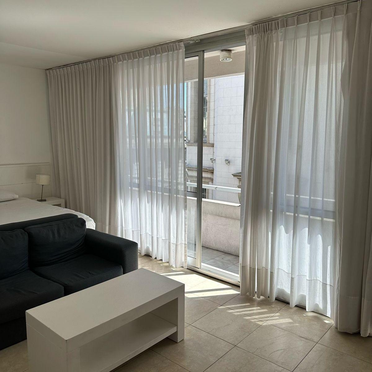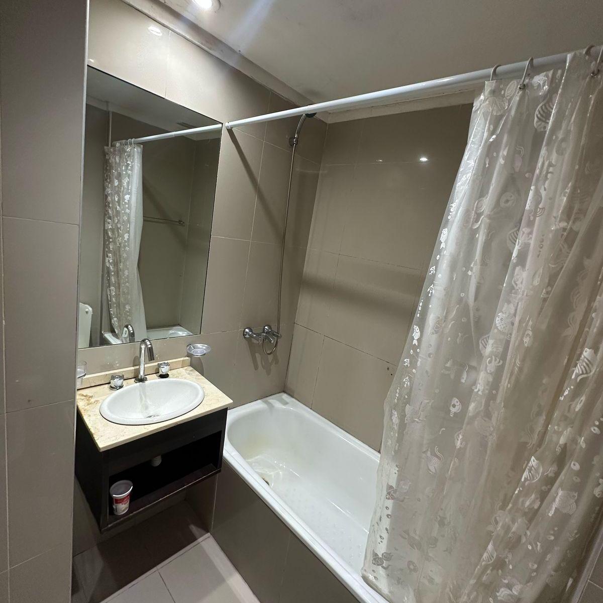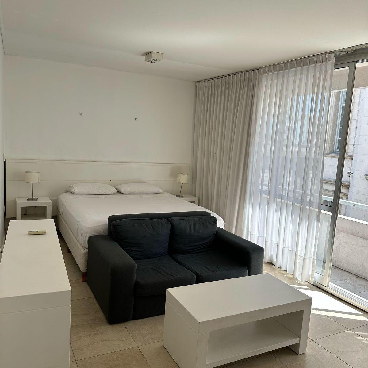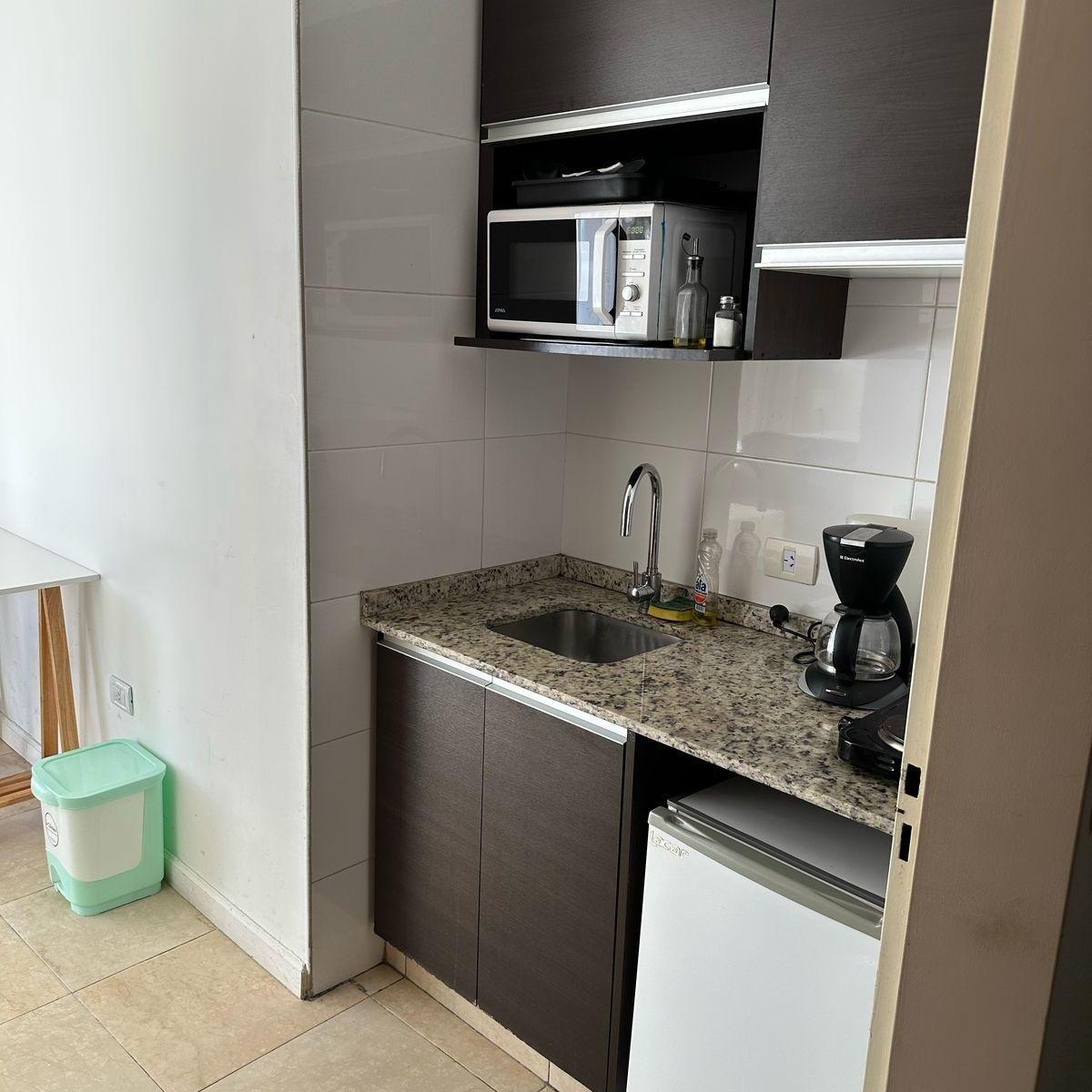 Apartamento mobiliado com 1 quarto em Lanús, a 4 quadras do Obelisco. Cozinha tipo kitchenette com micro-ondas, louça para 2 pessoas, fogão (anafe) e frigobar. Possui banheiro privativo com banheira, cama king ou 2 camas twin, TV LED de 32" com porta USB, ar-condicionado e aquecimento com controle individual, além de cofre eletrônico para laptop. O preço inclui condomínio, ABL, água e internet WiFi de 100 Mbps; não inclui luz. Edifício com piscina na cobertura e lavanderia, com serviço de portar