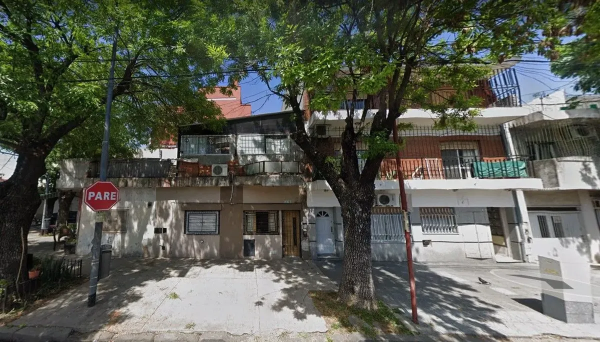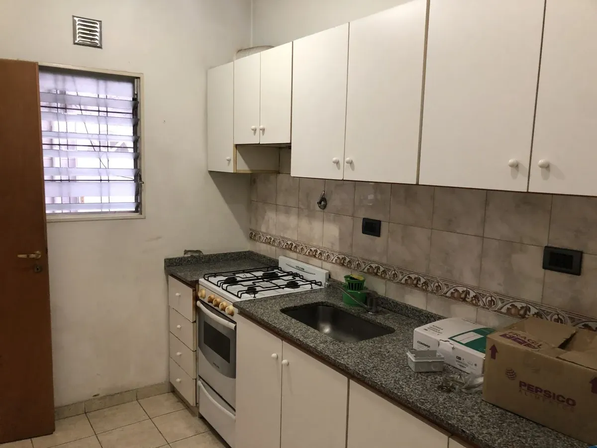 PH de 2 ambientes no térreo, de fundos (contrafrente), com acesso por palier e corredor de uso exclusivo. Inclui pátio amplo com área de lavanderia semicoberta. Living com área integrada para sala de jantar e cozinha de 8,50 m x 3,50 m, hall íntimo, quarto de 3,60 m x 3,80 m com armário, e banheiro instalado. Não tem condomínio (expensas).