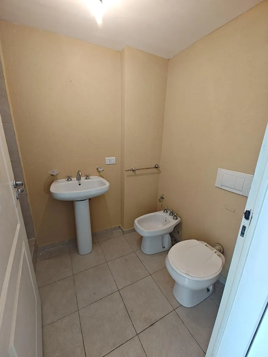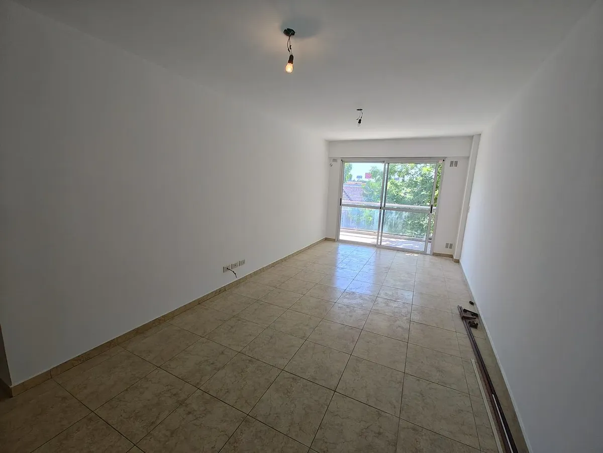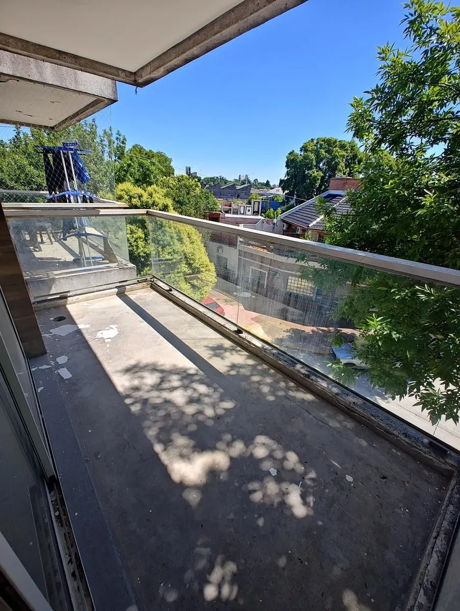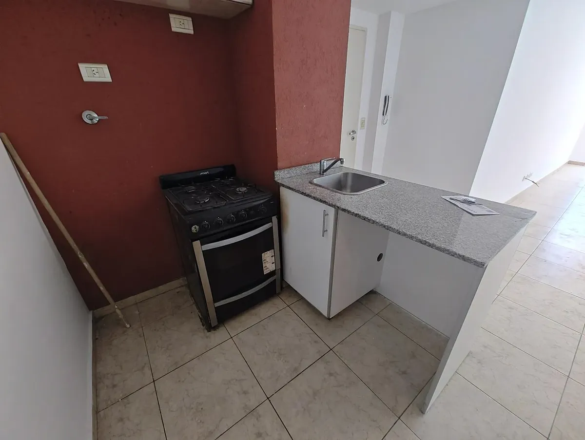 Kitnet em Liniers, de frente para a rua, com varanda. Possui 1 banheiro, balcão de 1,42 x 3,37 m com piso de cimento e fechamento em vidro, além de elevador, caldeira central para água quente e câmeras de segurança. Inclui água quente e fria, cozinha de 2,1 x 2,46 m com fogão de 4 bocas com forno e parrilla marca Smart, pia de aço inox e preparação para máquina de lavar, e banheiro de 1,51 x 2,23 m com lavatório, vaso, bidê e ducha. O condomínio é de $ 210.000.