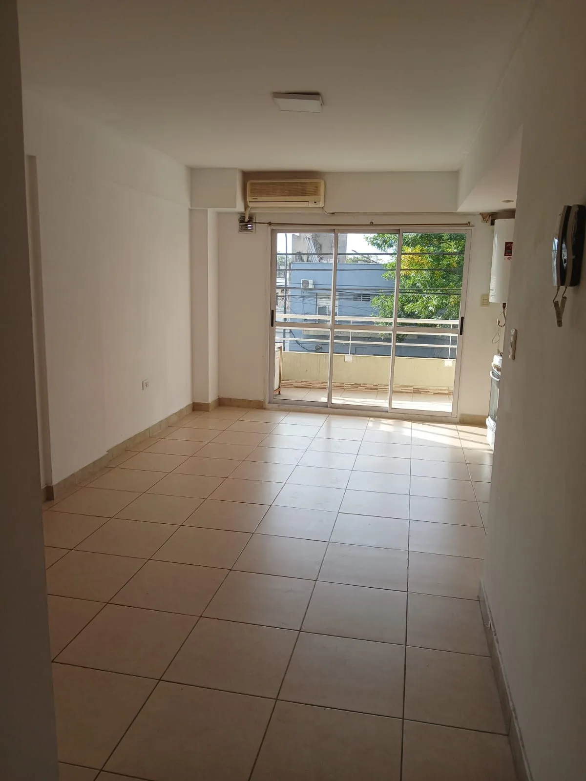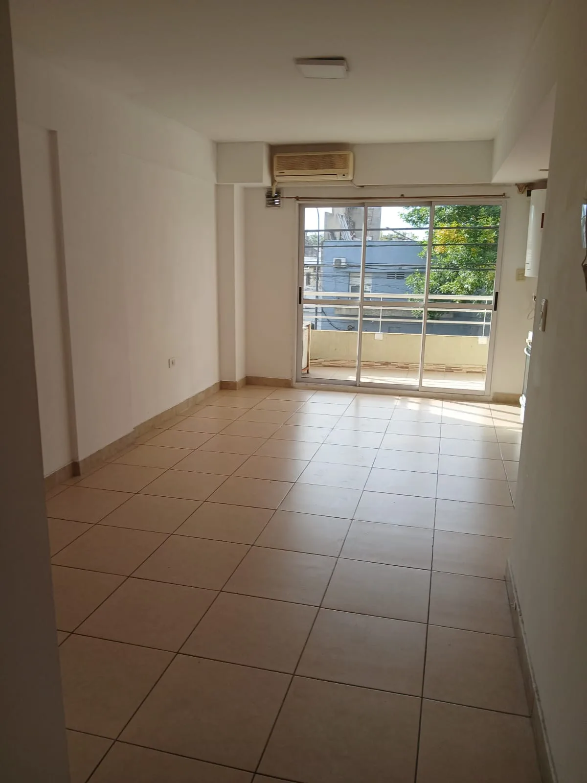 Apartamento de 2 ambientes com 1 quarto e 1 banheiro completo, com living integrado à cozinha. Fica no 10500 da Av. Rivadavia, com varanda de frente para a rua. Tem ar-condicionado.