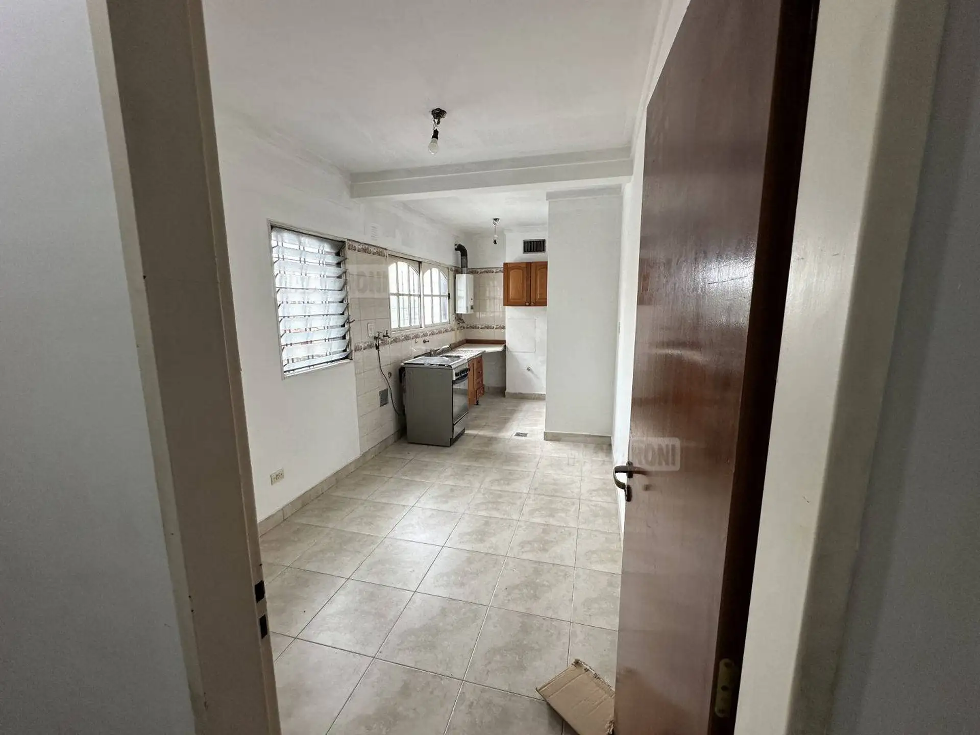 Apartamento de dois ambientes com 1 quarto, cozinha e sala de jantar, com elevador e hall (palier) comum. O living tem piso cerâmico e a cozinha vem com pia, armários sob a bancada e acima da bancada, aquecedor (calefón) e fogão. Há banheiro completo com banheira e box, além de dormitório com armário embutido e 2 estufas a tiro balanceado. Inclui varanda; ficará disponível a partir de 30/04/26.