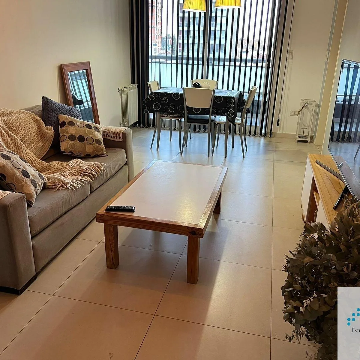 Apartamento semipiso de 2 ambientes com 45 m² cobertos e 5 m² descobertos, totalizando 50 m², de fundos, com 1 dormitório e 1 banheiro. Cozinha totalmente equipada e varanda de fundos. Inclui WiFi e TV smart de 55" com Directv Go; o edifício tem elevador e grupo gerador para áreas comuns. O valor inclui todos os serviços, impostos e condomínio.