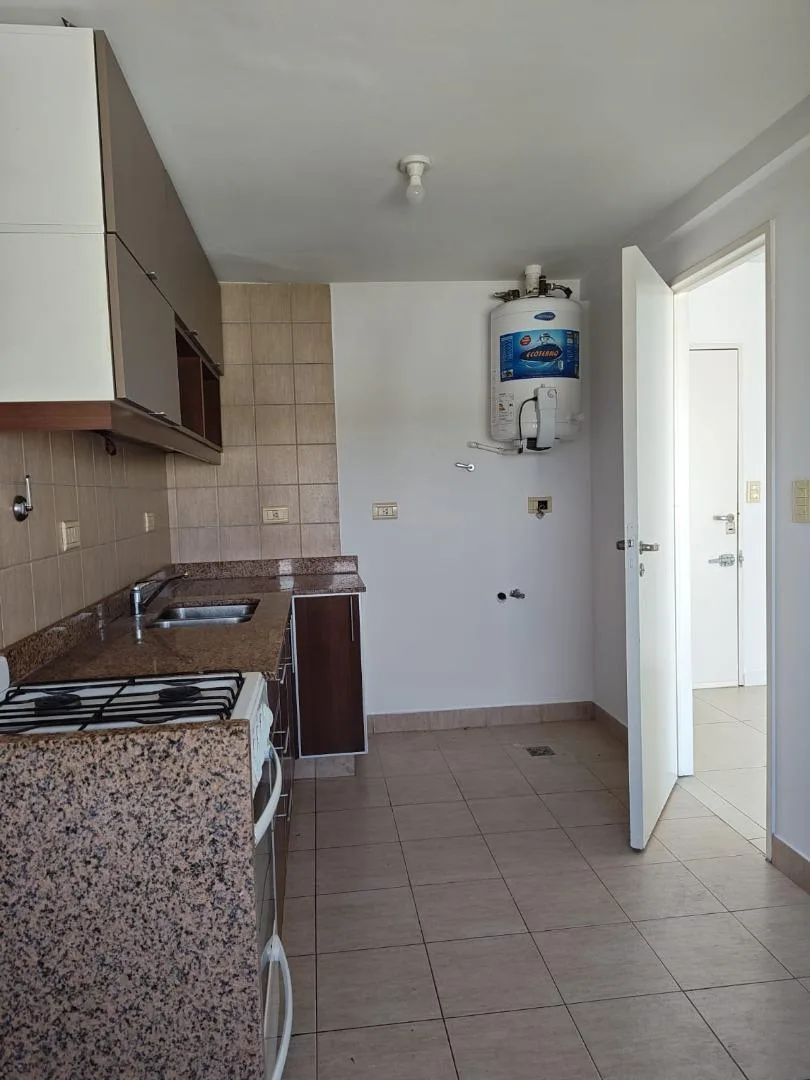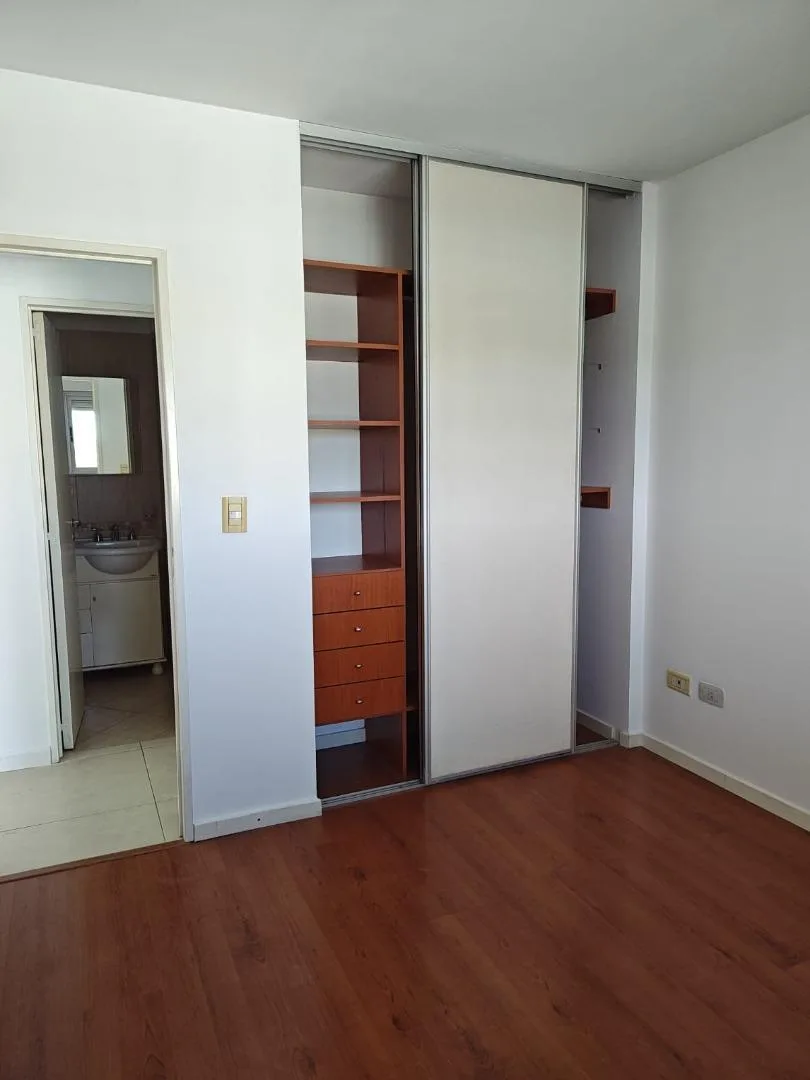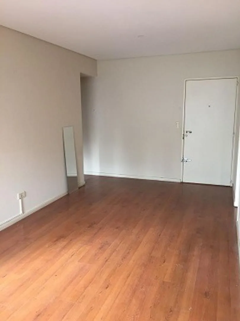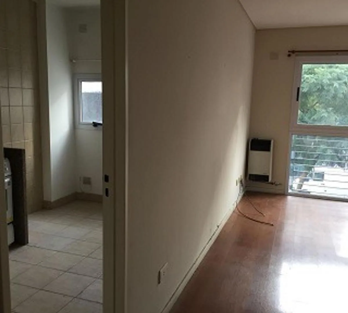 Apartamento de 2 ambientes no 13º andar, de fundos (contrafrente), com sala e quarto, varanda para o miolo. Cozinha com área de refeições independente, móveis sob e sobre bancada e conexão para lavadora, além de termotanque. Quarto com armário e persiana americana. Banheiro completo; aquecimento por estufa de tiragem balanceada na sala e no quarto. O condomínio tem térreo e 14 andares, com 2 elevadores (um para a frente e outro para o contrafrente em cada andar). Os gastos mensais a cargo do inq
