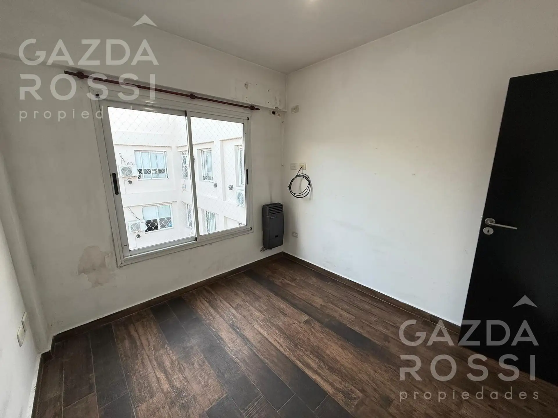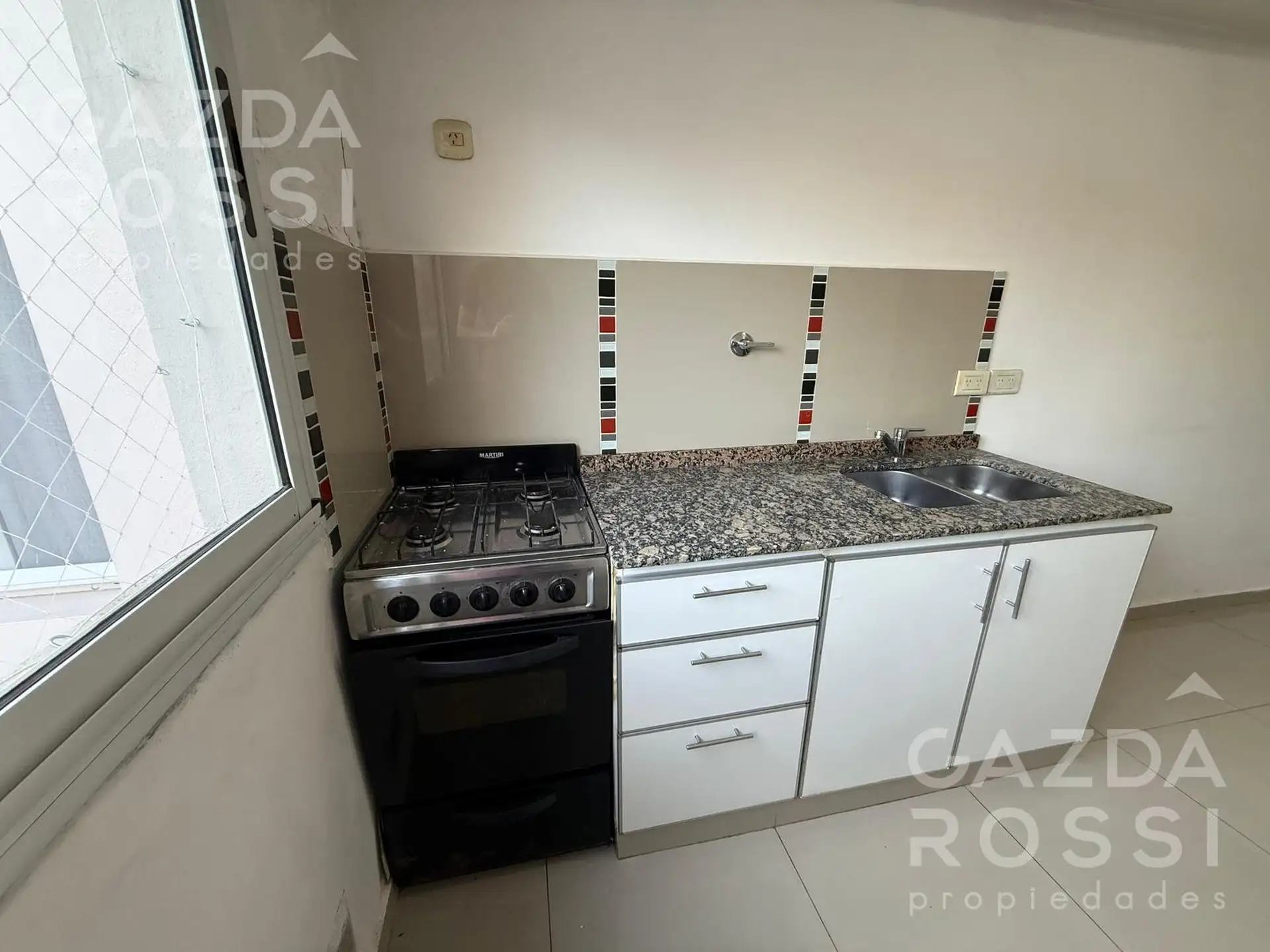 Apartamento em Lomas de Zamora, a cinco quadras da estação de trens. Sala de estar e jantar com cozinha integrada. Lavanderia independente em área separada com aquecedor de água (termotanque). Quarto com armário embutido e estufa de tiro balanceado; piso em cerâmica. Banheiro completo com banheira. O prédio tem salão de usos múltiplos, área de churrasco e piscina. Condomínio aproximado de $140.000. O valor do aluguel é acrescido de condomínio, taxas municipais e serviços; exigem-se mês de alugue