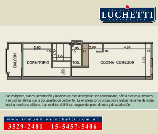 Apartamento de 2 ambientes com 1 quarto em suíte, com banheiro completo e banheiro auxiliar. Cozinha com sala de jantar e previsão de instalação para lavadora (lavarropas) ou lava-louças, além de varanda com previsão para lavarropas. O condomínio tem cerca de R$ 180.000 mensais, incluindo Aysa e Edesur. O prédio possui jardim e piscina de uso comum.