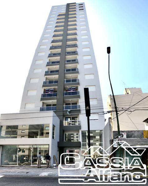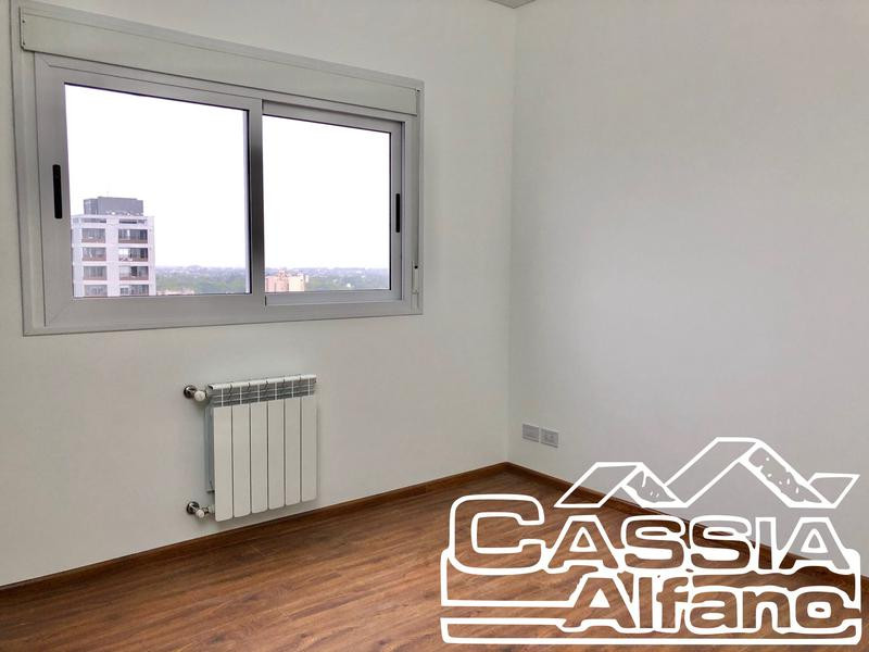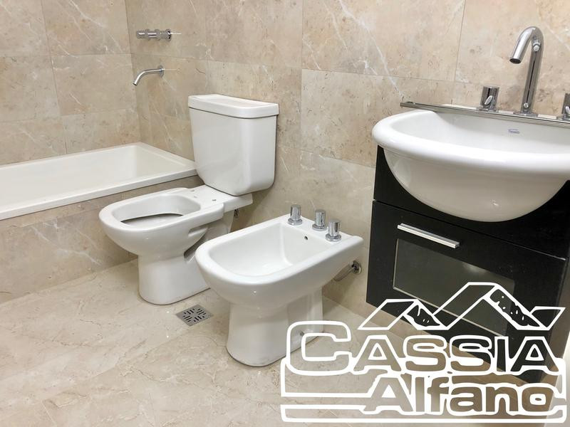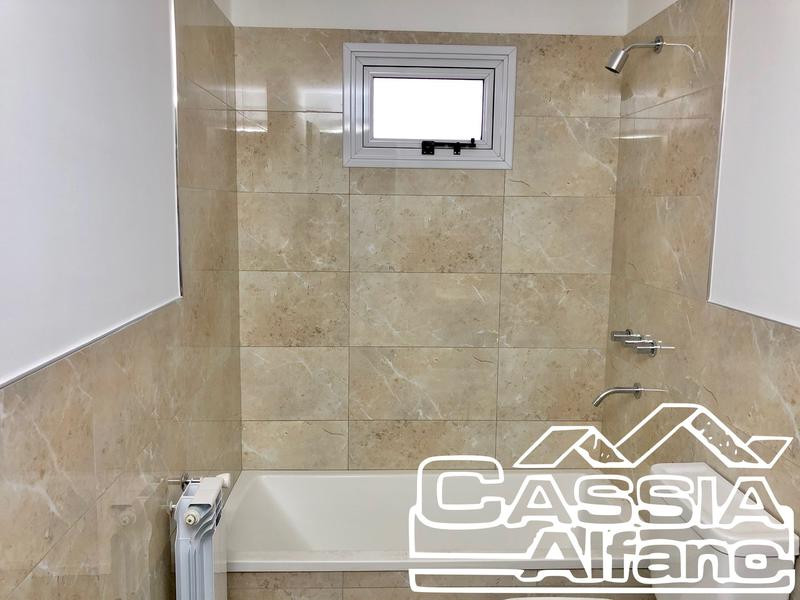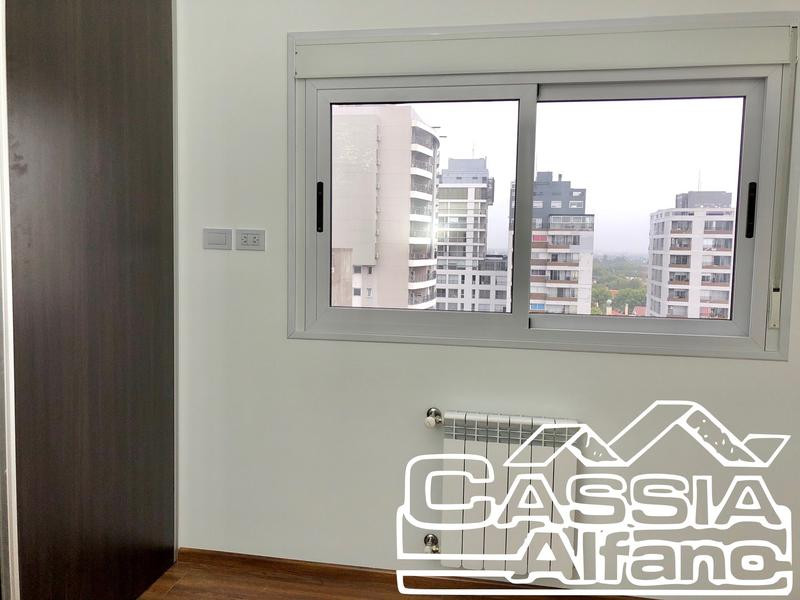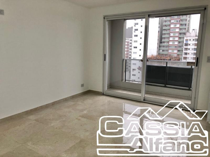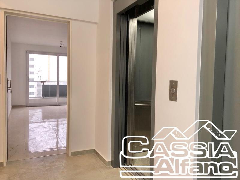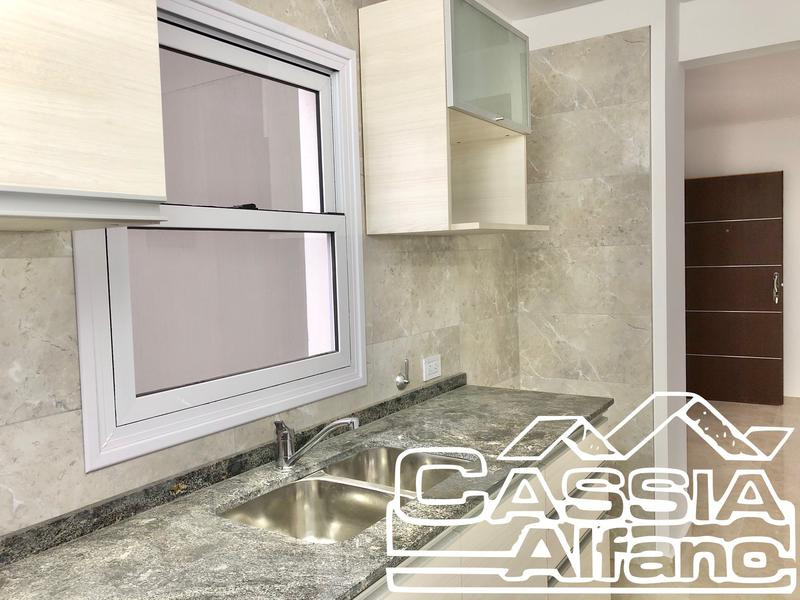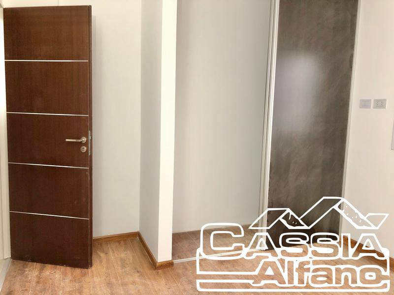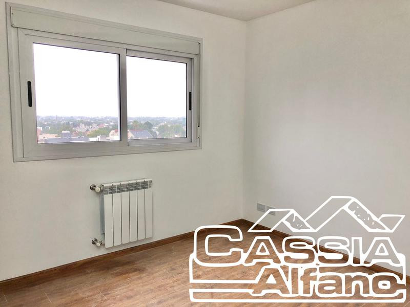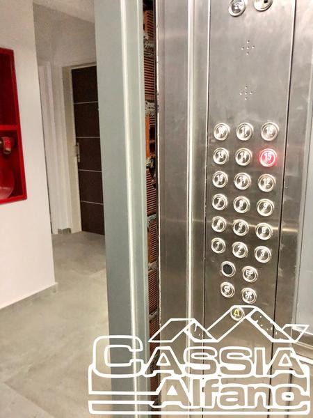 Apartamento de dois ambientes no 9º andar, de fundos (contrafrente), com vista aberta. Conta com 1 dormitório com janela e persiana, armários embutidos e cozinha independente com móveis planejados (alto e baixo), fogão novo, coifa instalada e caldeira dual com sistema de radiadores. Há pré-instalação para ar-condicionado e janelas de alumínio com vidro duplo. O edifício é a Torre Alsina 770, em Banfield, Lomas de Zamora.