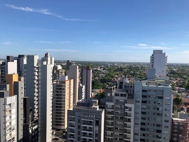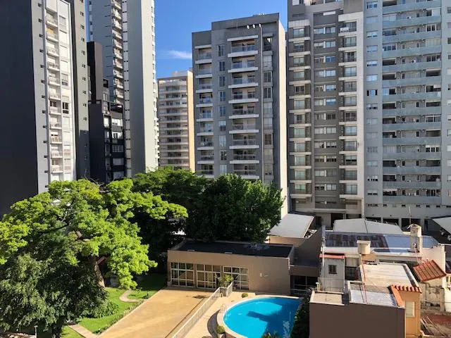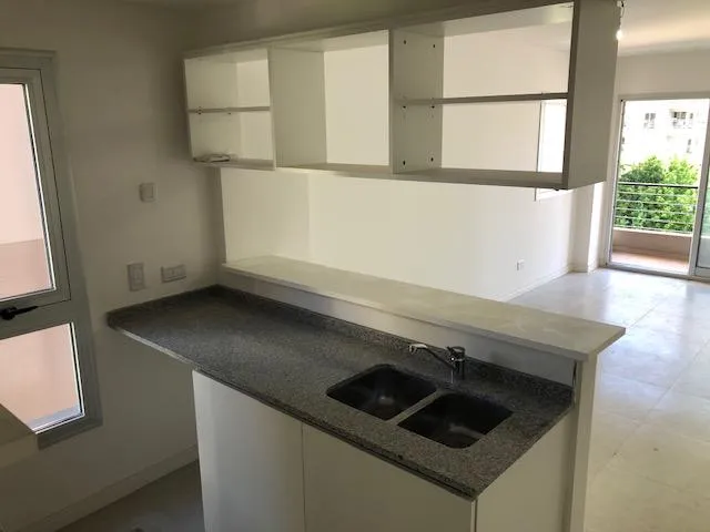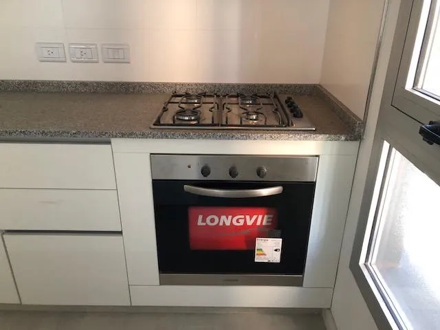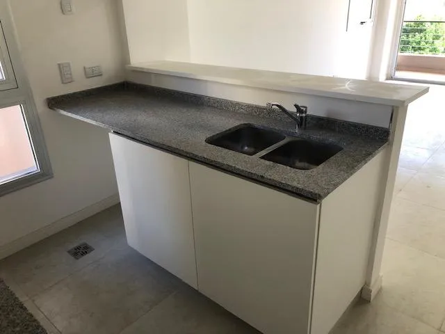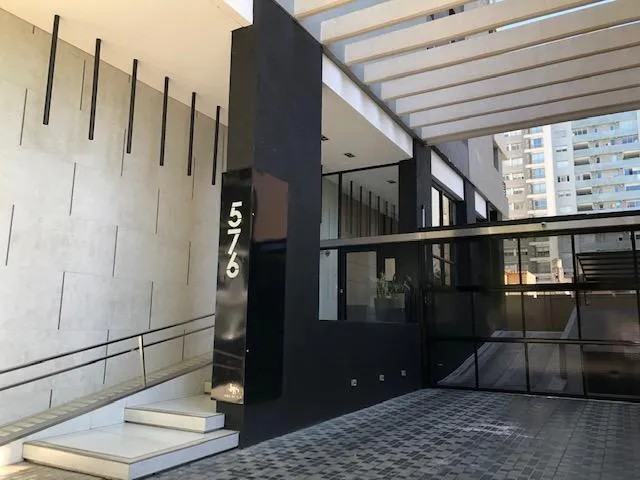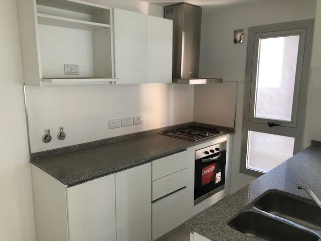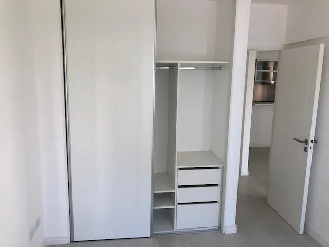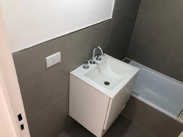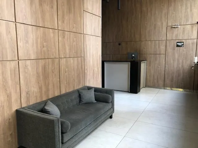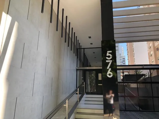 Apartamento de 2 ambientes em Lomas de Zamora, com 1 quarto e hall de entrada. Possui living com piso de porcelanato, saída para varanda, ar-condicionado split frio/quente e aberturas em alumínio anodizado com janelas de vidro duplo (DVH). Cozinha com móveis sob e sobre a bancada, forno embutido, cooktop e coifa em aço inox, além de barra de apoio para refeições. O dormitório tem armário embutido. Banheiro completo com bancada suspensa em madeira laqueada. No último andar, o prédio conta com SUM