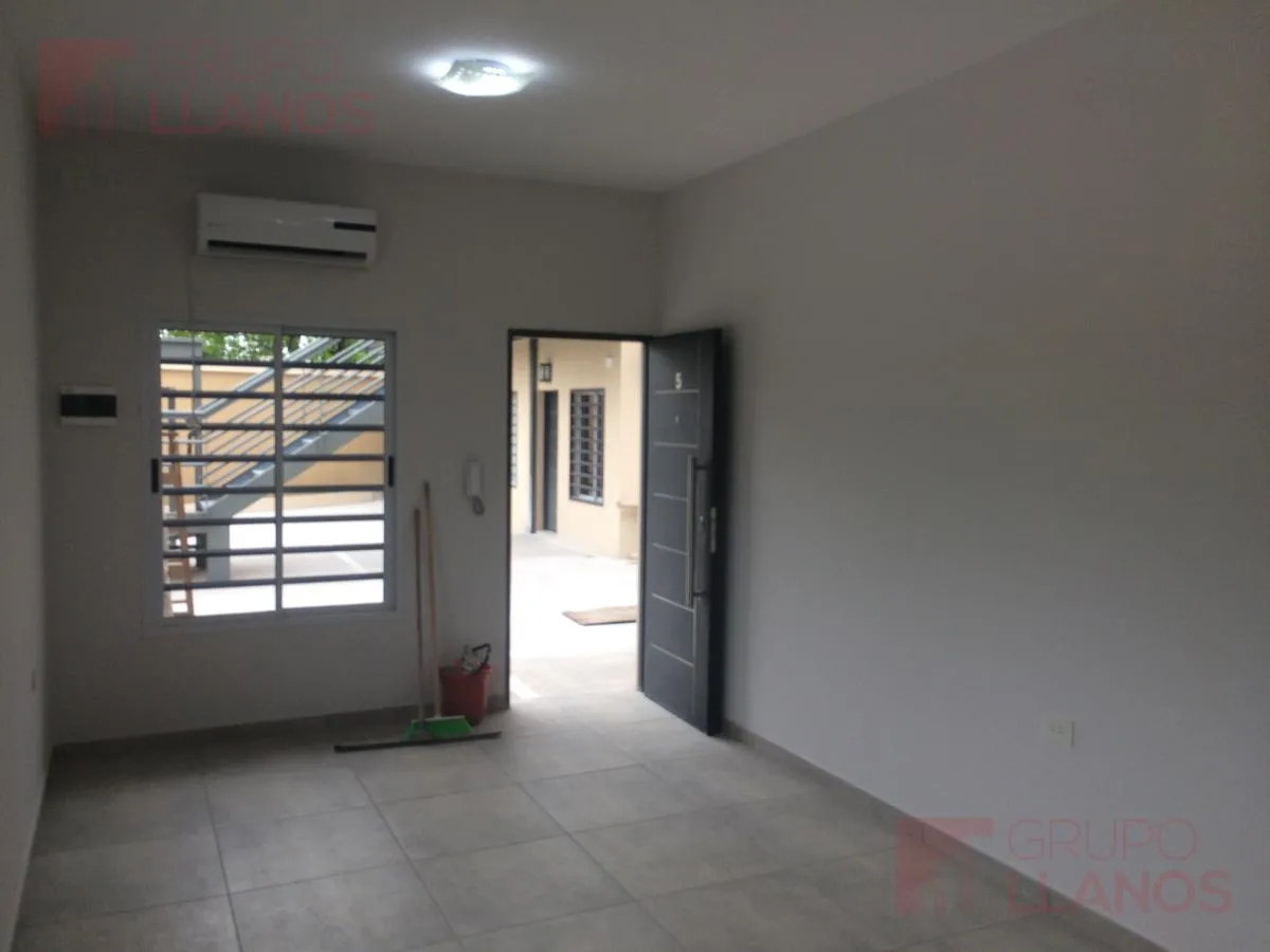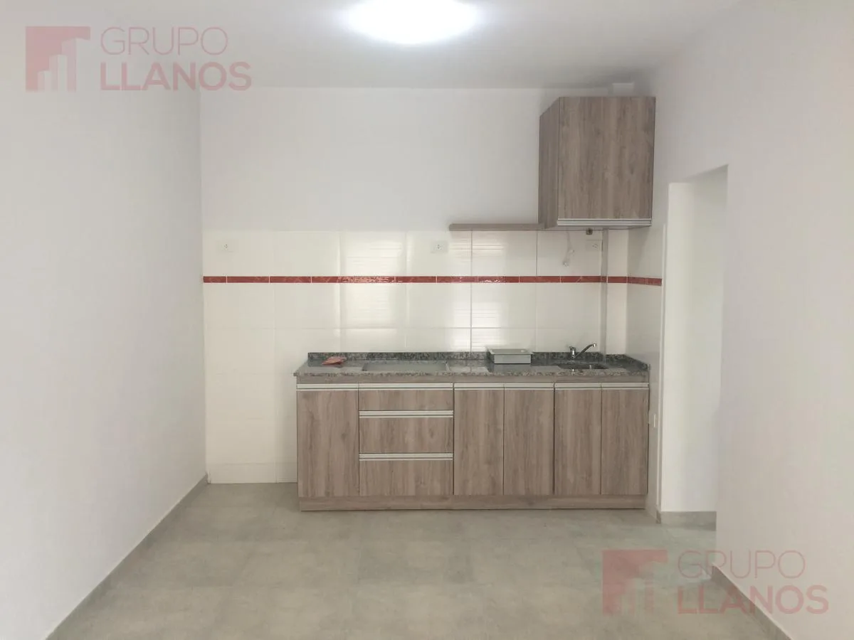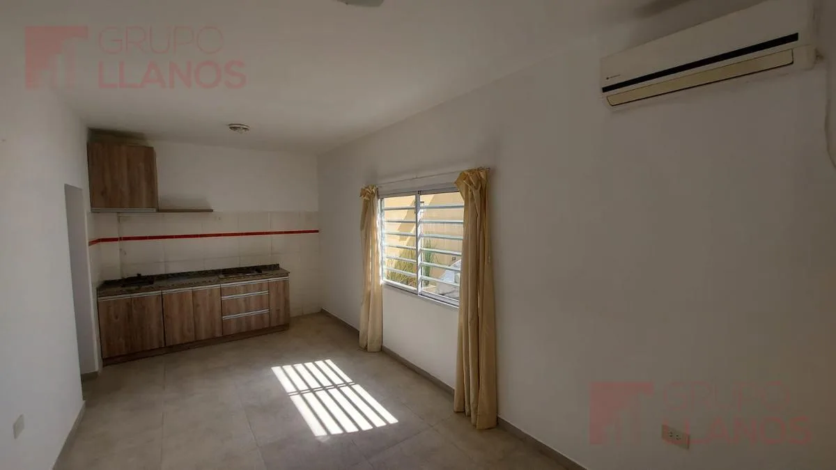 Apartamento para aluguel em Luján, com 1 quarto, cozinha-sala e 1 banheiro completo. Entregue com ar-condicionado, cortinas roller, porteiro elétrico e luminárias. O anúncio menciona que há condomínio (expensas).