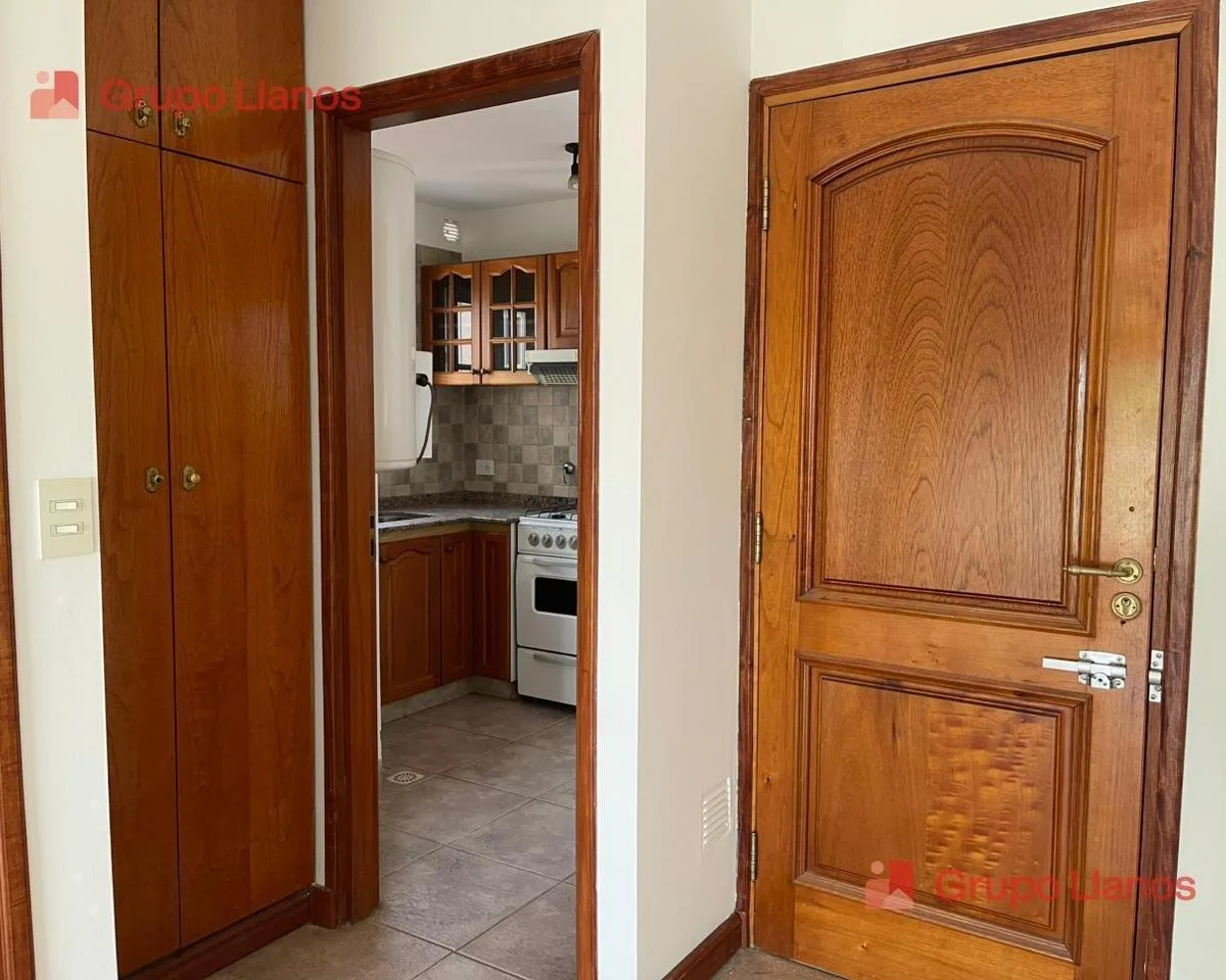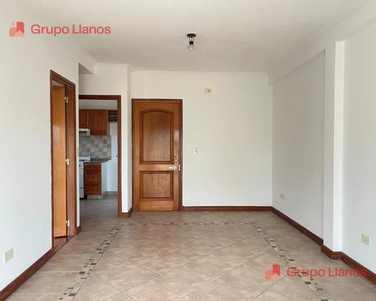 Apartamento para aluguel no centro de Luján, com 1 quarto e cozinha separada. Inclui living com sala de jantar, quarto com armário (placar), antebanheiro e banheiro com banheira. Fica de frente para a rua, com orientação voltada para a fachada.
