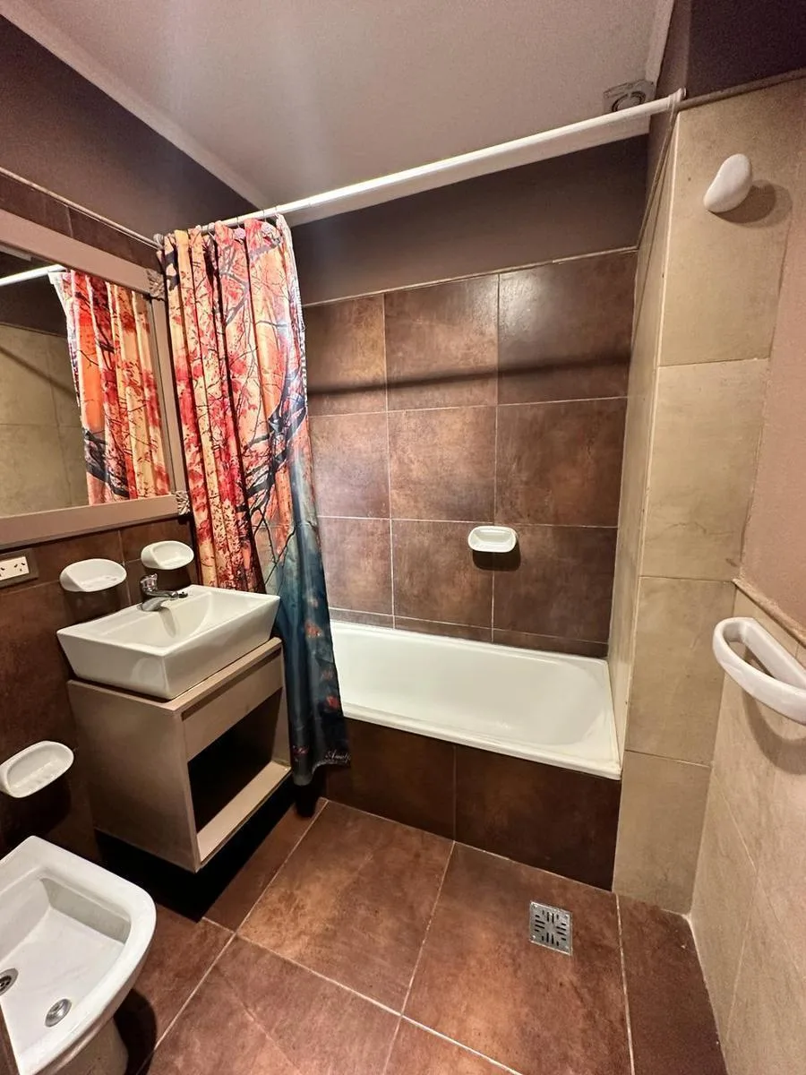 Apartamento de dois ambientes mobiliado em Luján, com 1 quarto, no 3º andar de frente para a rua. Fica na planta alta do Edificio Pacifico e tem cozinha com armários inferiores e superiores, geladeira e louças, além de barra de café da manhã com banquetas. Há sala com sofá, mesa, ar-condicionado e varanda, banheiro completo, cama de casal, roupeiro embutido, lavadora, cofre e aquecimento por piso radiante com caldeira a gás natural. O prédio tem elevador; condomínio e serviços não estão incluído