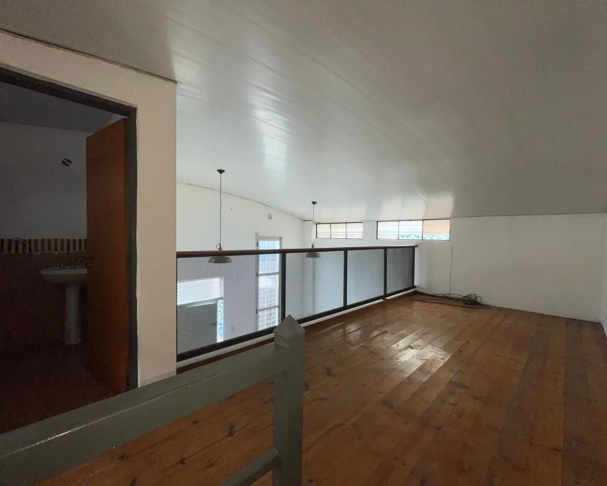 Apartamento de dois ambientes em formato loft, com 1 quarto e 1 banheiro completo na mesma planta. Cozinha com área de refeições integrada e pré-instalação para máquina de lavar. A unidade tem acesso por escadas e conta com pátio privativo, além de espaço de entrada para 1 veículo sem cobertura.