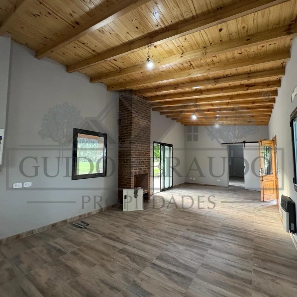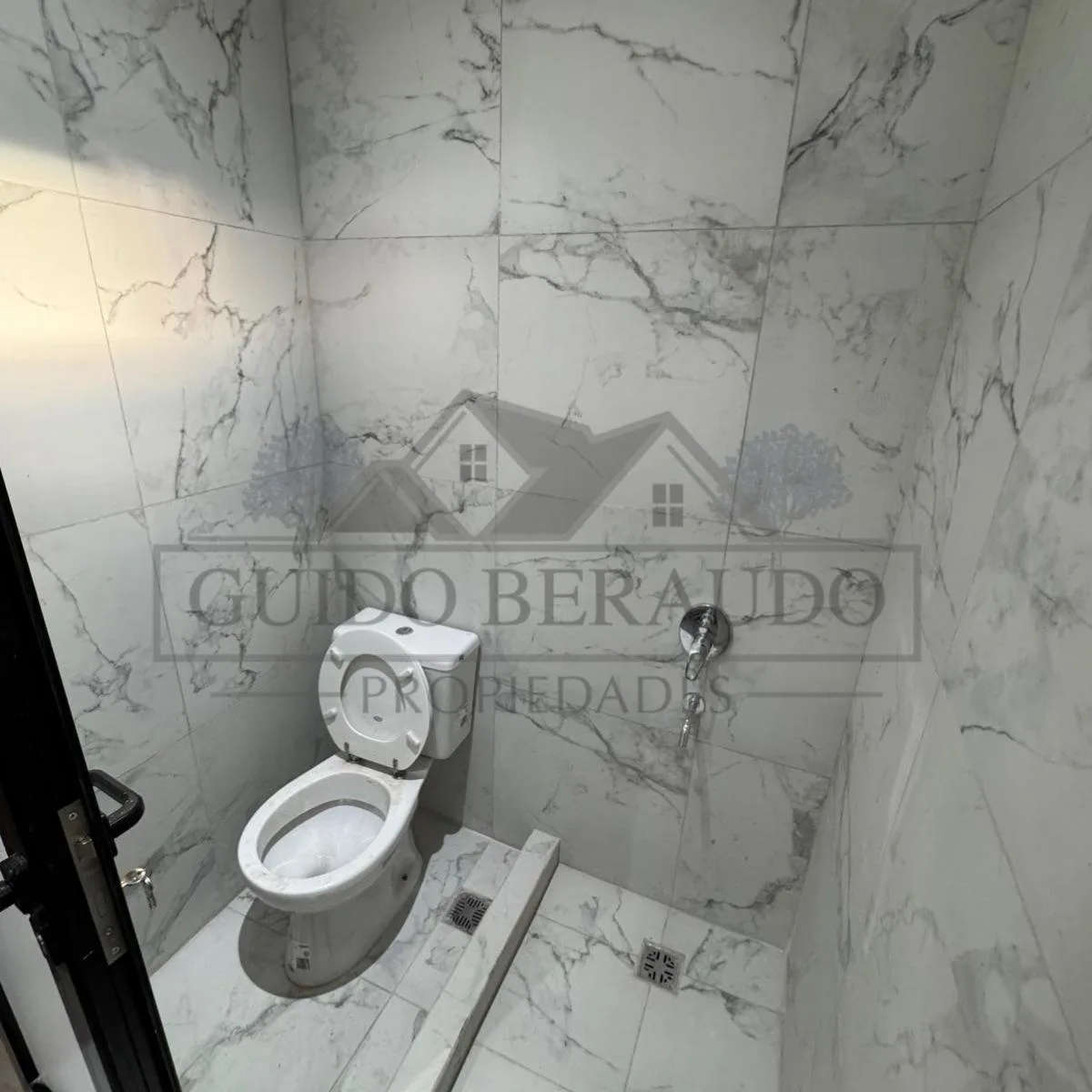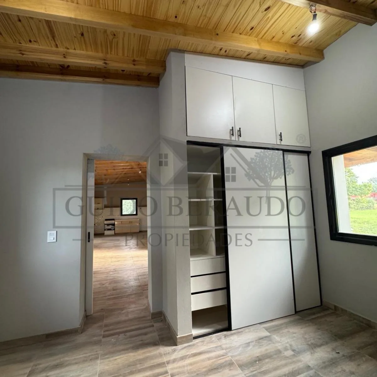 Apartamento de dois ambientes em Santa Matilde, Comarcas de Luján, com 1 quarto e vista para o jardim. Possui cozinha mobiliada com fogão Escorial de 4 bocas, bancada inferior com pia, prateleiras e duas aéreas, além de 2 banheiros. O quarto em suíte inclui banheiro completo e móveis embutidos, com acesso ao jardim que tem galeria e área de churrasco. O valor do aluguel é de USD 1.000 e inclui condomínio.