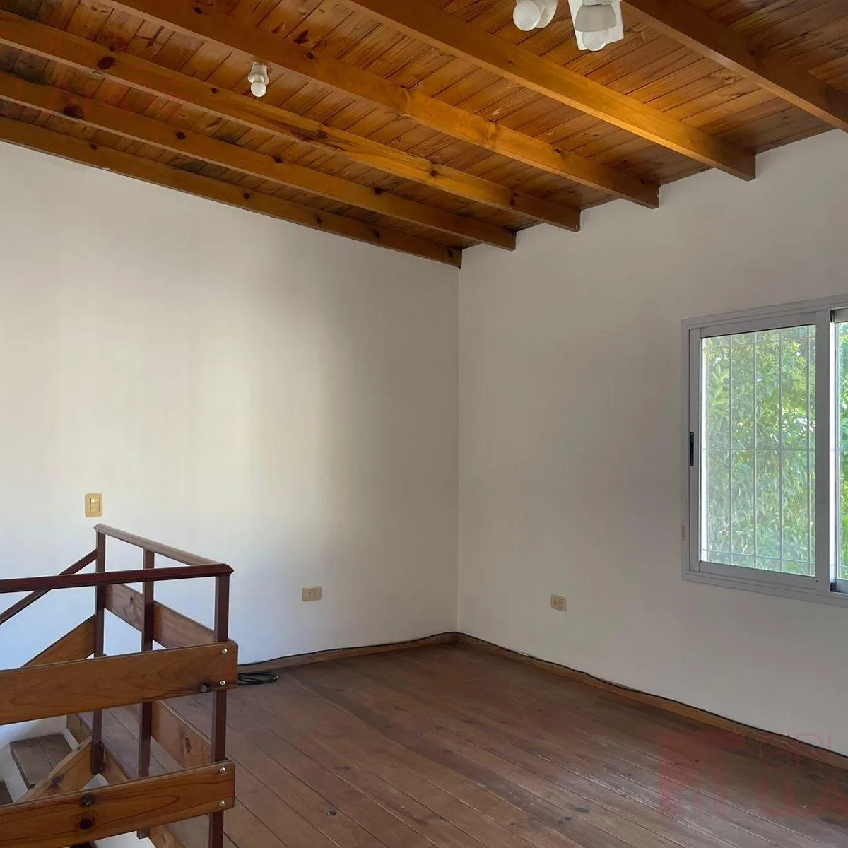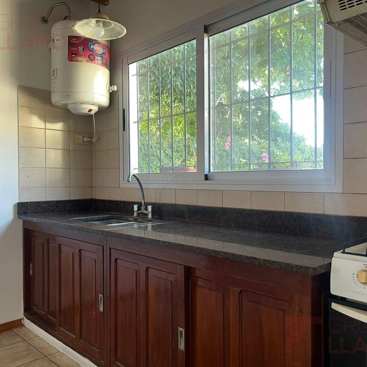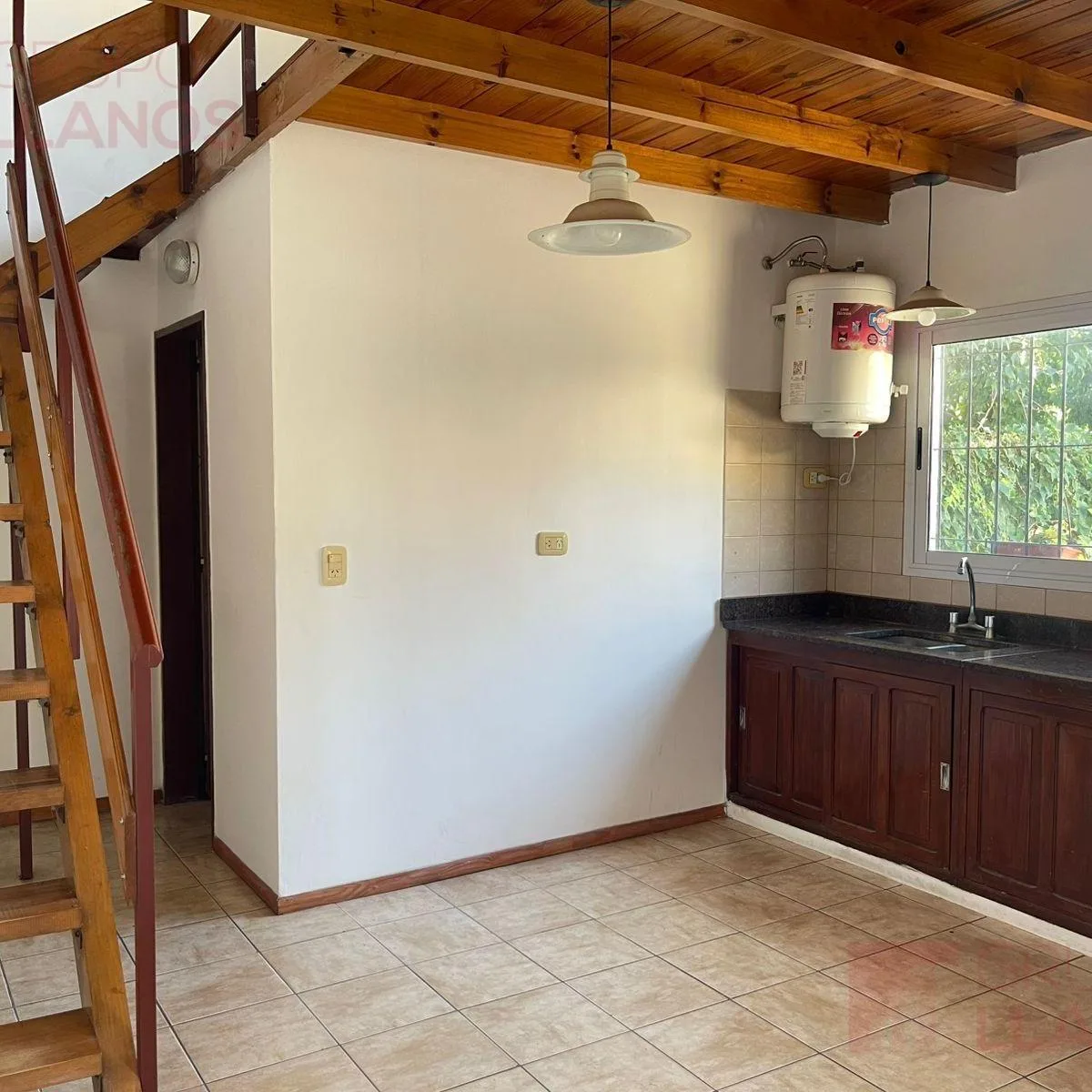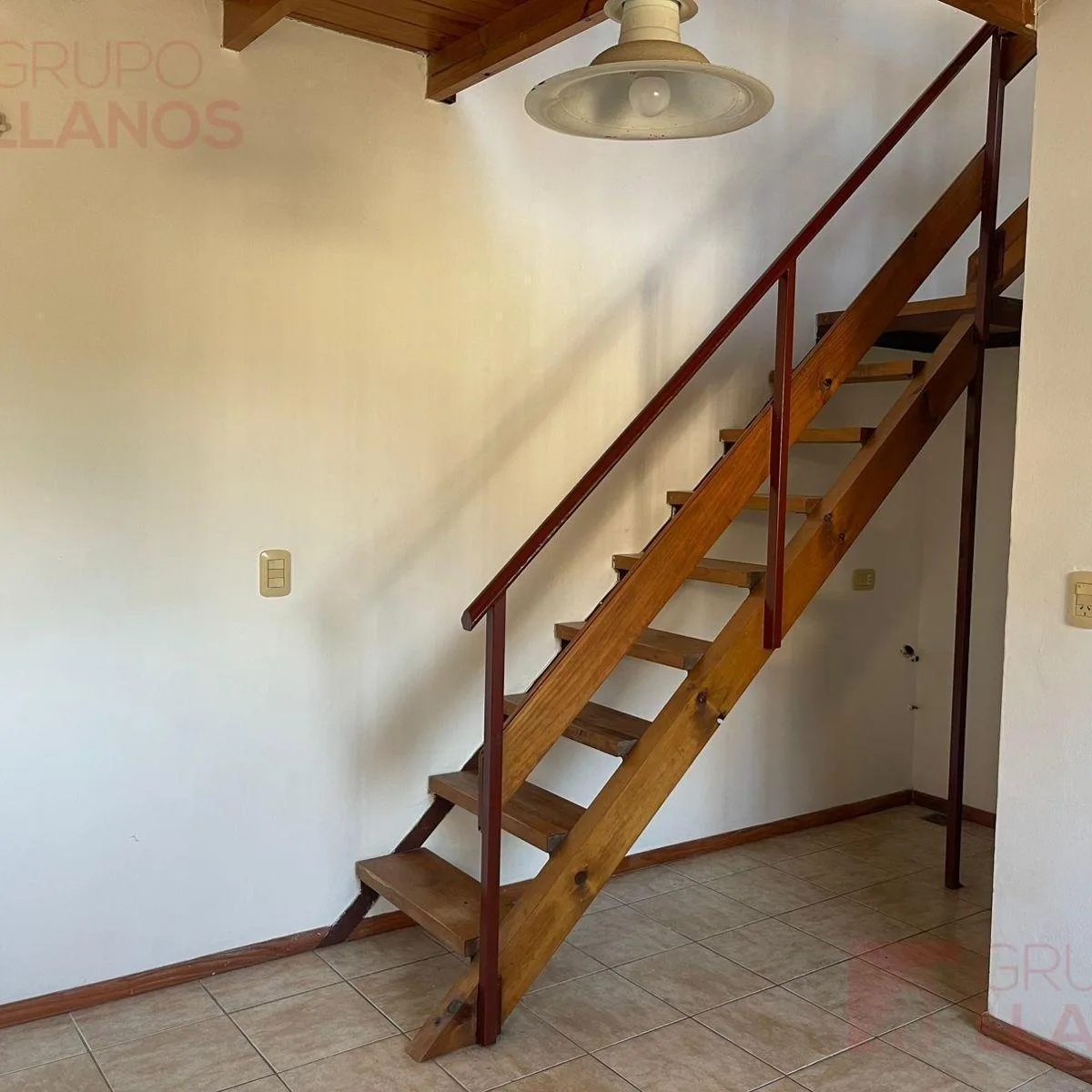 Apartamento no Centro de Luján, unidade nº 4. Possui 1 dormitório no andar superior, cozinha e sala de jantar, e banheiro no andar inferior. O complexo inclui bicicletários e área de churrasco. Vaga de garagem não foi mencionada.