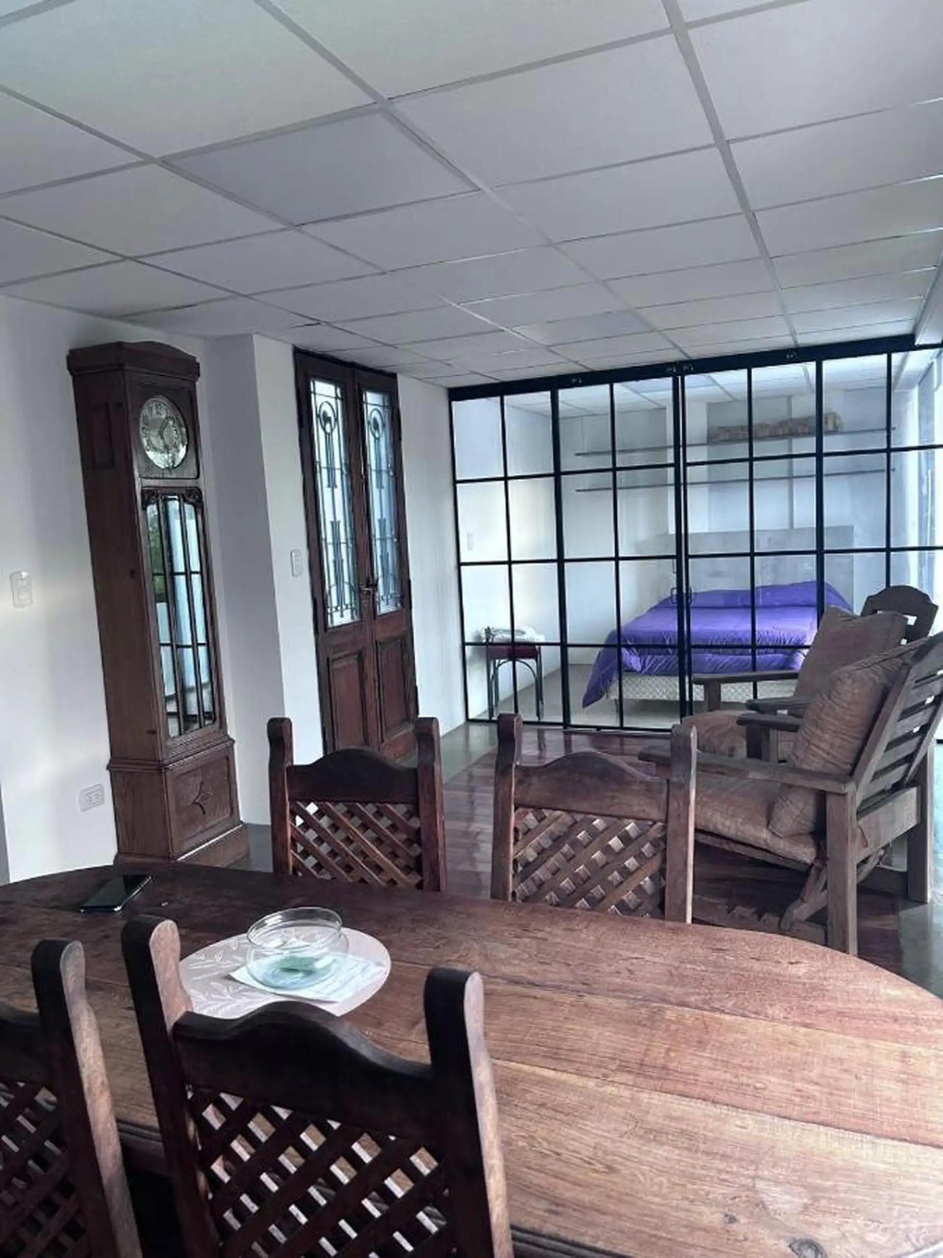 Apartamento mobiliado de 1 quarto em Martínez, no 1º andar (por escada). O imóvel fica em uma área com acesso rápido à região. É alugado mobiliado e equipado, com cama queen-size, geladeira familiar com freezer e dispenser de água, além de roupa de cama (opcional). O condomínio e os serviços são pagos à parte.