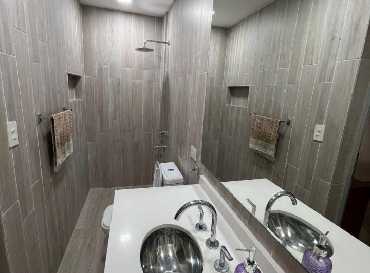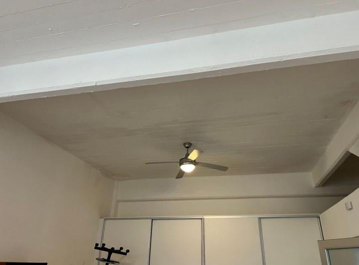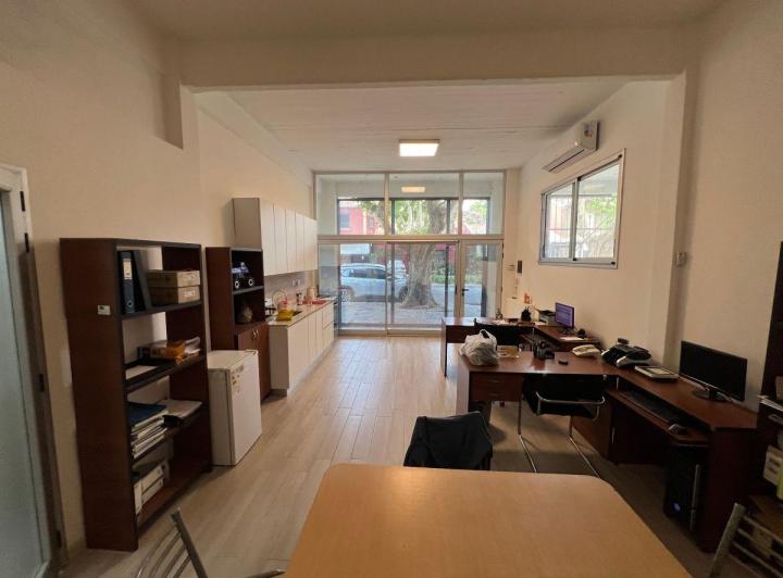 Apartamento tipo loft em Martínez, 34 m² cobertos, no 5º andar. Fica de frente para a rua, com grande vitrine e grades, e tem ventilador de teto com luzes. O imóvel é entregue com ar-condicionado frio/calor, sistema de iluminação e cozinha com armários superiores e inferiores; inclui banheira com ducha, depósito (baulera) e instalação elétrica toda por conta própria.