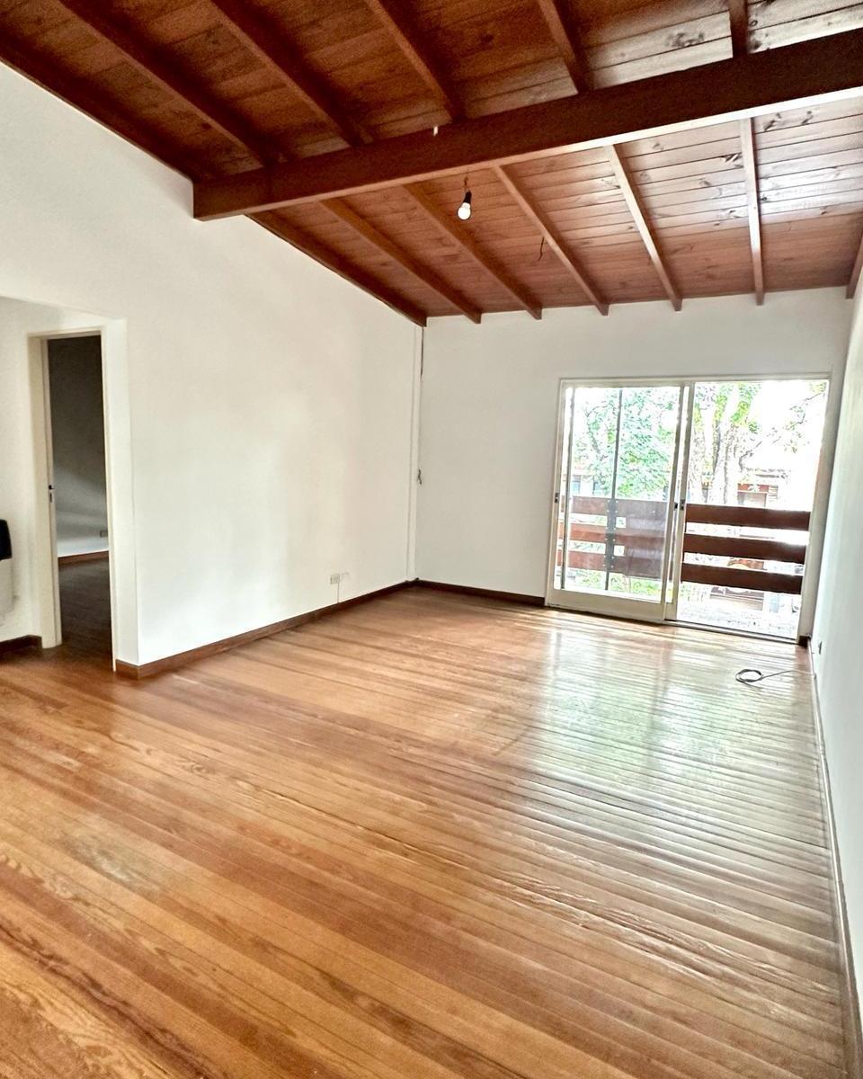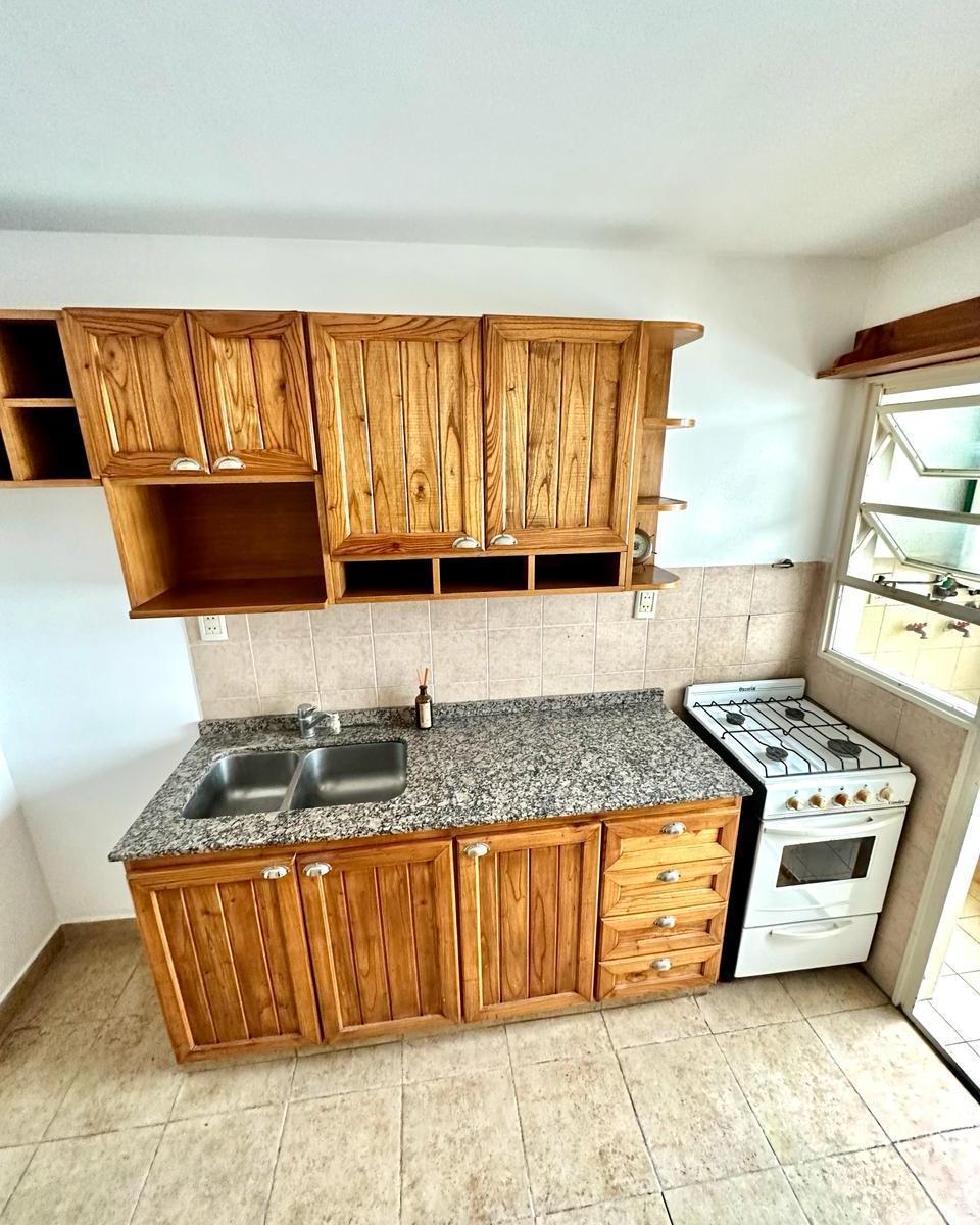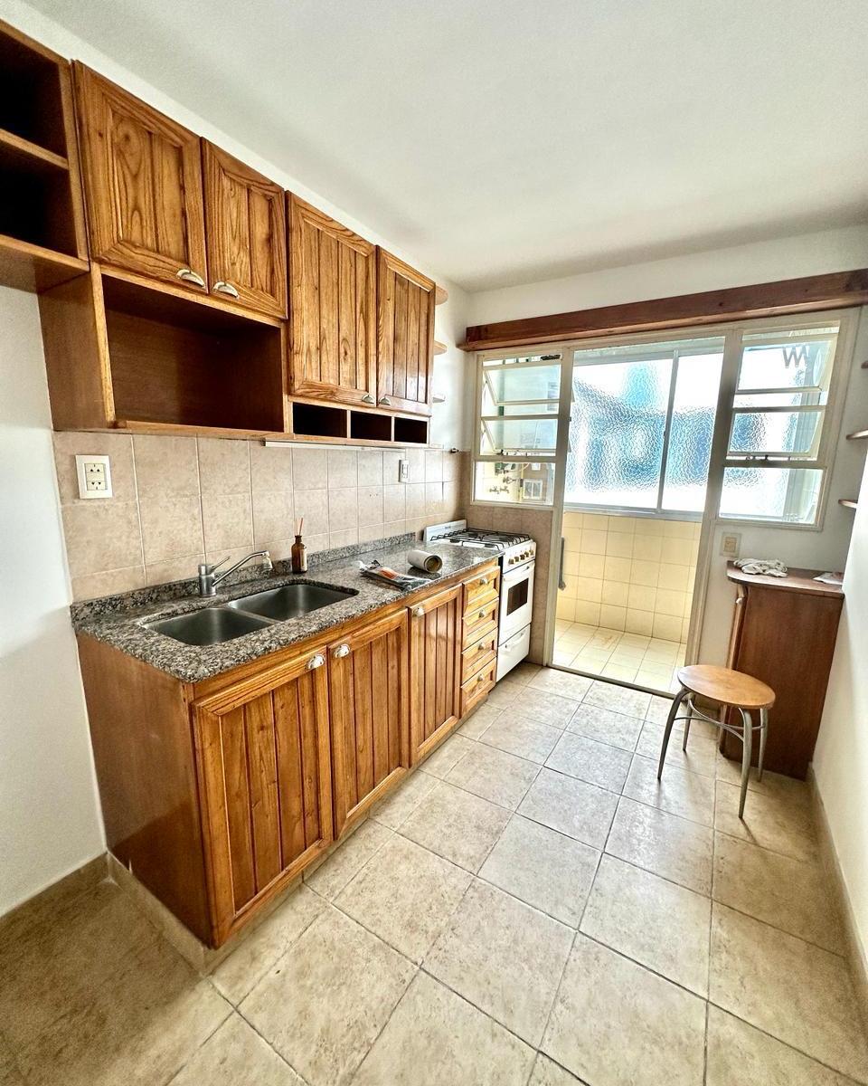 Apartamento de 2 ambientes em esquina em Martínez, com ventilação direta. Sala e jantar medem 6x3, 50 m² com piso de pinotea e acesso à varanda; varanda de 3x1. Cozinha de 3x2, 20 com móveis; área de lavanderia de 2, 20x1 com espaço para máquina de lavar e aquecedor de água. Quarto de 3, 50x3, 50 com piso de pinotea e armário embutido. Banheiro completo de 3x2 com box/vaidade e armário de apoio.