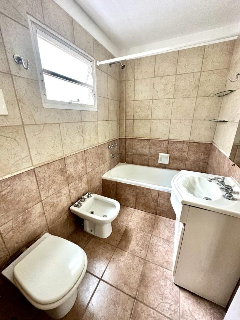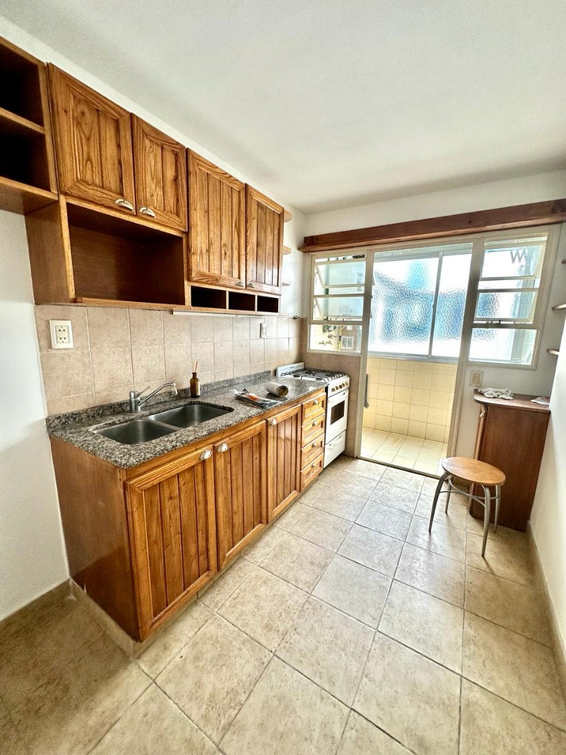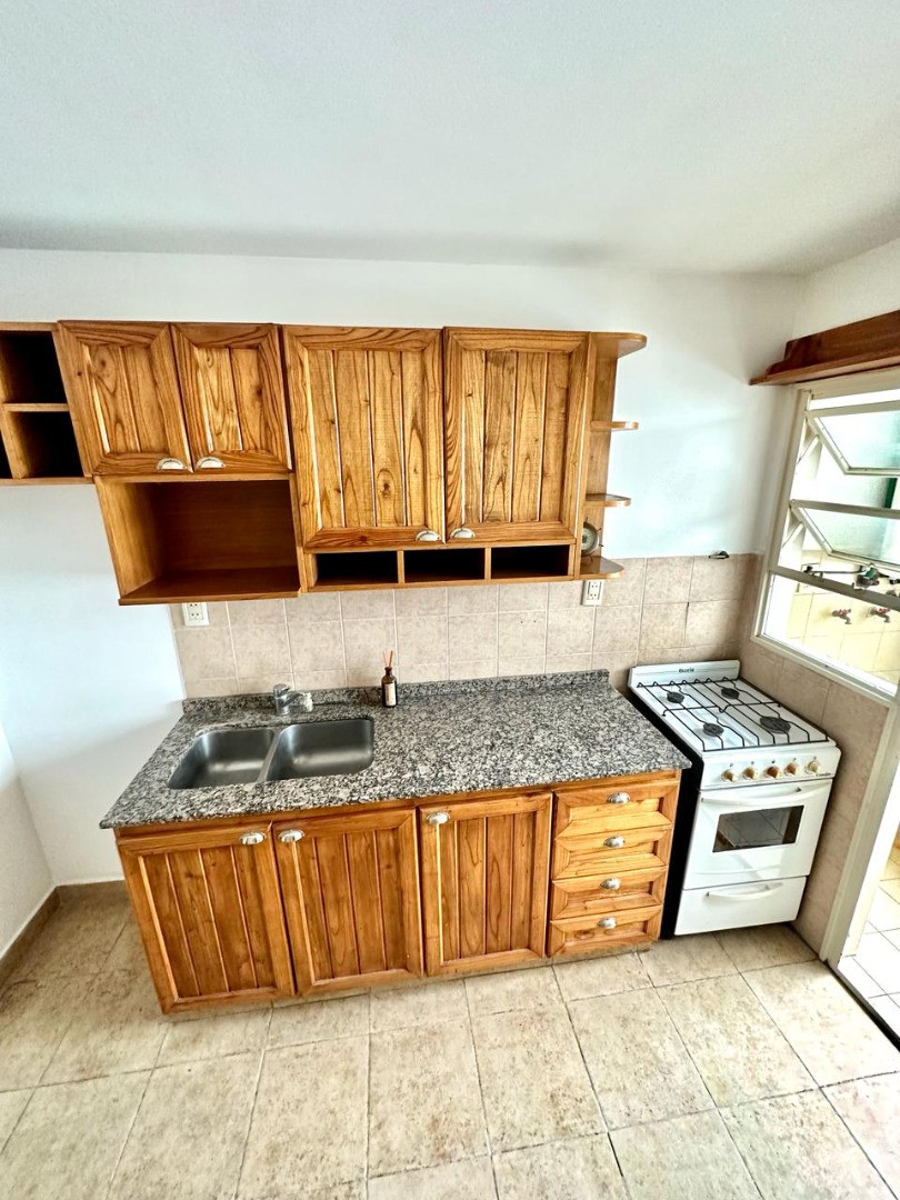 Apartamento de 2 ambientes em esquina, em Martínez, com 1 quarto. Sala de estar e jantar de 6x3,50 com piso de pinotea e acesso à varanda de 3x1. Cozinha de 3x2,20 com armários, área de lavanderia de 2,20x1 com espaço para máquina de lavar e aquecedor a gás; quarto de 3,50x3,50 com piso de pinotea e armário. Banheiro completo de 3x2 com ventilação direta, com box, vão/armário (vanitory) e armário de apoio.