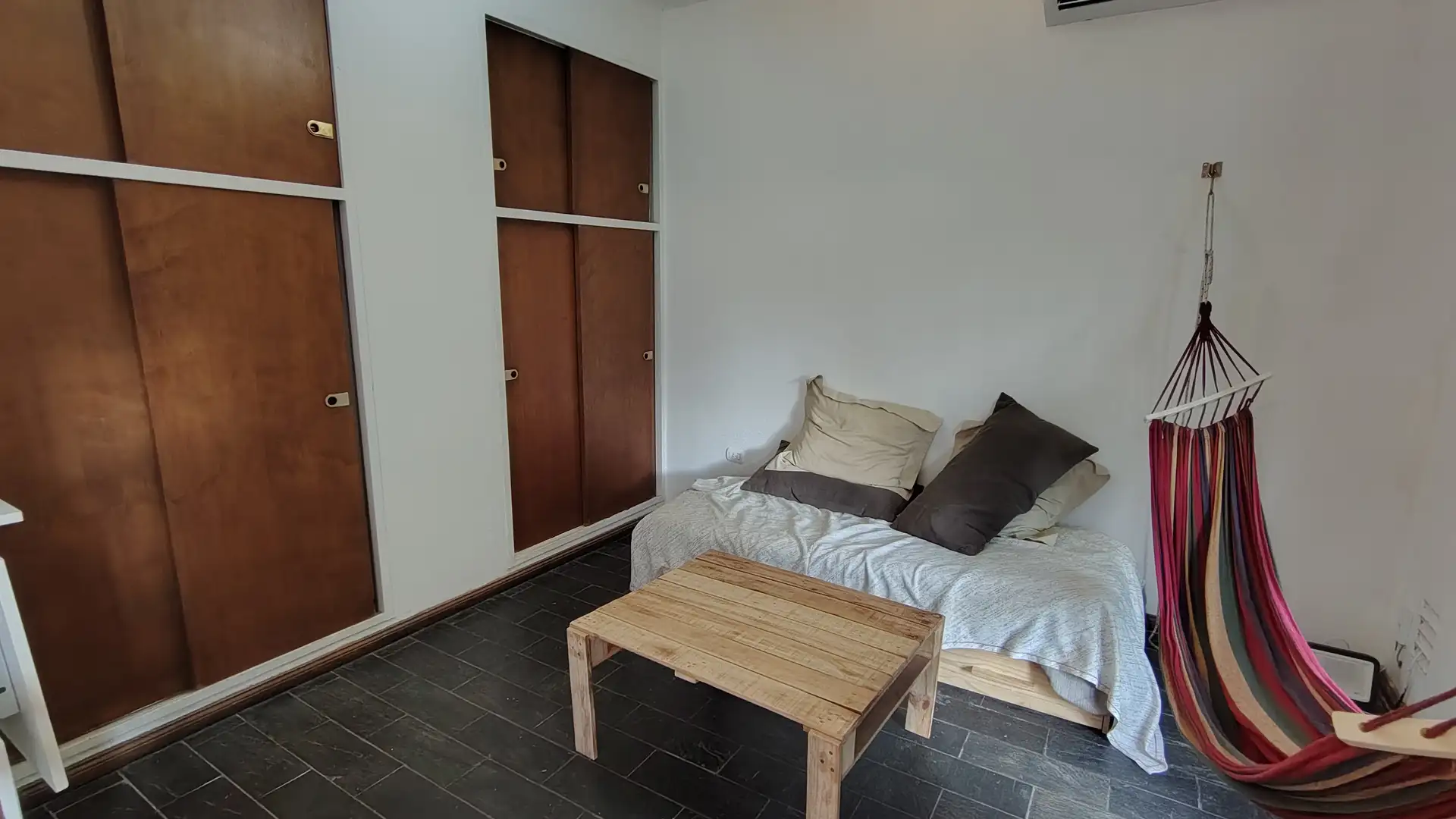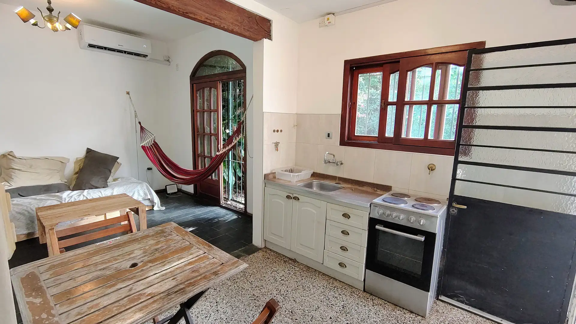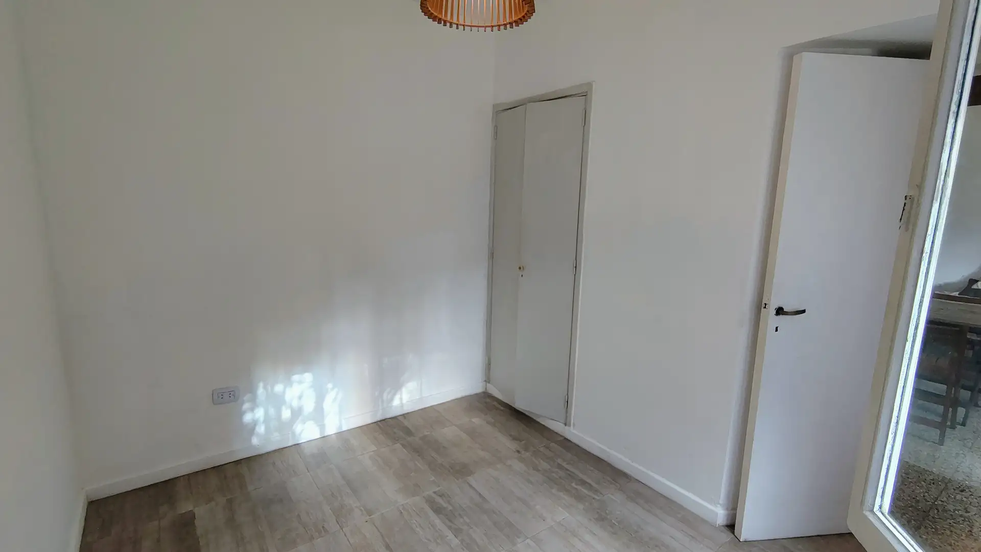 Casa para aluguel em Martínez, com lote de 160 m² e cerca de 50 m² de área coberta, toda em planta baixa. A planta inclui sala de estar/jantar/cozinha (5,60 x 3,30), dormitório (2,30 x 2,90) e área de lavanderia independente. O aluguel é de $1.200.000, com contrato de 24 meses e reajuste trimestral pelo IPC. O depósito de garantia é de US$1.000; exigem-se fiança própria ou F I N A E R e comprovantes de renda de três vezes o valor do aluguel (US$3.600.000), além de pagamento do primeiro mês adian