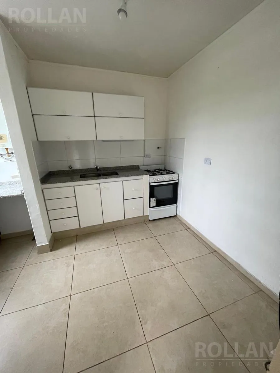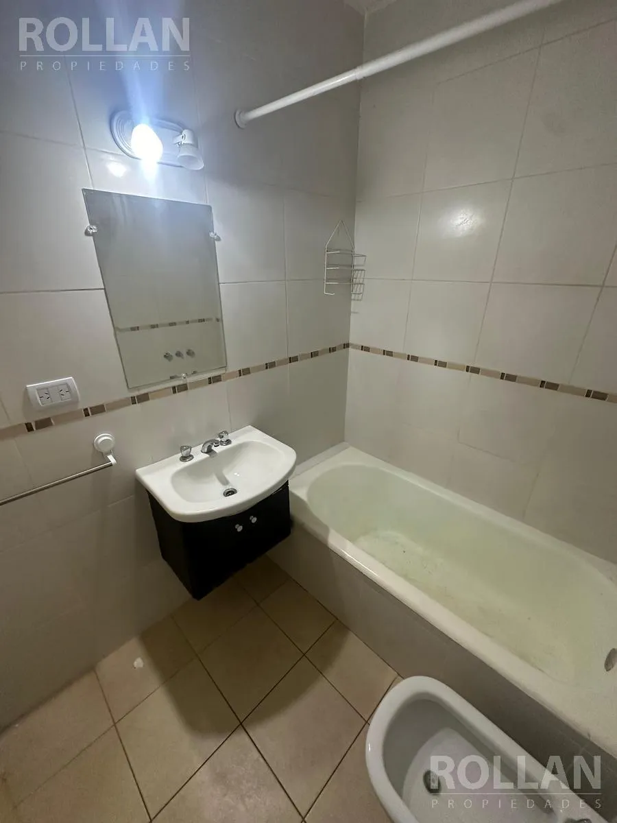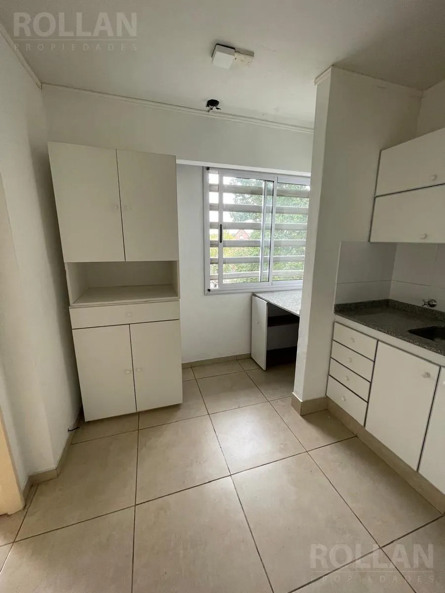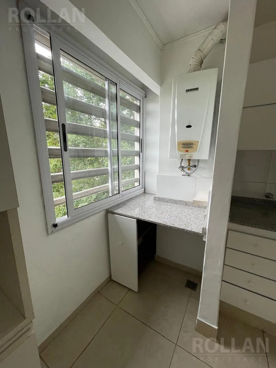 Apartamento de 2 ambientes em Martínez, com 1 quarto, muita iluminação e vaga de garagem compartilhada. Possui living (5,03 x 2,80), cozinha integrada à área de refeições com lavadero (3,27 x 2,80) e hall de distribuição com armário de 5 portas, além de banheiro (1,94 x 1,55). Contrato de 24 meses com reajuste trimestral pelo IPC; condomínio de $ 95.000 e ABL.