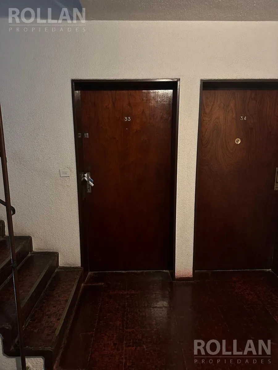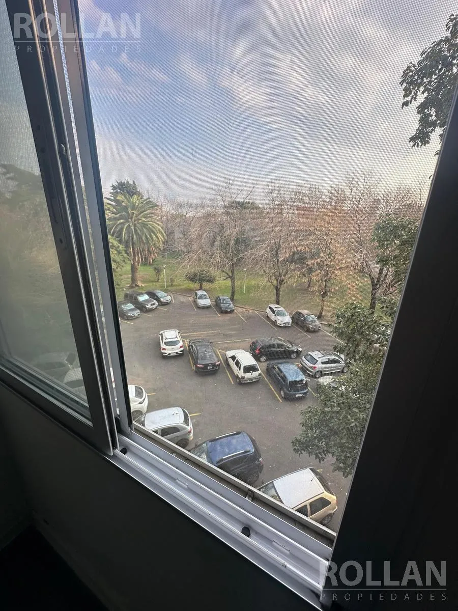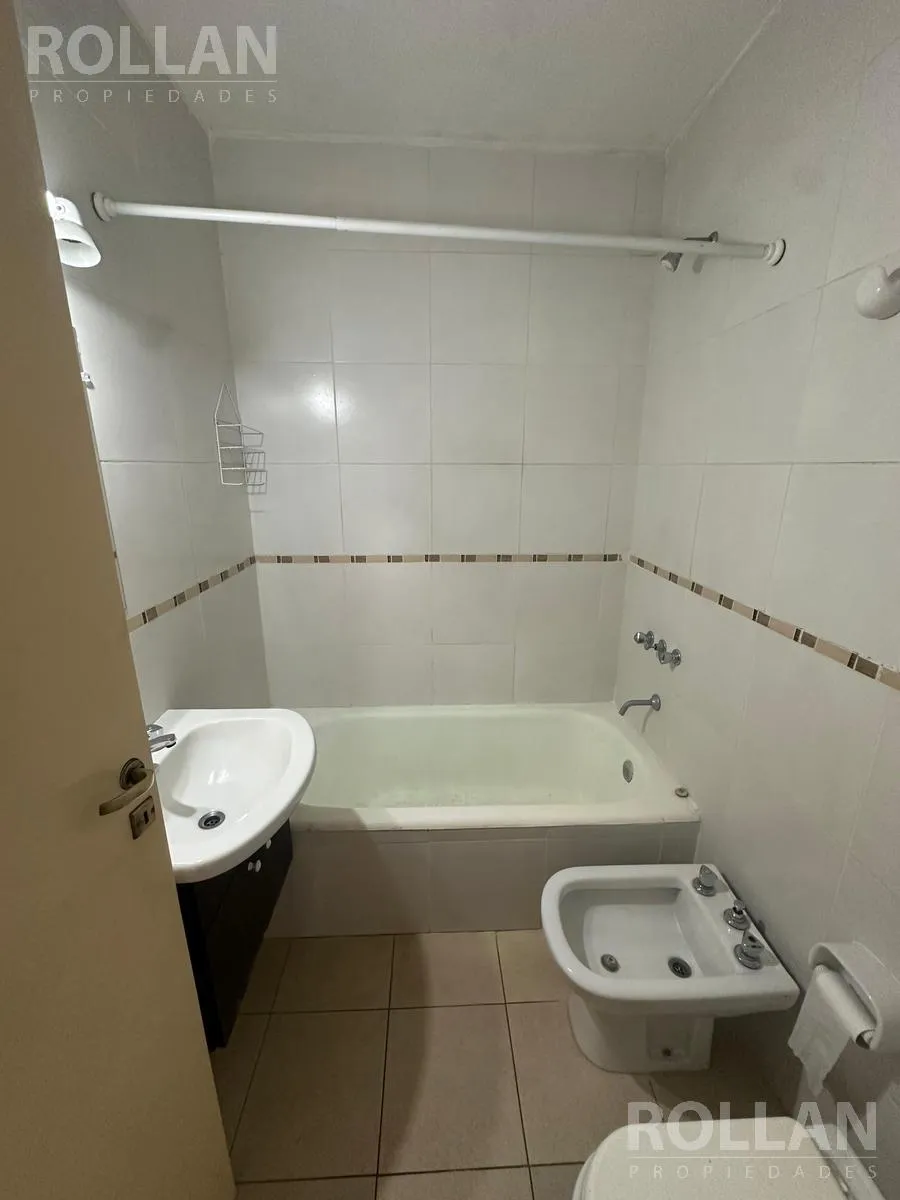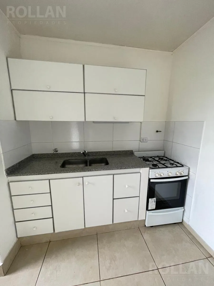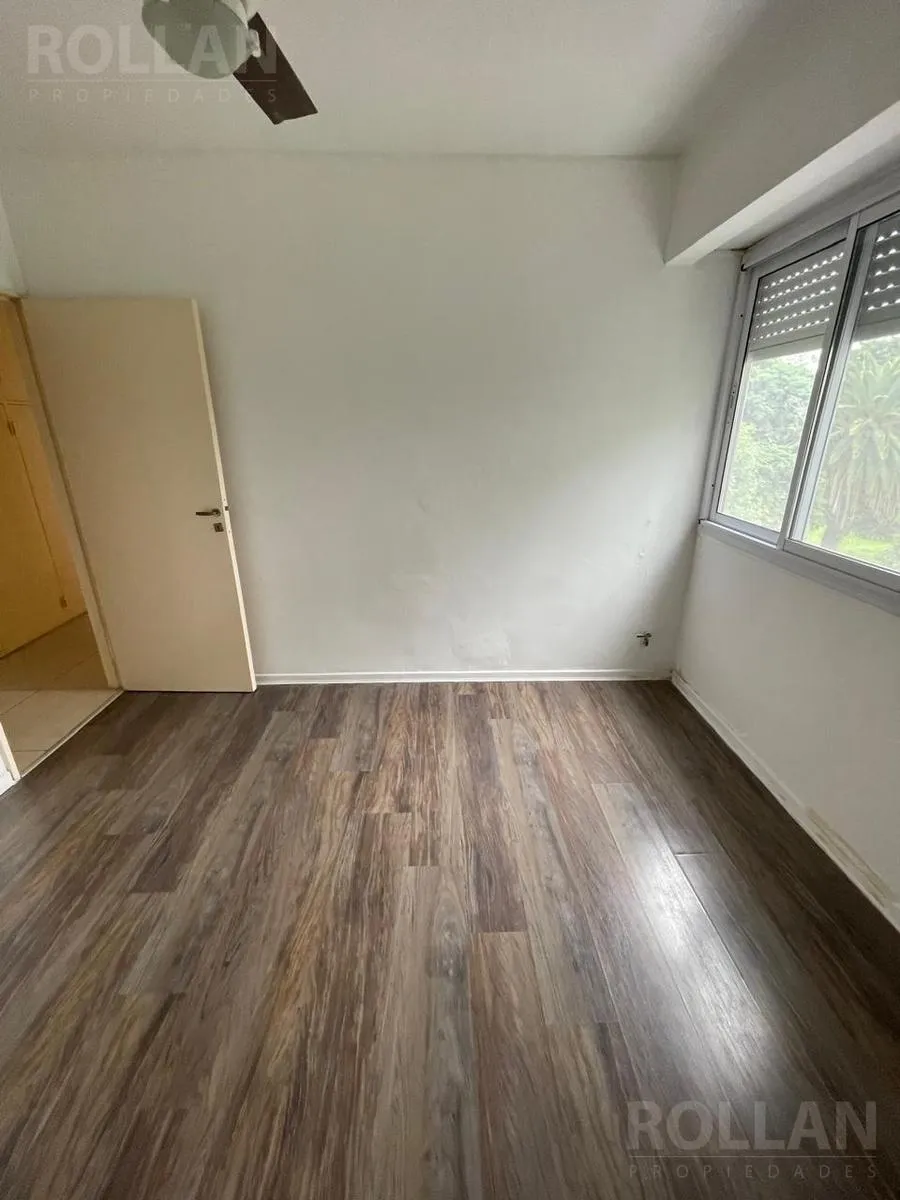 Apartamento de 2 ambientes em Martínez, com 1 quarto, muita iluminação e vaga de garagem compartilhada. Possui living (5,03 x 2,80), cozinha integrada à área de refeições com lavadero (3,27 x 2,80) e hall de distribuição com armário de 5 portas, além de banheiro (1,94 x 1,55). Contrato de 24 meses com reajuste trimestral pelo IPC; condomínio de $ 95.000 e ABL.