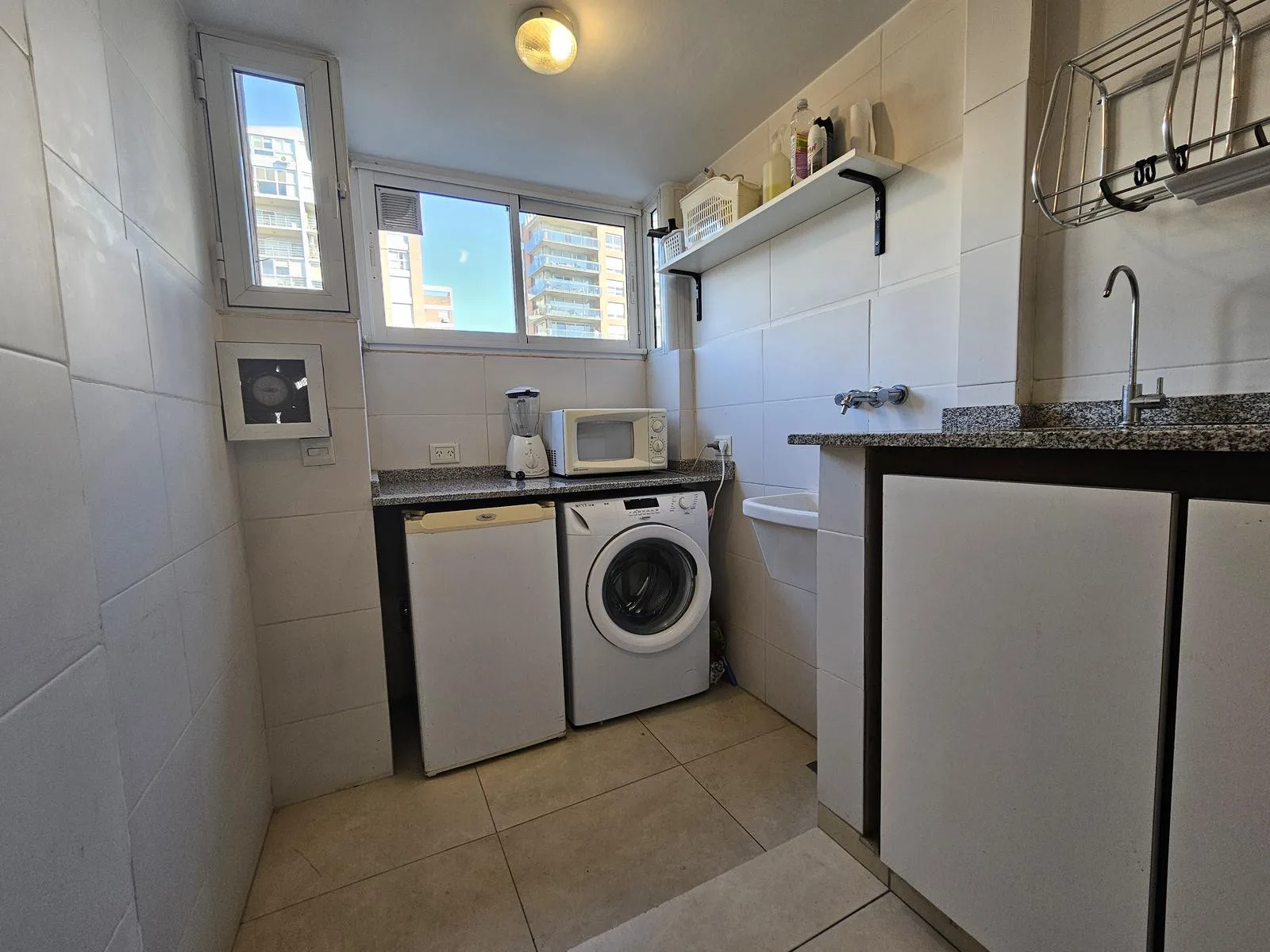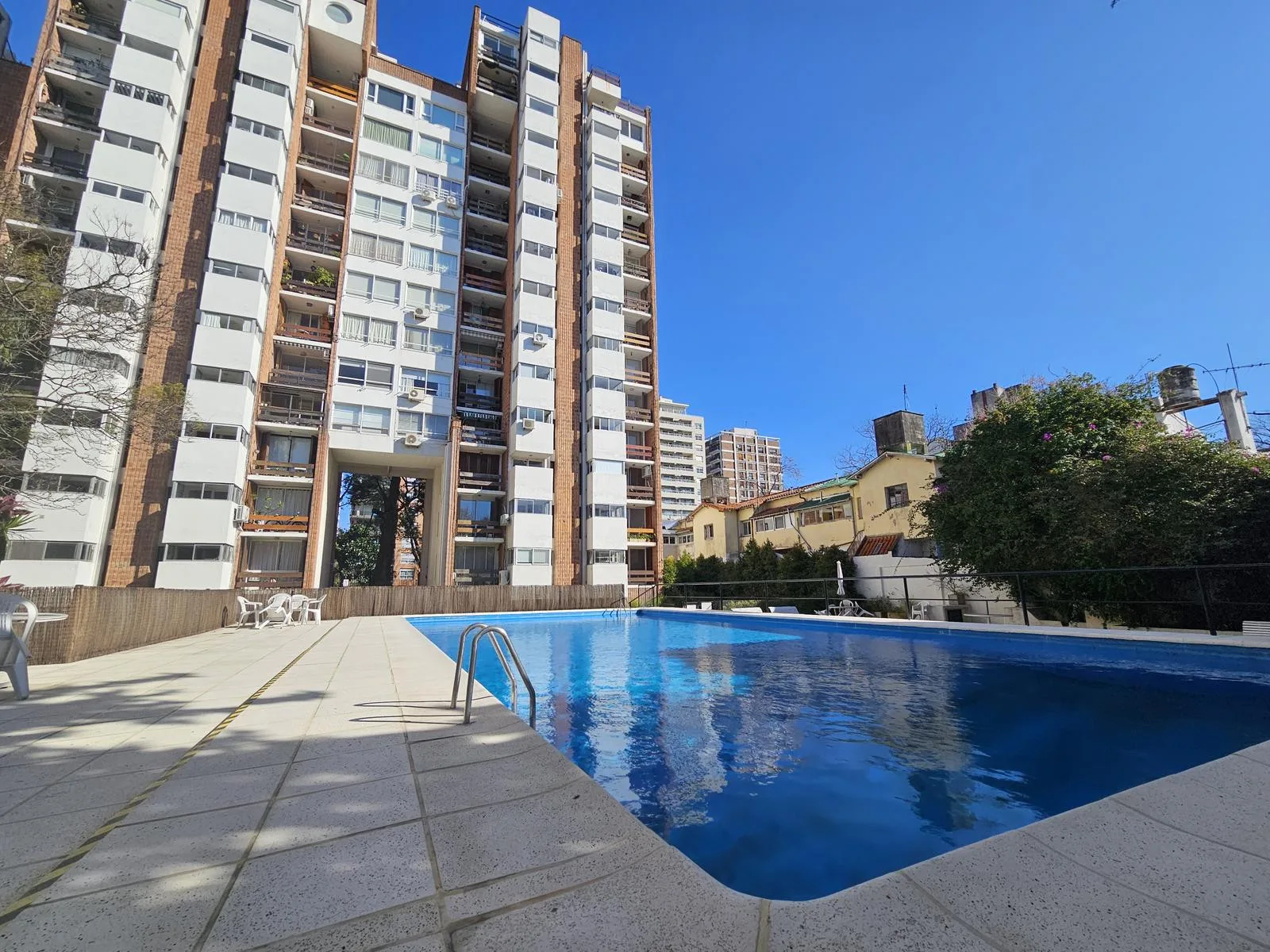 Apartamento de 2 ambientes reformado em Martínez, com 1 dormitorio e segurança 24 horas. Conta com hall de entrada com armários, sala de estar e jantar com janelas grandes, cozinha separada equipada com geladeira, lavadora e área de serviço integrada, e banheiro completo. Inclui aquecimento por piso radiante e split f/c, além de esquadrias de alumínio com vidro duplo (DVH) e 2 elevadores no prédio. Área externa com jardim, piscina e solário comuns; há possibilidade de aluguel de vaga de garagem