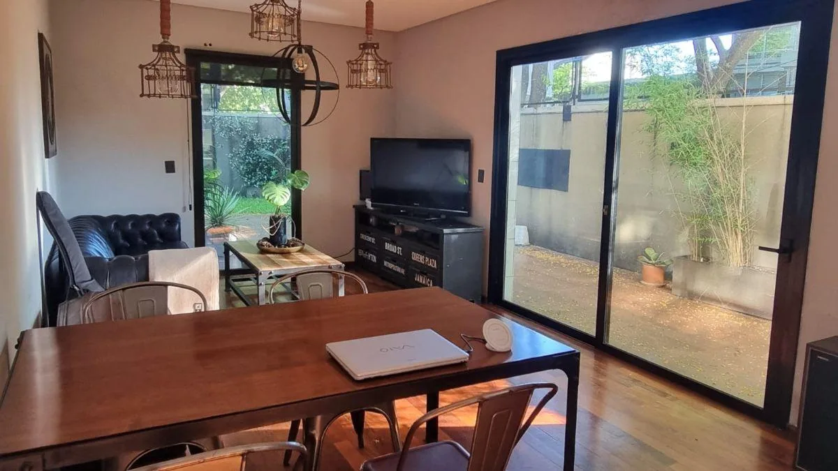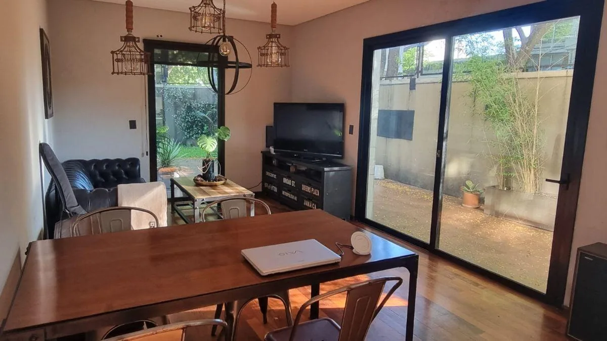 Apartamento de dois ambientes com 1 dormitório em suíte, com hall de entrada, living com sala de jantar e saída para pátio e jardim. Conta com lavabo, cozinha com barra divisória, suíte com 5 portas de armário e 1 vaga coberta de garagem; há também 2 vagas cobertas no subsolo e depósito (baulera). O condomínio tem segurança 24 horas por câmeras e piscina no último piso, com aluguel disponível a partir de 1º de julho.