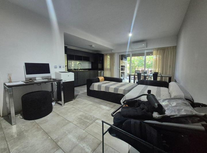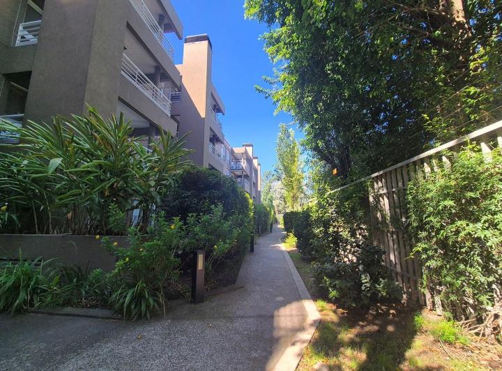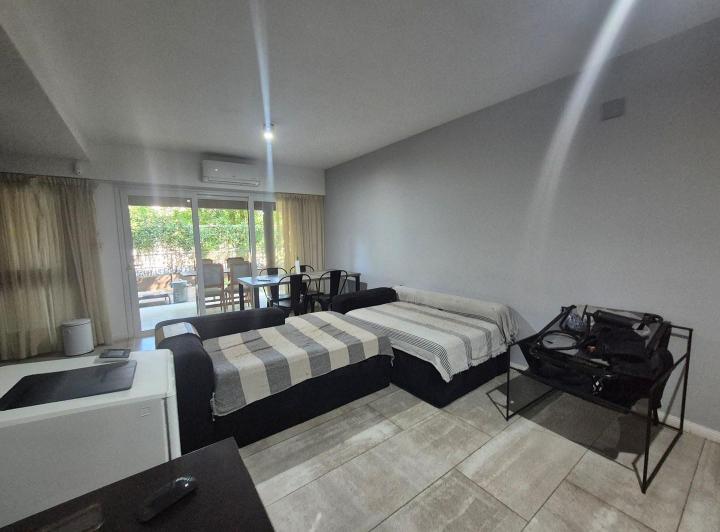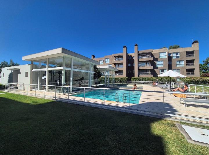 Apartamento em térreo com jardim privativo no complexo Pasionaria Martínez, em Martínez, San Isidro. Tem sala de jantar e estar em plano aberto com saída direta para a galeria, cozinha integrada com área de lavandeira independente, lavabo de recepção e quarto principal em suíte com closet e saída direta para o jardim. Inclui garagem e depósito coberto, além de estar equipado com luzes, cortinas, ar-condicionado e sistema de alarme; aquecimento por piso radiante. O complexo oferece piscina, jacuz