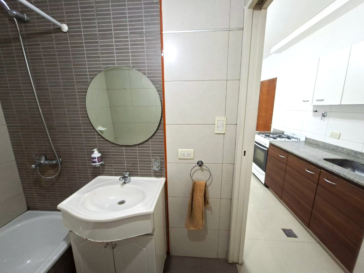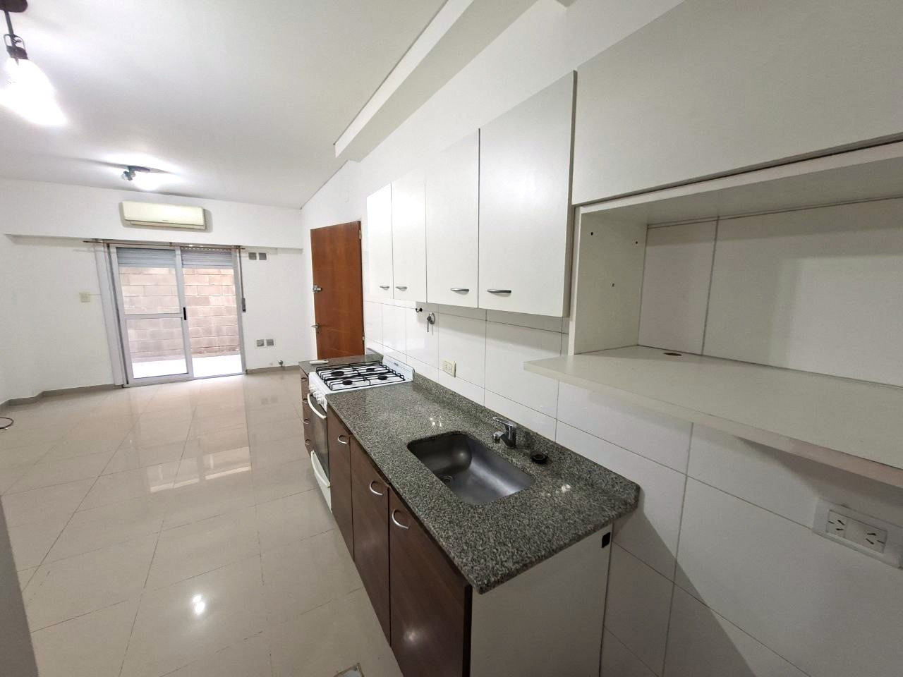 Unidade PH tipo casa de dois ambientes no térreo, com entrada compartilhada e frente para a rua. Conta com cozinha mobiliada integrada à sala de estar e jantar e com ar-condicionado frio/calor, além de 1 banheiro completo. O quarto tem armário embutido e vista para a rua. A unidade possui pátio próprio com área de lavanderia, acessada ao lado da sala por porta de correr.