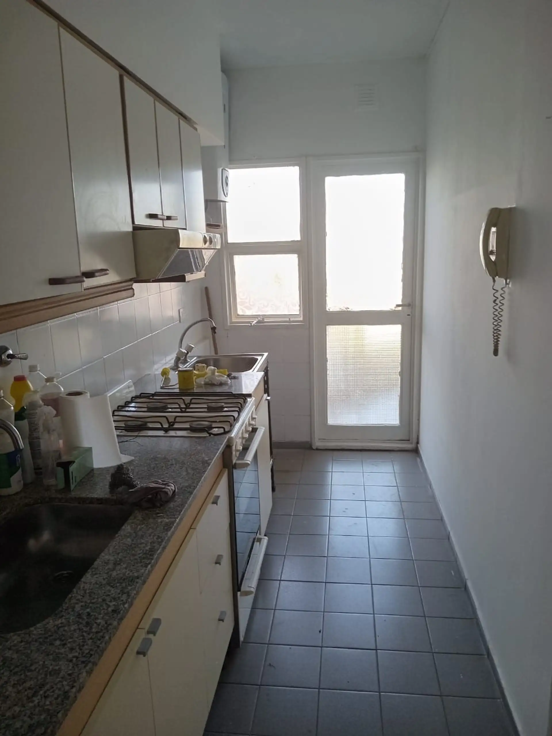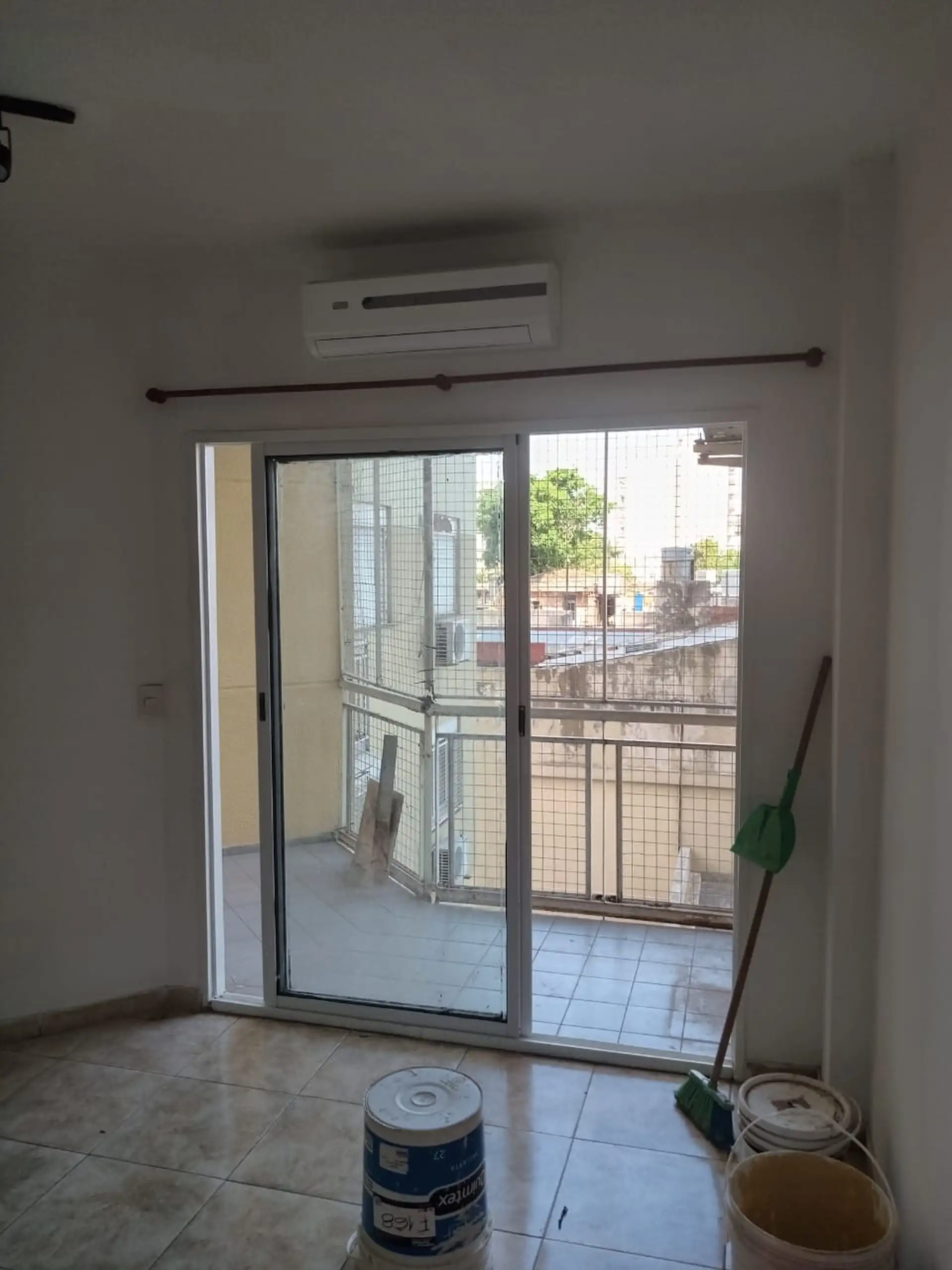 Apartamento de 2 ambientes em Mataderos, com 1 quarto e varanda. Cozinha separada e completa, com móveis de cozinha e bancada inferiores novos, além de área de lavanderia e calefón. Sala de estar e jantar com ar-condicionado split frio e quente, quarto com placard grande e ventilador de teto; banheiro com banheira e outro com armário. Pisos cerâmicos, apartamento recém-pintado. A varanda tem grade de proteção até o teto. Não são permitidos animais de estimação.